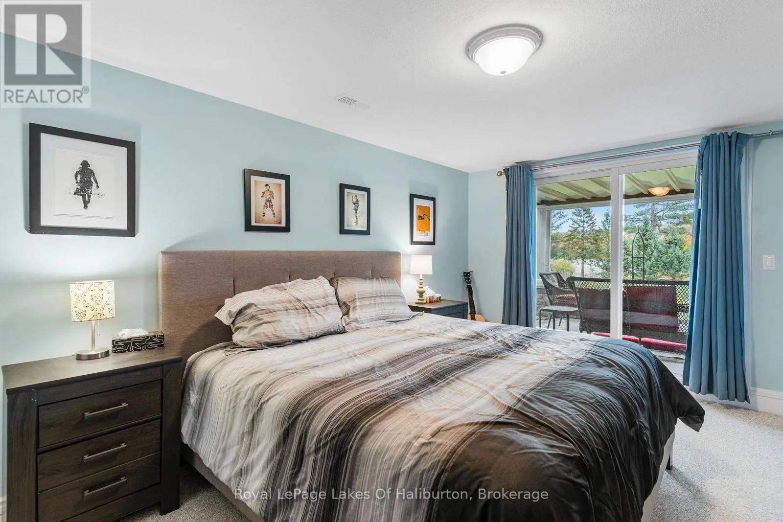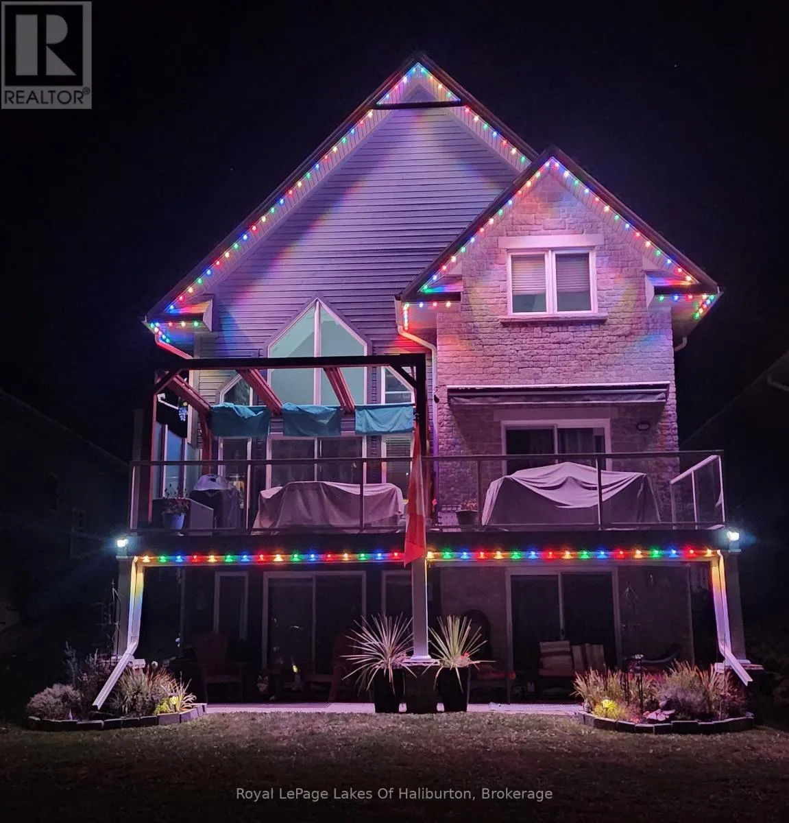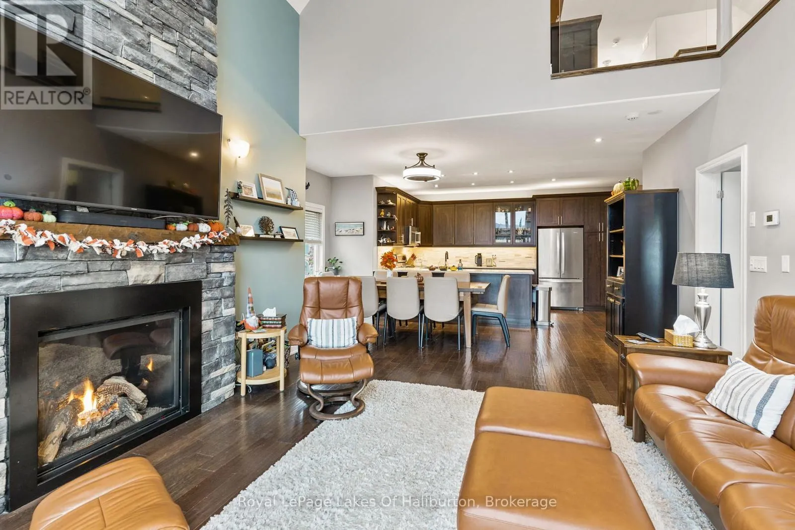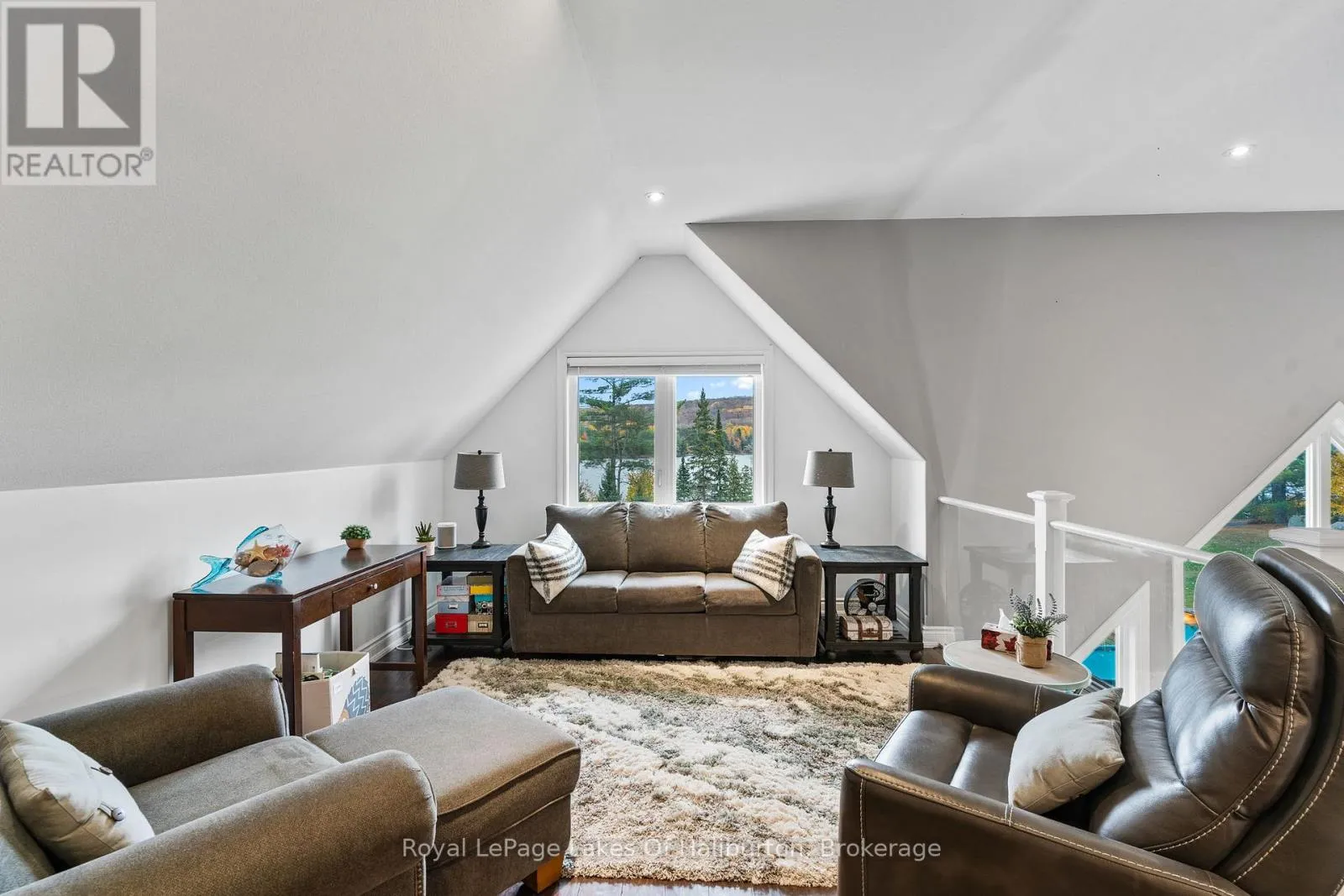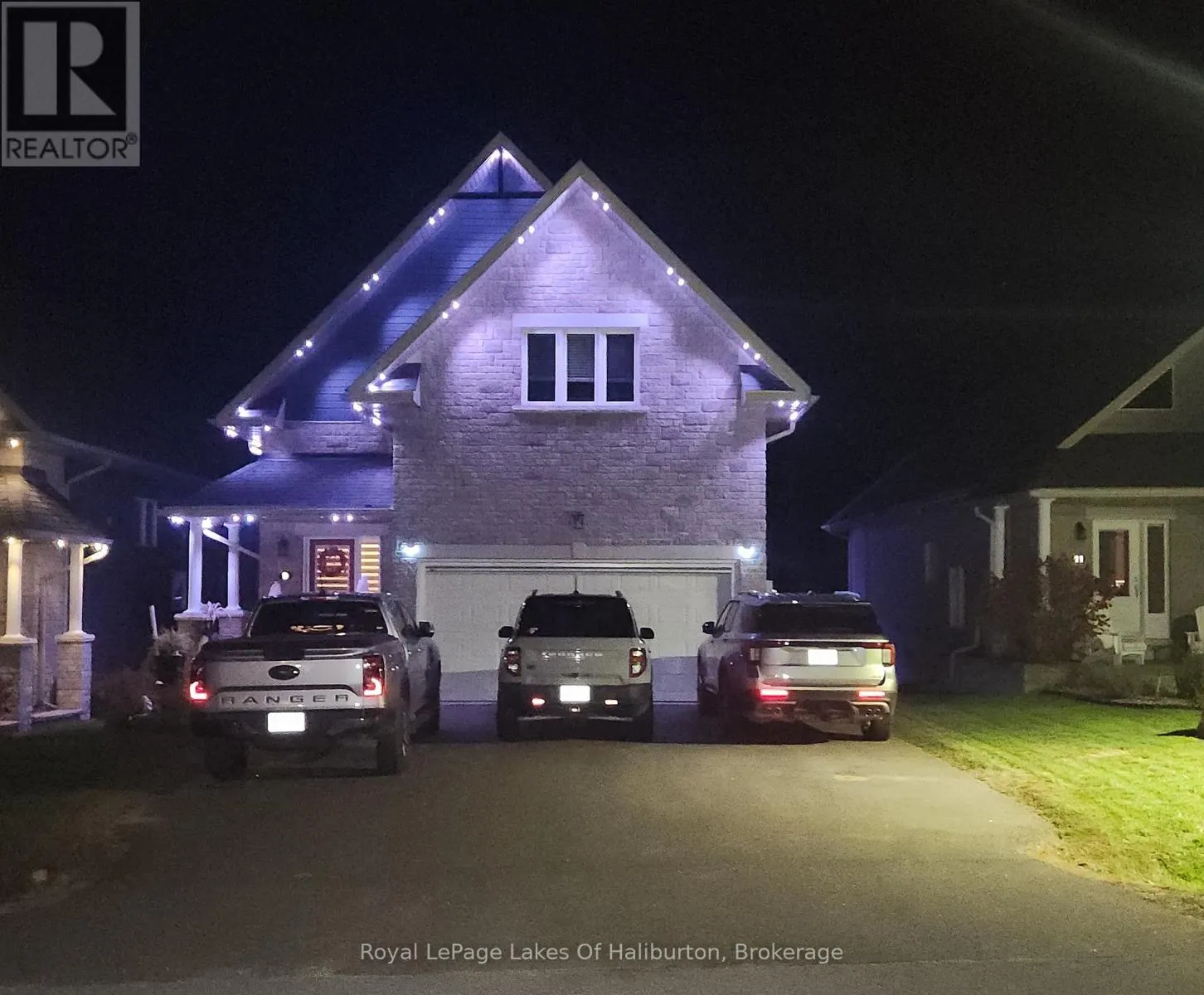 Cross Streets: County Road 21/Wigamog Road. ** Directions: County Rd 21 to Wigamog Road to Margarets Trail To Webb Circle. Welcome to this 4-bedroom, 4-bathroom executive home in the prestigious Silver Beach waterfront community on Kashagawigamog Lake, part of the sought-after 5-lake chain. With 2,955 sq. ft. of refined living space, this home combines quality craftsmanship, luxury finishes, and spectacular lake views.The foyer offers keyless entry, retractable screen, and tile floors leading to a gourmet kitchen with upgraded cabinetry, granite counters, under-cabinet lighting, sit-up area, stainless steel appliances, and elegant fixtures. The great room impresses with cathedral ceilings, a stunning floor-to-ceiling stone propane fireplace, hardwood floors, soaring windows, and walkout to a lakeside composite deck featuring a cedar timber-frame pergola and BBQ area and endless lakeviews.The primary suite provides a peaceful retreat with walkout to the deck and awning, ceiling fan, ensuite with heated floors and glass shower. The upper level offers a bright family room with glass panels overlooking the great room, high ceilings, hardwood flooring, 2 bedrooms, carpeted, ceiling fans, and custom blinds, while a walk-in closet area adds generous storage and 4pc bath with soaker tub.The lower level features a spacious rec room with propane fireplace, pot lights, and walkout to an interlocking lakeside patio. A guest suite offers a walkout to waterside patio, walk-in closet, and 4-pc ensuite. Additional highlights include, all bathrooms with heated floors, a multi-zone HVAC system, new hot water on demand (2025), 18W Generac generator, NFTC fibre optics, and a heated, insulated garage with storage and retractable screen. Exterior upgrades include programmable soffit lighting, glass railings, firepit area, and under-deck shielding.Enjoy exclusive access to the Silver Beach Clubhouse featuring a grand hall, kitchen, fitness center, games room, guest suite, two beaches & trails, close to Haliburton for all your amenities. Dock slip available to purchase ($25K). See full list of features. (id:27476)