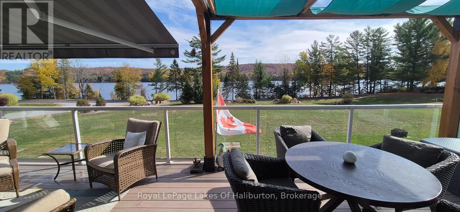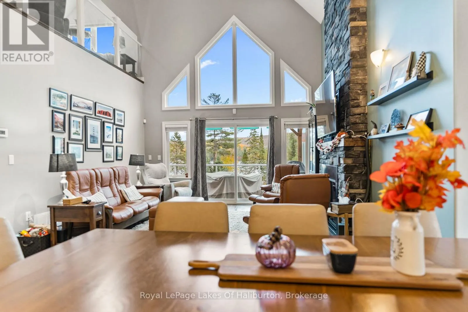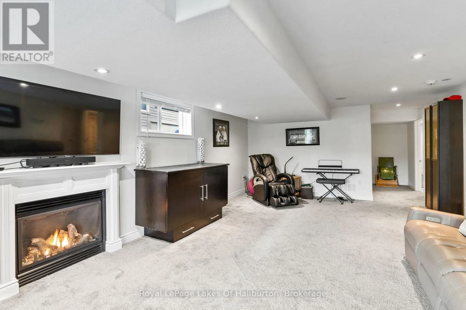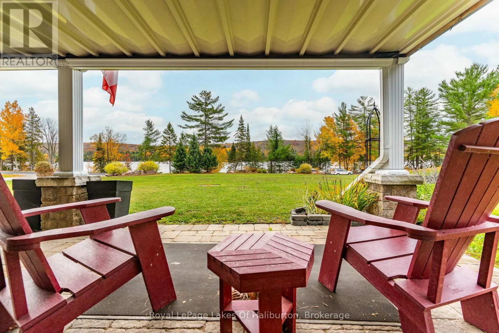 Cross Streets: County Road 21/Wigamog Road. ** Directions: County Rd 21 to Wigamog Road to Margarets Trail To Webb Circle. Welcome to this 4-bedroom, 4-bathroom executive home in the prestigious Silver Beach waterfront community on Kashagawigamog Lake, part of the sought-after 5-lake chain. With 2,955 sq. ft. of refined living space, this home combines quality craftsmanship, luxury finishes, and spectacular lake views.The foyer offers keyless entry, retractable screen, and tile floors leading to a gourmet kitchen with upgraded cabinetry, granite counters, under-cabinet lighting, sit-up area, stainless steel appliances, and elegant fixtures. The great room impresses with cathedral ceilings, a stunning floor-to-ceiling stone propane fireplace, hardwood floors, soaring windows, and walkout to a lakeside composite deck featuring a cedar timber-frame pergola and BBQ area and endless lakeviews.The primary suite provides a peaceful retreat with walkout to the deck and awning, ceiling fan, ensuite with heated floors and glass shower. The upper level offers a bright family room with glass panels overlooking the great room, high ceilings, hardwood flooring, 2 bedrooms, carpeted, ceiling fans, and custom blinds, while a walk-in closet area adds generous storage and 4pc bath with soaker tub.The lower level features a spacious rec room with propane fireplace, pot lights, and walkout to an interlocking lakeside patio. A guest suite offers a walkout to waterside patio, walk-in closet, and 4-pc ensuite. Additional highlights include, all bathrooms with heated floors, a multi-zone HVAC system, new hot water on demand (2025), 18W Generac generator, NFTC fibre optics, and a heated, insulated garage with storage and retractable screen. Exterior upgrades include programmable soffit lighting, glass railings, firepit area, and under-deck shielding.Enjoy exclusive access to the Silver Beach Clubhouse featuring a grand hall, kitchen, fitness center, games room, guest suite, two beaches & trails, close to Haliburton for all your amenities. Dock slip available to purchase ($25K). See full list of features. (id:27476)