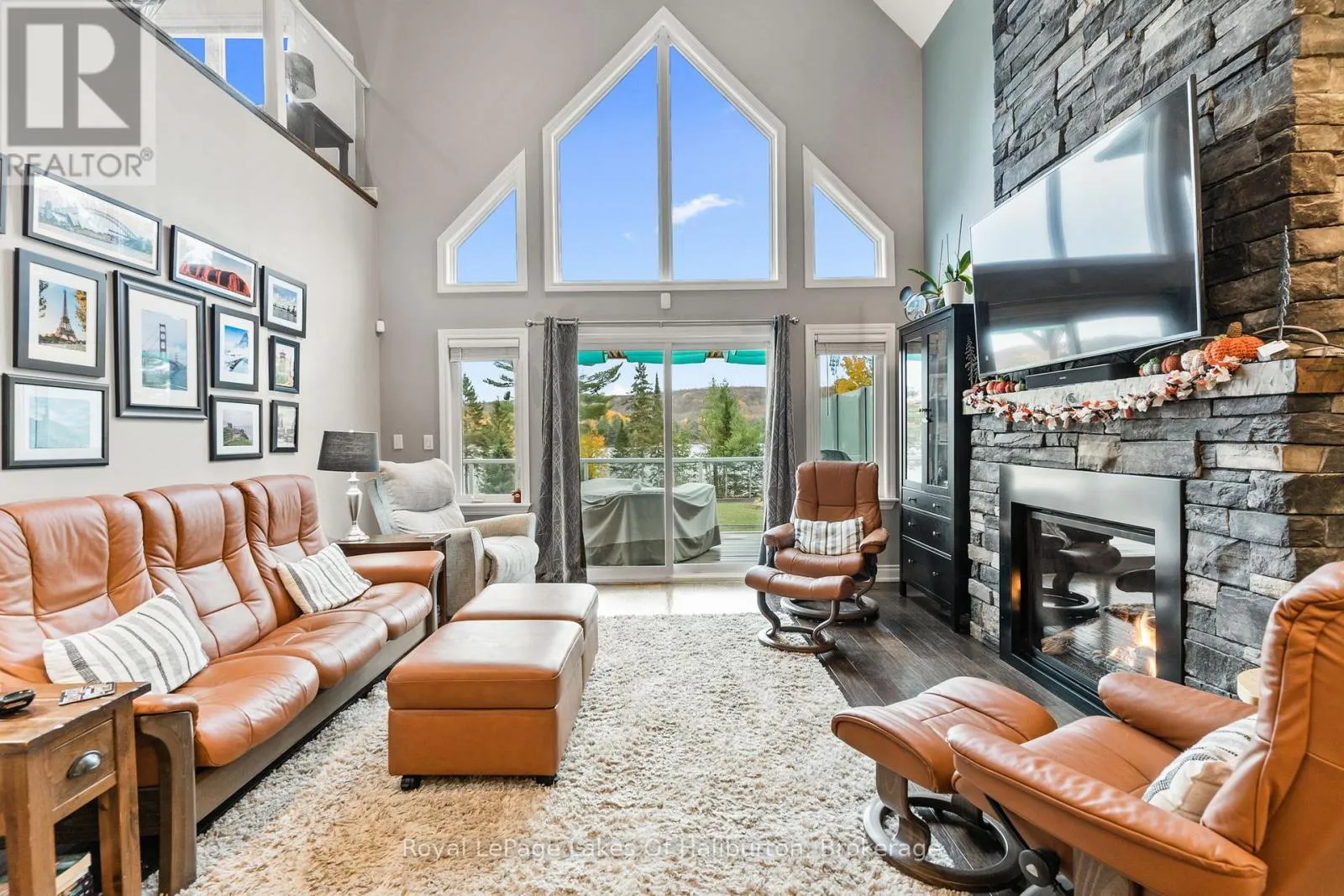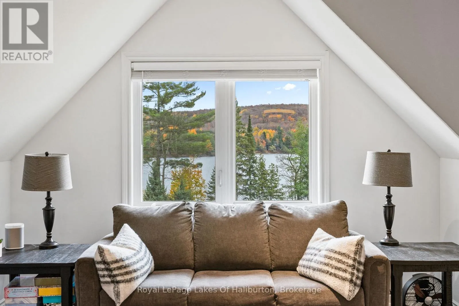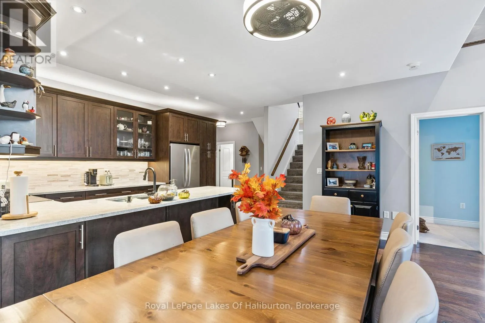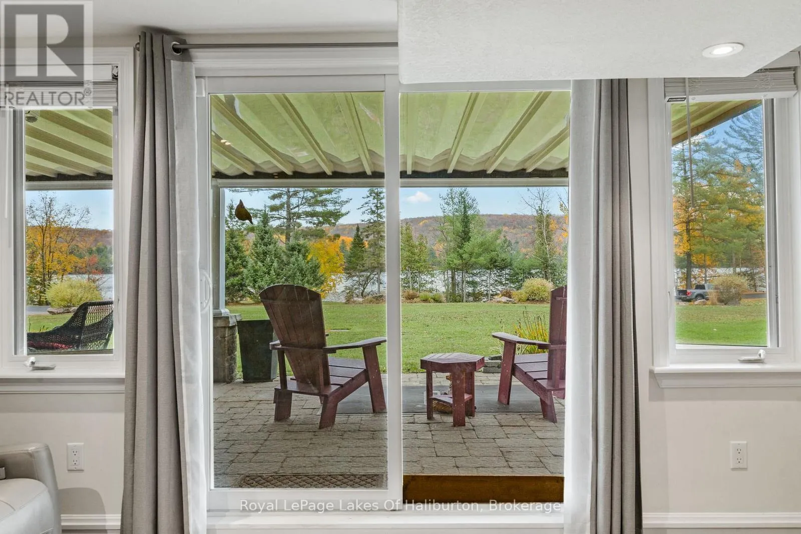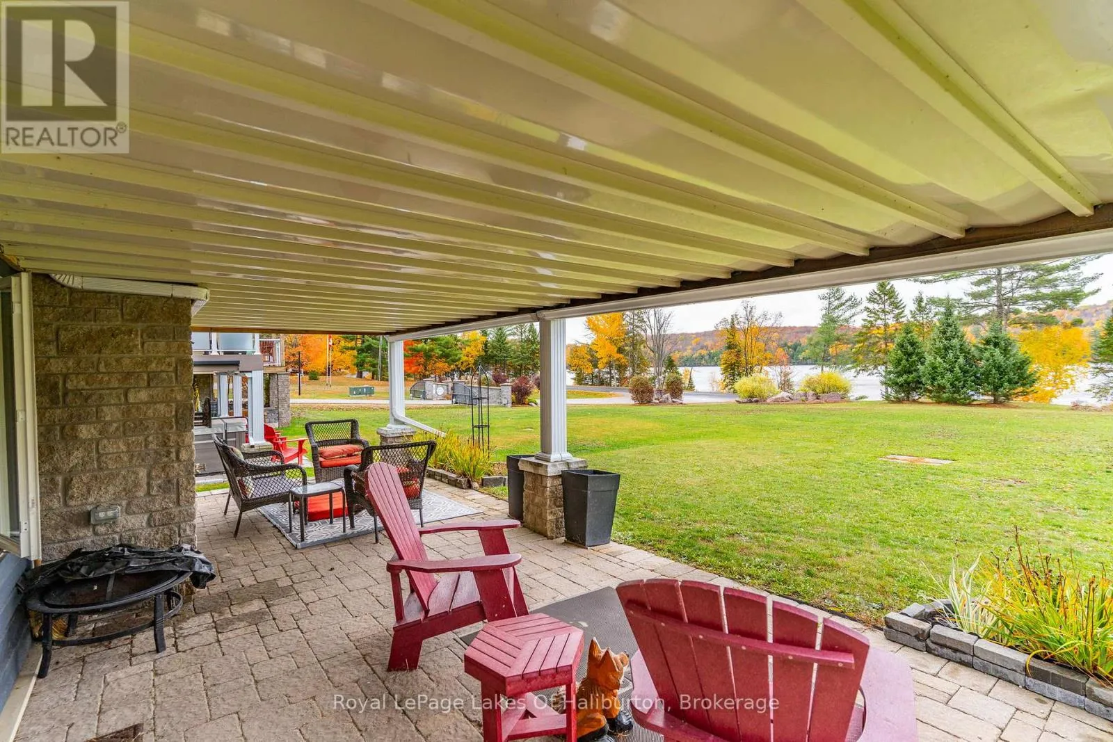 Cross Streets: County Road 21/Wigamog Road. ** Directions: County Rd 21 to Wigamog Road to Margarets Trail To Webb Circle. Welcome to this 4-bedroom, 4-bathroom executive home in the prestigious Silver Beach waterfront community on Kashagawigamog Lake, part of the sought-after 5-lake chain. With 2,955 sq. ft. of refined living space, this home combines quality craftsmanship, luxury finishes, and spectacular lake views.The foyer offers keyless entry, retractable screen, and tile floors leading to a gourmet kitchen with upgraded cabinetry, granite counters, under-cabinet lighting, sit-up area, stainless steel appliances, and elegant fixtures. The great room impresses with cathedral ceilings, a stunning floor-to-ceiling stone propane fireplace, hardwood floors, soaring windows, and walkout to a lakeside composite deck featuring a cedar timber-frame pergola and BBQ area and endless lakeviews.The primary suite provides a peaceful retreat with walkout to the deck and awning, ceiling fan, ensuite with heated floors and glass shower. The upper level offers a bright family room with glass panels overlooking the great room, high ceilings, hardwood flooring, 2 bedrooms, carpeted, ceiling fans, and custom blinds, while a walk-in closet area adds generous storage and 4pc bath with soaker tub.The lower level features a spacious rec room with propane fireplace, pot lights, and walkout to an interlocking lakeside patio. A guest suite offers a walkout to waterside patio, walk-in closet, and 4-pc ensuite. Additional highlights include, all bathrooms with heated floors, a multi-zone HVAC system, new hot water on demand (2025), 18W Generac generator, NFTC fibre optics, and a heated, insulated garage with storage and retractable screen. Exterior upgrades include programmable soffit lighting, glass railings, firepit area, and under-deck shielding.Enjoy exclusive access to the Silver Beach Clubhouse featuring a grand hall, kitchen, fitness center, games room, guest suite, two beaches & trails, close to Haliburton for all your amenities. Dock slip available to purchase ($25K). See full list of features. (id:27476)