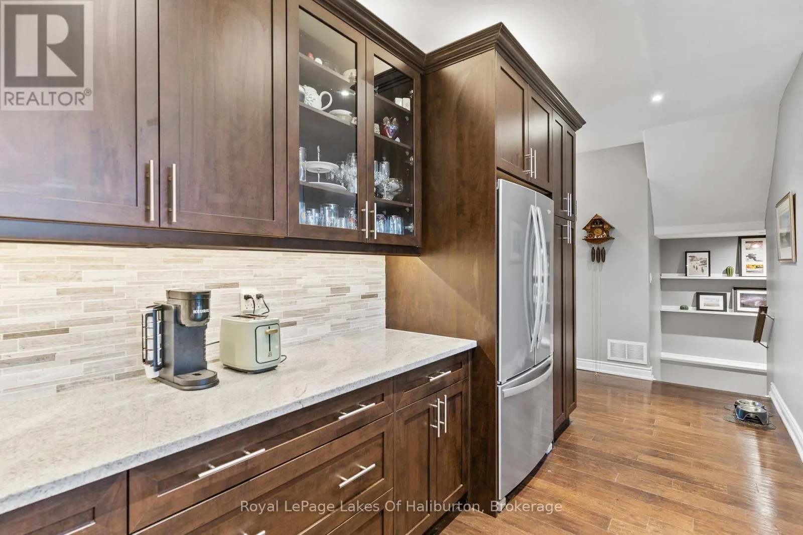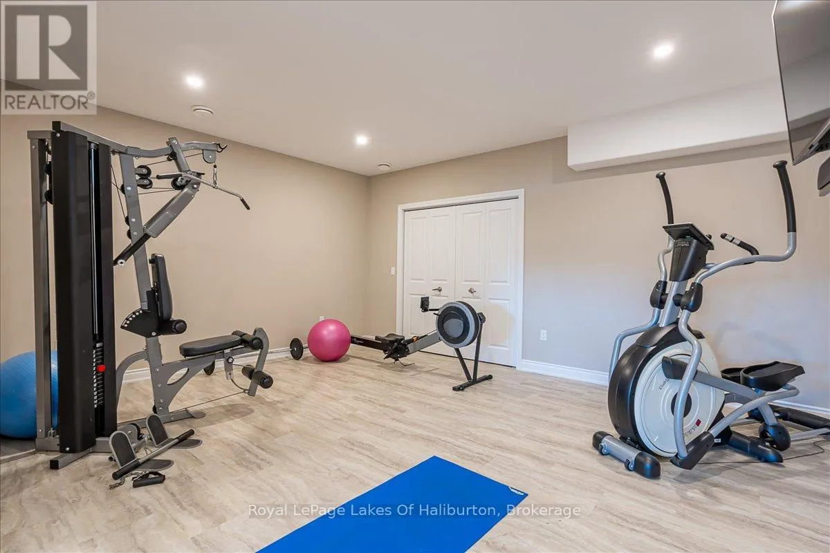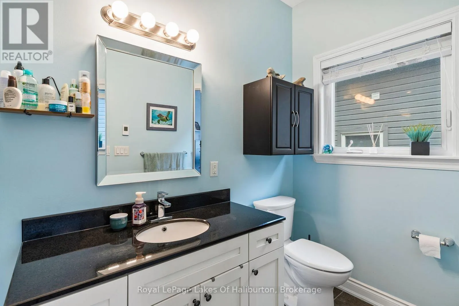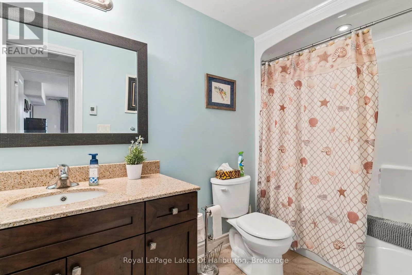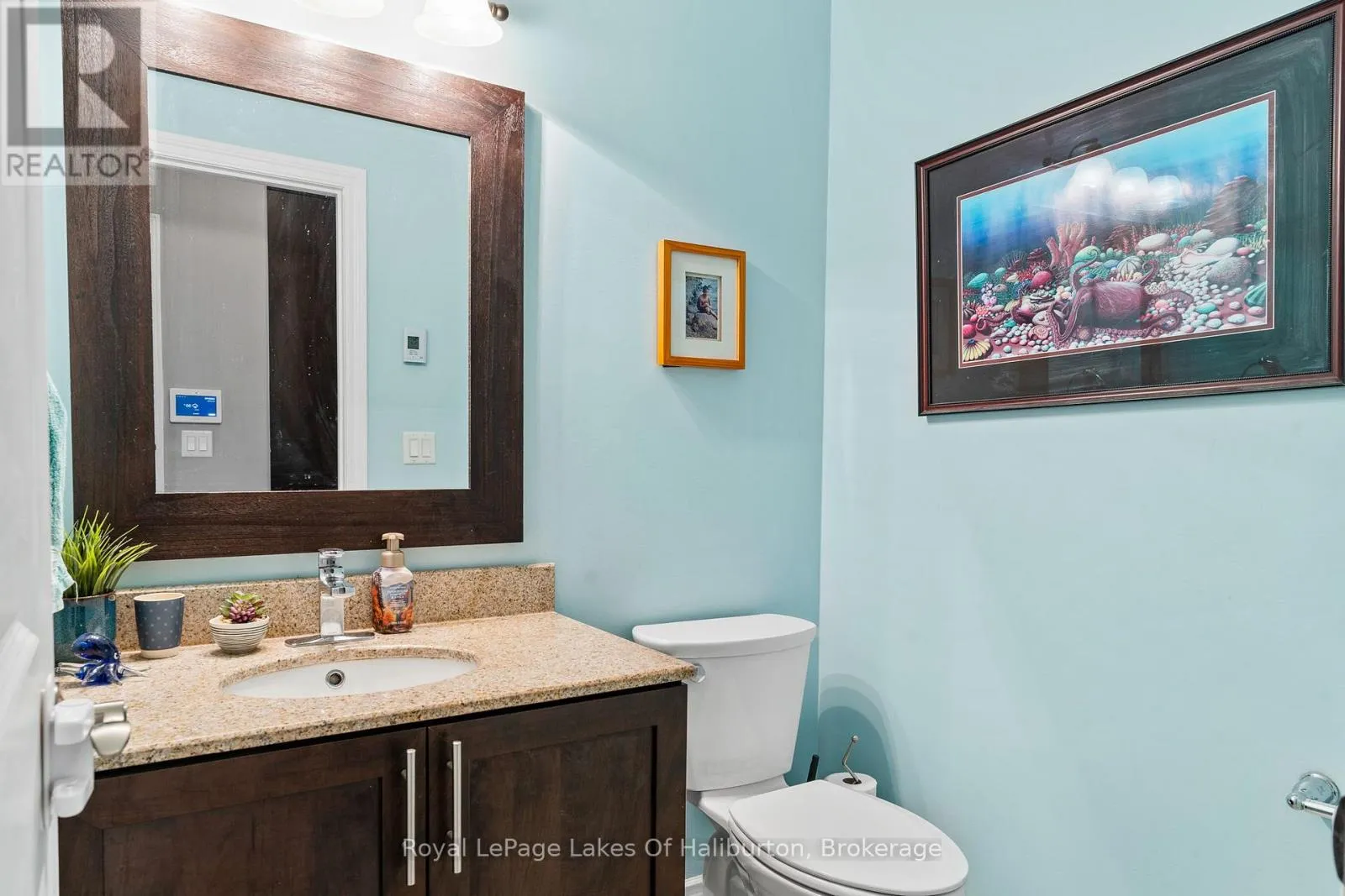 Cross Streets: County Road 21/Wigamog Road. ** Directions: County Rd 21 to Wigamog Road to Margarets Trail To Webb Circle. Welcome to this 4-bedroom, 4-bathroom executive home in the prestigious Silver Beach waterfront community on Kashagawigamog Lake, part of the sought-after 5-lake chain. With 2,955 sq. ft. of refined living space, this home combines quality craftsmanship, luxury finishes, and spectacular lake views.The foyer offers keyless entry, retractable screen, and tile floors leading to a gourmet kitchen with upgraded cabinetry, granite counters, under-cabinet lighting, sit-up area, stainless steel appliances, and elegant fixtures. The great room impresses with cathedral ceilings, a stunning floor-to-ceiling stone propane fireplace, hardwood floors, soaring windows, and walkout to a lakeside composite deck featuring a cedar timber-frame pergola and BBQ area and endless lakeviews.The primary suite provides a peaceful retreat with walkout to the deck and awning, ceiling fan, ensuite with heated floors and glass shower. The upper level offers a bright family room with glass panels overlooking the great room, high ceilings, hardwood flooring, 2 bedrooms, carpeted, ceiling fans, and custom blinds, while a walk-in closet area adds generous storage and 4pc bath with soaker tub.The lower level features a spacious rec room with propane fireplace, pot lights, and walkout to an interlocking lakeside patio. A guest suite offers a walkout to waterside patio, walk-in closet, and 4-pc ensuite. Additional highlights include, all bathrooms with heated floors, a multi-zone HVAC system, new hot water on demand (2025), 18W Generac generator, NFTC fibre optics, and a heated, insulated garage with storage and retractable screen. Exterior upgrades include programmable soffit lighting, glass railings, firepit area, and under-deck shielding.Enjoy exclusive access to the Silver Beach Clubhouse featuring a grand hall, kitchen, fitness center, games room, guest suite, two beaches & trails, close to Haliburton for all your amenities. Dock slip available to purchase ($25K). See full list of features. (id:27476)
