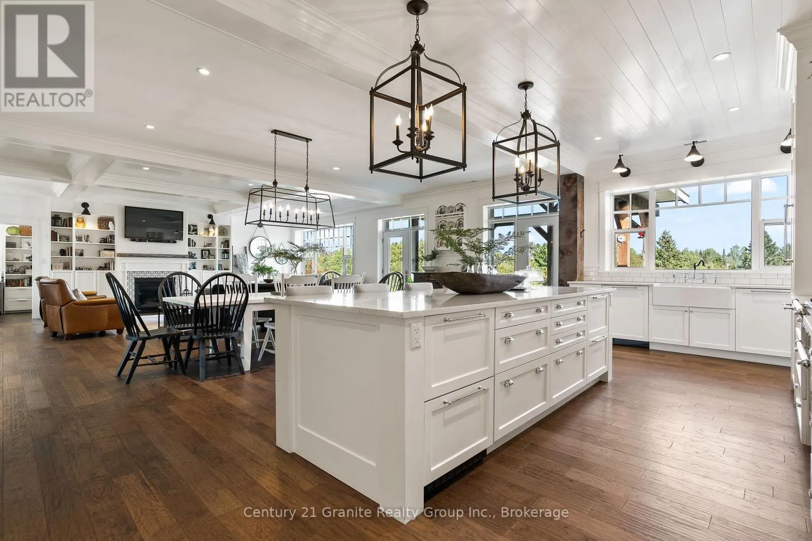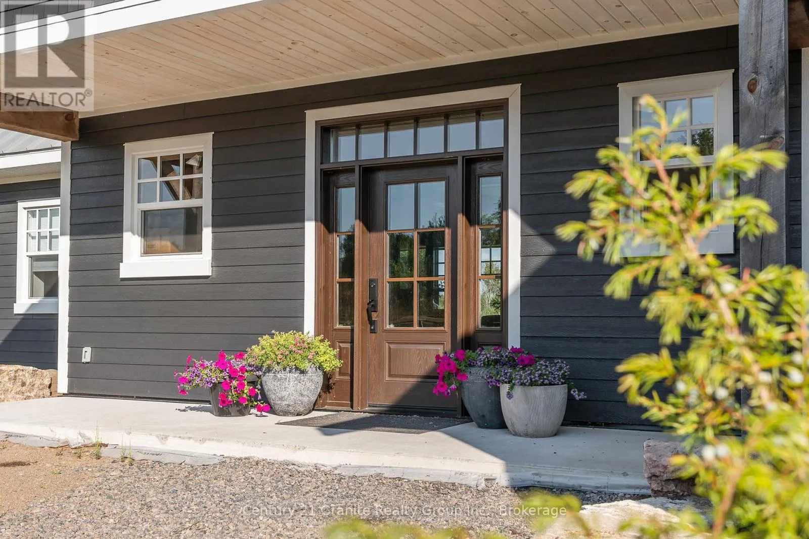 Cross Streets: County Road 21 to Mountain Street to Unicorn Road to signs at #2194. ** Directions: Highland Street to Mountain Street, continue on Unicorn Road to signs at #2194. Experience luxury and tranquility in this meticulously crafted home, nestled on 4.5 acres just minutes from Haliburton in the exclusive Gainforth Estates neighbourhood. Completed in 2022, this 4 bedroom and 2.5 bathroom bungalow has been built using only the finest materials, with no detail overlooked and no expense spared. This property offers a serene escape with direct access to 41 acres of adjacent shared parkland including trails and a beautiful deep water pond for swimming, fishing, canoeing and kayaking - a nature lovers paradise! With nearly 3000 square feet of refined living space on one floor, this home exudes both grandeur and warmth. A spacious foyer leads into the the open concept living space which was designed for entertaining with its impressive 10-foot ceilings, bespoke millwork, timber-frame accents, floor-to-ceiling propane fireplace and extensive windows and multiple walk-outs for easy access to the covered porch and bright, southerly views over the stunning property. The custom kitchen offers quartz counters, built-in panelled appliances, an oversized island with seating for 5 and the bonus of a butler's pantry with laundry for additional storage and prep space. The primary suite features an office space, walk-out to the backyard and an extraordinary spa-like ensuite with curbless shower, dual sinks and freestanding soaker tub. Three additional spacious bedrooms and a 5-piece guest bath complete this perfectly laid-out home. Additional features include: engineered hardwood and tile floors throughout with radiant in-floor heat, forced air propane furnace and central air, oversized septic and dug spring-fed well for exceptional water quality and supply. An attached garage provides convenient parking, additional storage and direct access to the mud room. Don't miss your opportunity to make this exquisite property in one of Haliburton's most sought after neighbourhoods your own, and enjoy this perfect blend of luxury and nature for years to come. (id:27476)