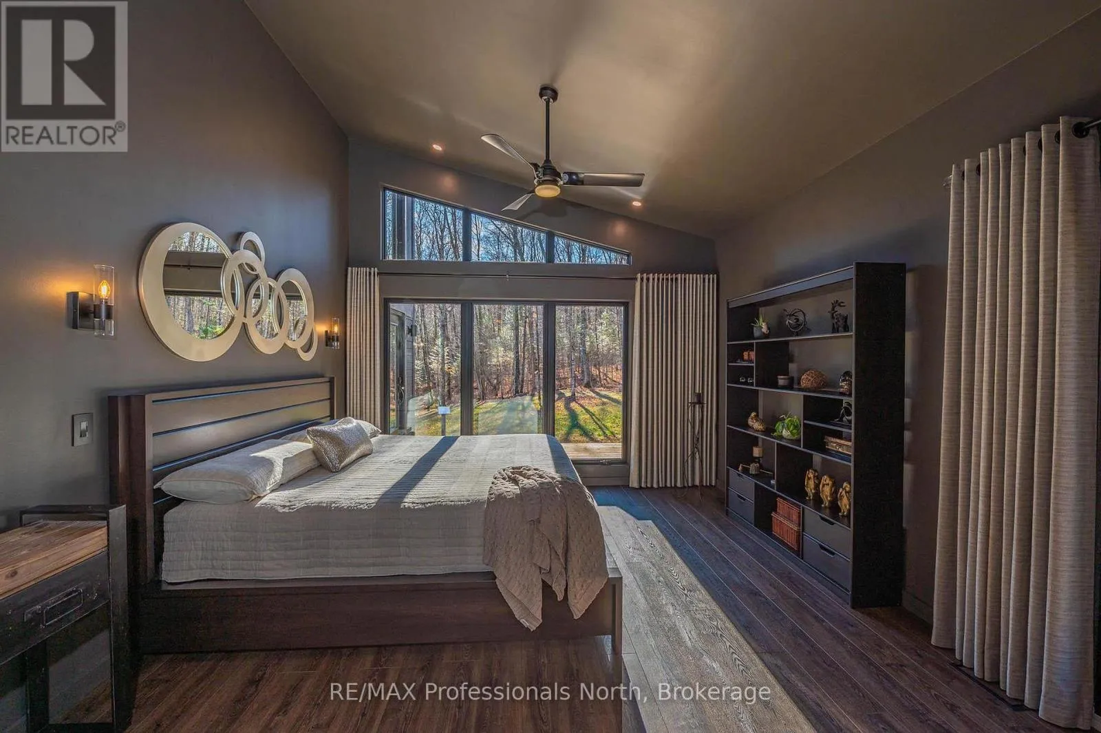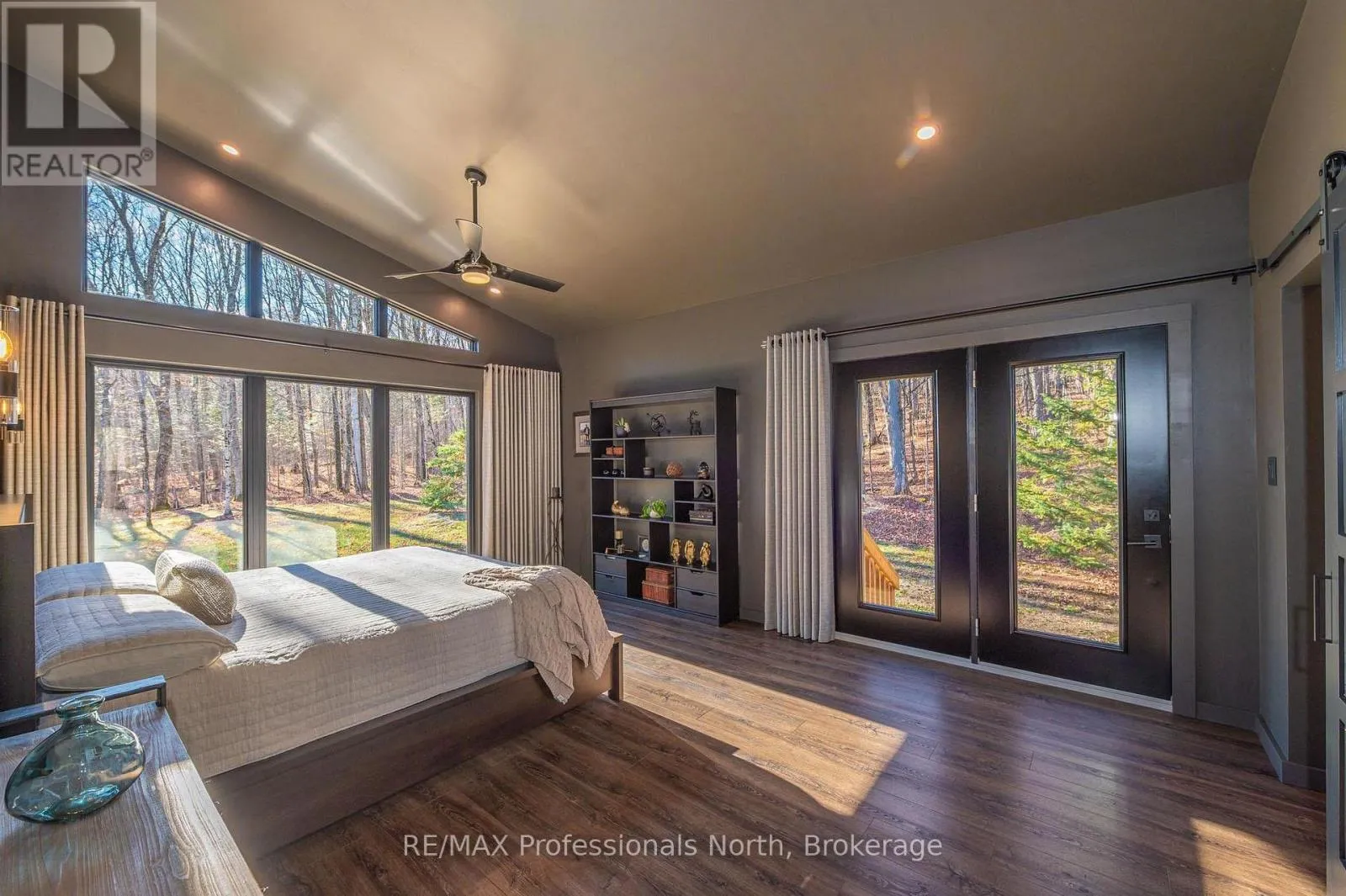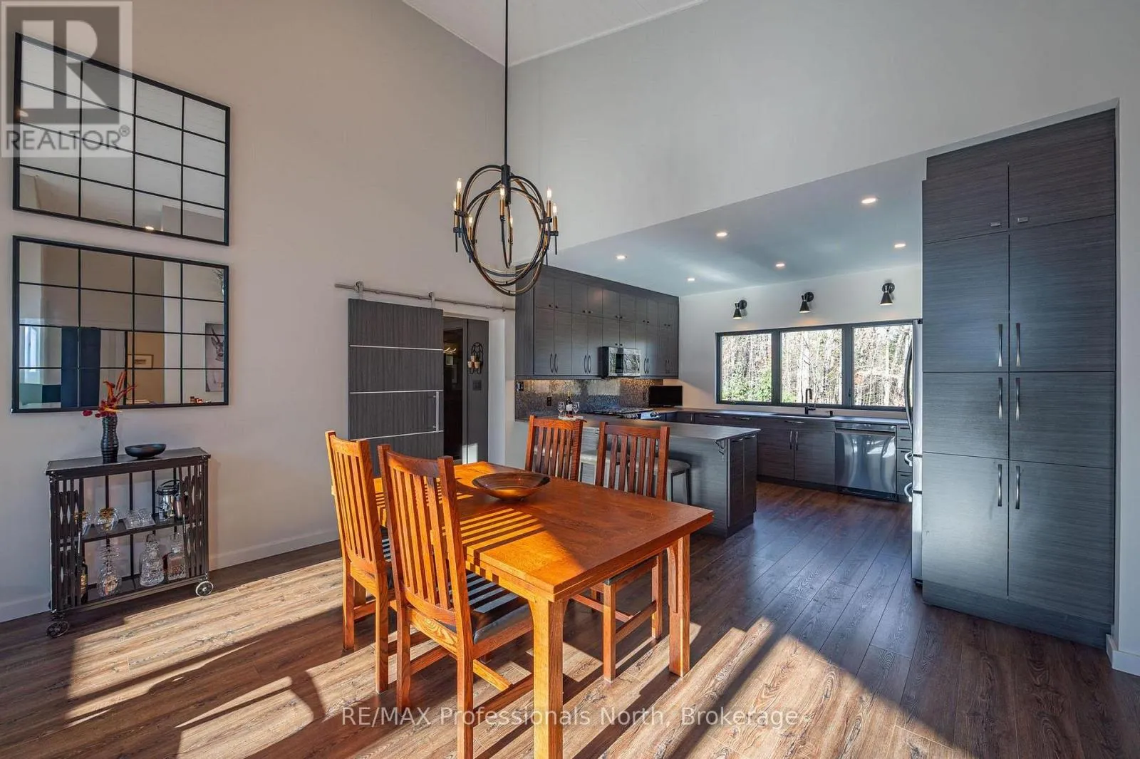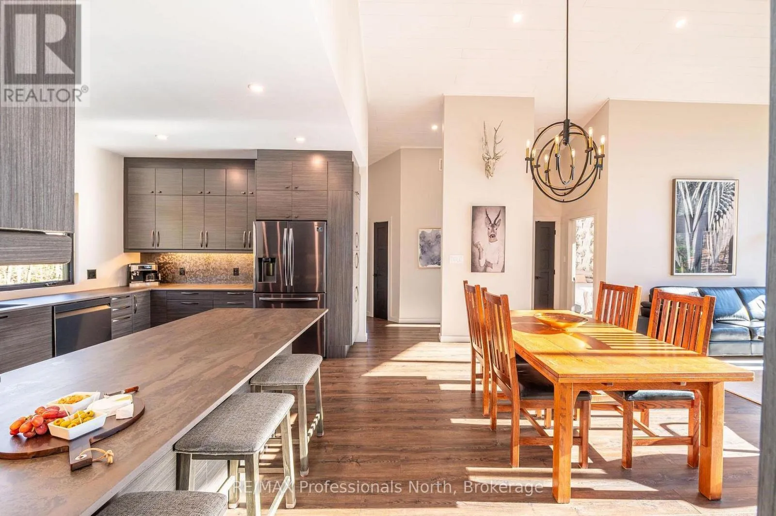 Cross Streets: Highway 118 and Glamorgan Road. ** Directions: Highway 118 to Glamorgan Road to #3777. Custom built in 2020, this beautiful 2 bedroom, 2 bathroom home offers quality craftsmanship and modern design throughout. The open-concept living area features vaulted ceilings, a floor-to-ceiling fireplace, and large windows that capture stunning views of the surrounding landscape. The high-end kitchen is a chef's dream designed for both style and function, with premium finishes, including Dekton counters, stylish cabinetry and plenty of space for entertaining. The primary bedroom is large and spacious and includes a bright walk in closet. The ensuite is bright with a spa-like atmosphere. The combination of smooth quartz surfaces and the soft gleam of polished nickel adds both sophistication and warmth. The main level flows seamlessly to the outdoor living areas, providing excellent privacy on 5.95 acres of land. The full basement is partially finished, offering potential for additional living space, a home gym or recreation areas. A 24' x 30' detached garage provides ample room for vehicles, storage, or a workshop. A propane heater for the garage is included. It is not hooked up and will be the responsibility of the new owner. Located just minutes from Haliburton Village, this property combines privacy and convenience with easy access to town amenities. A perfect retreat offering comfort, space, and modern rural living at its best. (id:27476)