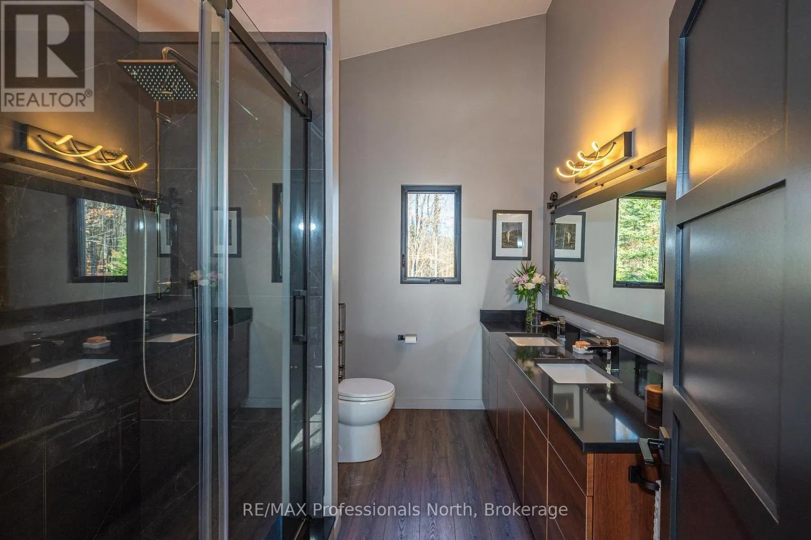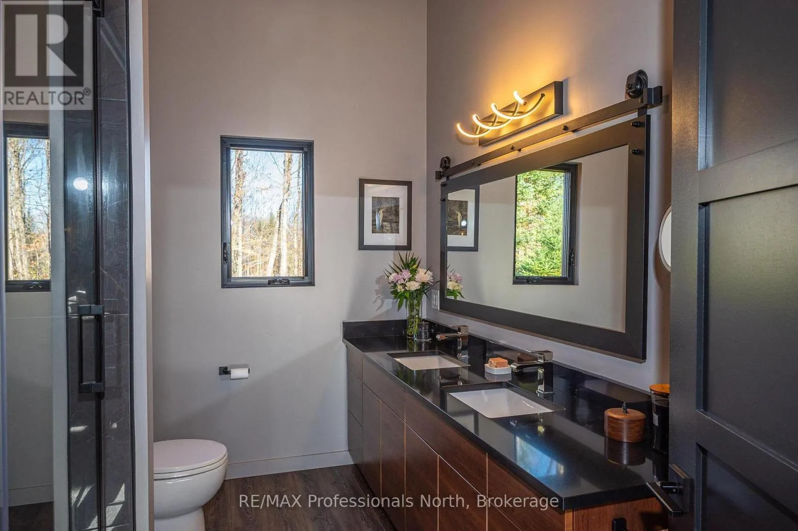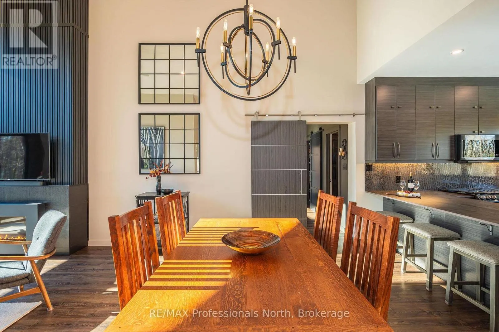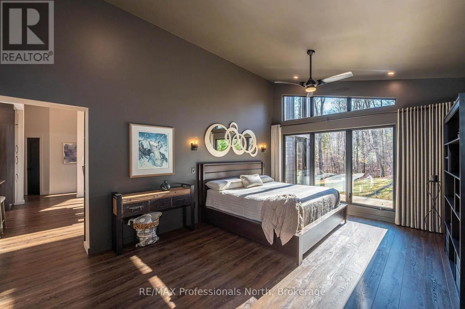 Cross Streets: Highway 118 and Glamorgan Road. ** Directions: Highway 118 to Glamorgan Road to #3777. Custom built in 2020, this beautiful 2 bedroom, 2 bathroom home offers quality craftsmanship and modern design throughout. The open-concept living area features vaulted ceilings, a floor-to-ceiling fireplace, and large windows that capture stunning views of the surrounding landscape. The high-end kitchen is a chef's dream designed for both style and function, with premium finishes, including Dekton counters, stylish cabinetry and plenty of space for entertaining. The primary bedroom is large and spacious and includes a bright walk in closet. The ensuite is bright with a spa-like atmosphere. The combination of smooth quartz surfaces and the soft gleam of polished nickel adds both sophistication and warmth. The main level flows seamlessly to the outdoor living areas, providing excellent privacy on 5.95 acres of land. The full basement is partially finished, offering potential for additional living space, a home gym or recreation areas. A 24' x 30' detached garage provides ample room for vehicles, storage, or a workshop. A propane heater for the garage is included. It is not hooked up and will be the responsibility of the new owner. Located just minutes from Haliburton Village, this property combines privacy and convenience with easy access to town amenities. A perfect retreat offering comfort, space, and modern rural living at its best. (id:27476)