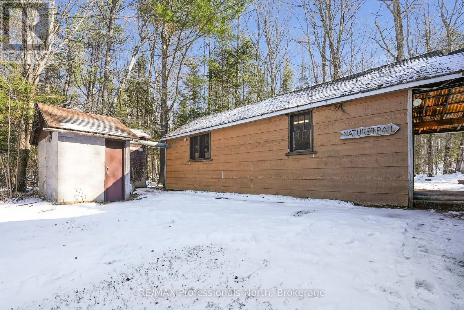 Cross Streets: Fishtail Lake Road/ Elephant Lake Road. ** Directions: Loop Road to Elephant Lake Road to Fishtail Lake Road- sign on left #1171. Escape to your own woodland retreat with this cozy, one-level cottage offering 960 sq. ft. of comfortable living space and plenty of room for guests. Nestled on a beautifully treed 1.3-acre lot, this rustic cabin provides exceptional privacy and a peaceful, quiet setting surrounded by nature.The cottage is fully serviced with hydro, making it ideal for both weekend getaways and extended stays. Enjoy immediate access to outdoor adventure-you're just steps from the OFSC snowmobile trail, close to ATV routes, and minutes from scenic hiking and horseback-riding trails.A short 5-minute drive brings you to Fishtail Lake, where you'll find a public boat launch perfect for fishing, paddling, and summer fun. The property is also just steps away from the southern entrance to Algonquin Park, offering endless opportunities for camping, wildlife viewing, and exploring one of Ontario's most iconic natural landscapes. (id:27476)