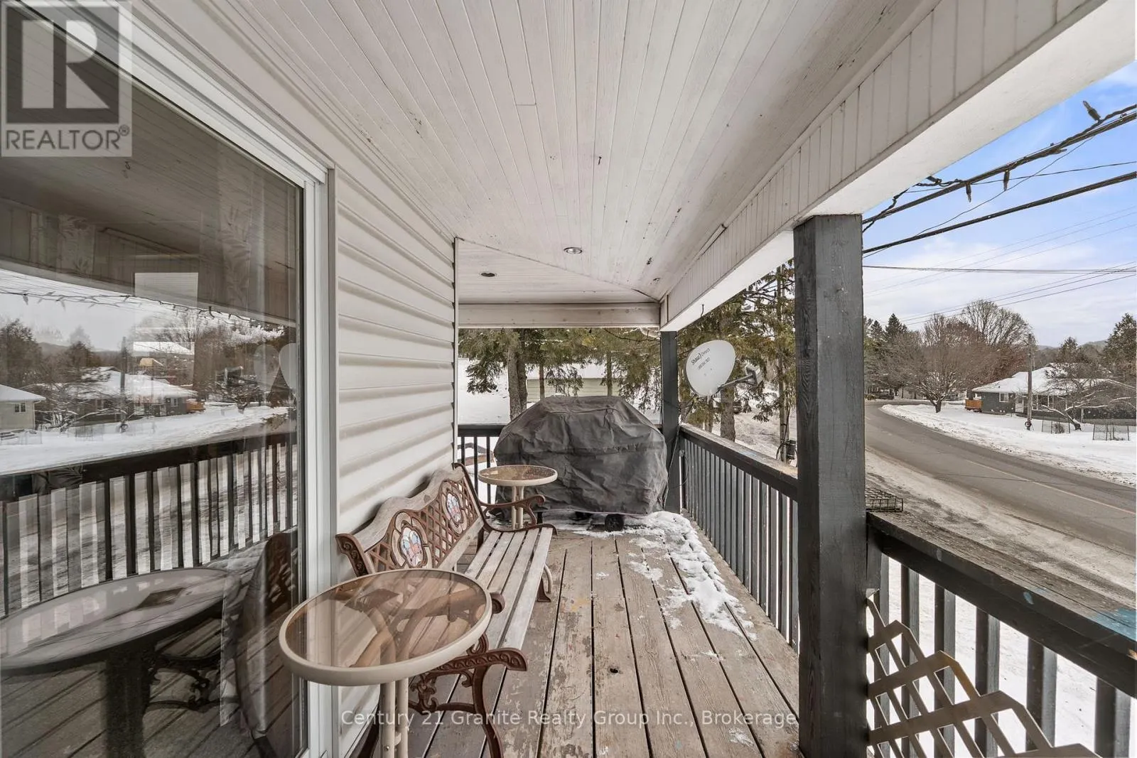 Cross Streets: Maple Ave & Sunnyside St. ** Directions: Maple Ave to to Sunnyside St. A Sweet In-Town Package in the Heart of Haliburton! This charming 3-bedroom in-town home offers exceptional walkability, easy living, and all the conveniences you're looking for. The welcoming floor plan features a great open-concept kitchen, dining, and living area that flows seamlessly to the covered wraparound porch. Start your mornings with a coffee in hand, enjoying the beautiful, bright sunrises, or spend quiet evenings unwinding in the hot tub-the perfect spot to relax with your favourite beverage. The well-designed kitchen is ideal for cookie baking or preparing everyday meals, making it a true heart-of-the-home space. Additional features include main floor laundry, a garage, drilled well, town sewers, propane furnace, and air conditioning. This home is a wonderful starter property, retirement option, or smart investment. Perfectly located, you're just a 3-minute walk to Rotary Park and the public beach, a local favourite for swimming, picnics, and lakeside relaxation. Head Lake, the first in Haliburton's beautiful five-lake chain, is close at hand, with a public boat launch under 5 minutes away. Your daily walk to town is level and comfortable, with sidewalks and streetlights leading you to groceries, banks, schools, and popular Up River Trading for lattes and treats. The area offers an incredible four-season lifestyle, surrounded by restaurants, gift shops, and attractions like the iconic Sculpture Forest. The Haliburton School of Art + Design - Fleming College are all within 5 minutes. Whether you're seeking a charming in-town home, a rental or investment property, or you're ready to step into homeownership, this property is truly a sweet, complete package. (id:27476)