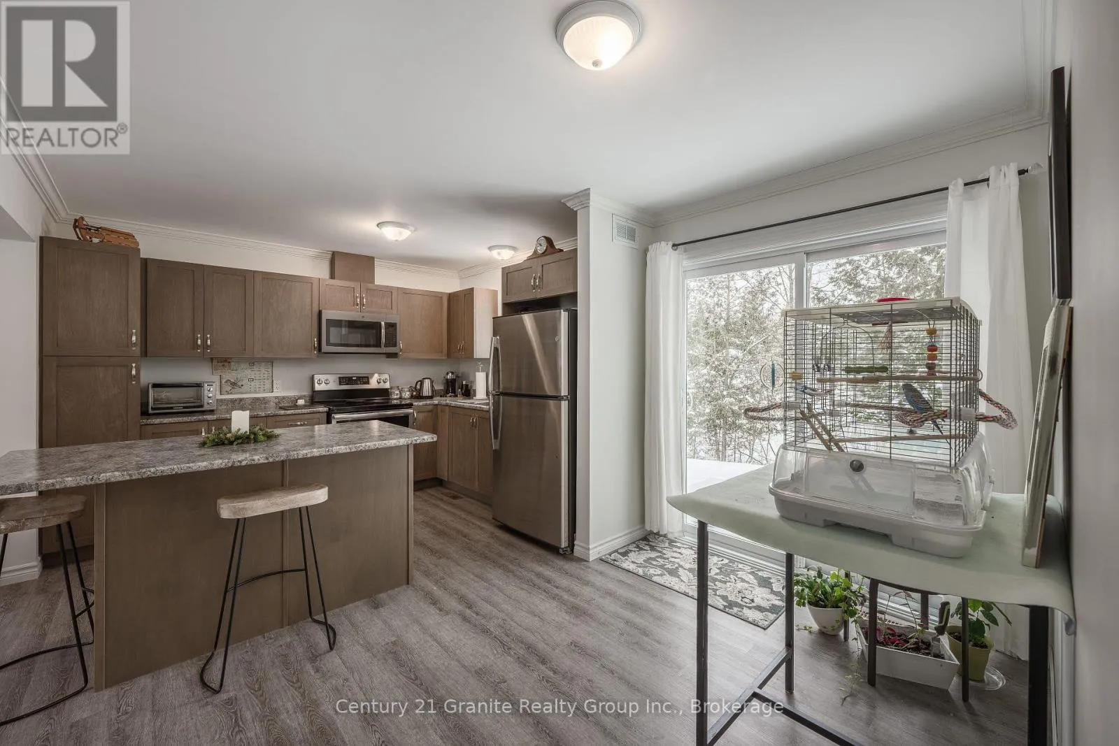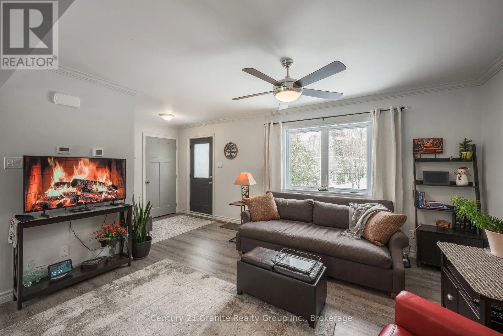 Cross Streets: Eagle Lake Road and Guilford Crt. ** Directions: Highway 118 to Kennisis Lake Road, right on Eagle Lake Road, left onto Guilford Crt to #1015. Welcome to this charming, thoughtfully designed 2-bedroom, 1-bathroom home offering just over 800 square feet of comfortable living space. The open-concept layout seamlessly connects the kitchen, dining, and living areas, all tastefully finished and filled with natural light. The spacious living area overlooks the property, while a walkout from the dining area leads to the deck and backyard - private and perfect for relaxing or entertaining. The primary bedroom features two closets, and the well-appointed 4-piece bathroom enhances the home's functional design. Additional features include main floor laundry, forced-air propane heating, and a poured concrete crawl space providing ample storage. Built in 2019, this home still benefits from Tarion warranty coverage. Ideally located just 10 minutes from Haliburton Village, this property is within walking distance to Pine Lake's public beach and a short stroll into West Guilford, where you'll find the park, community centre, general store, and more. A fantastic opportunity for first-time buyers, downsizers, or those seeking a low-maintenance home in a desirable location. Book your private tour today! (id:27476)