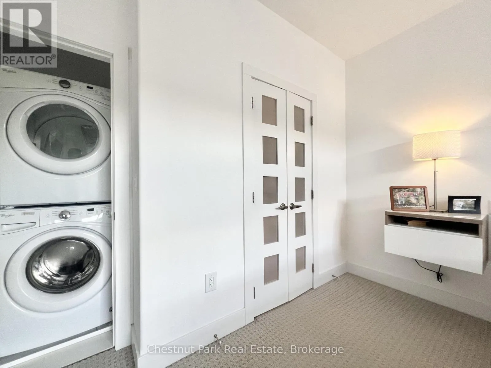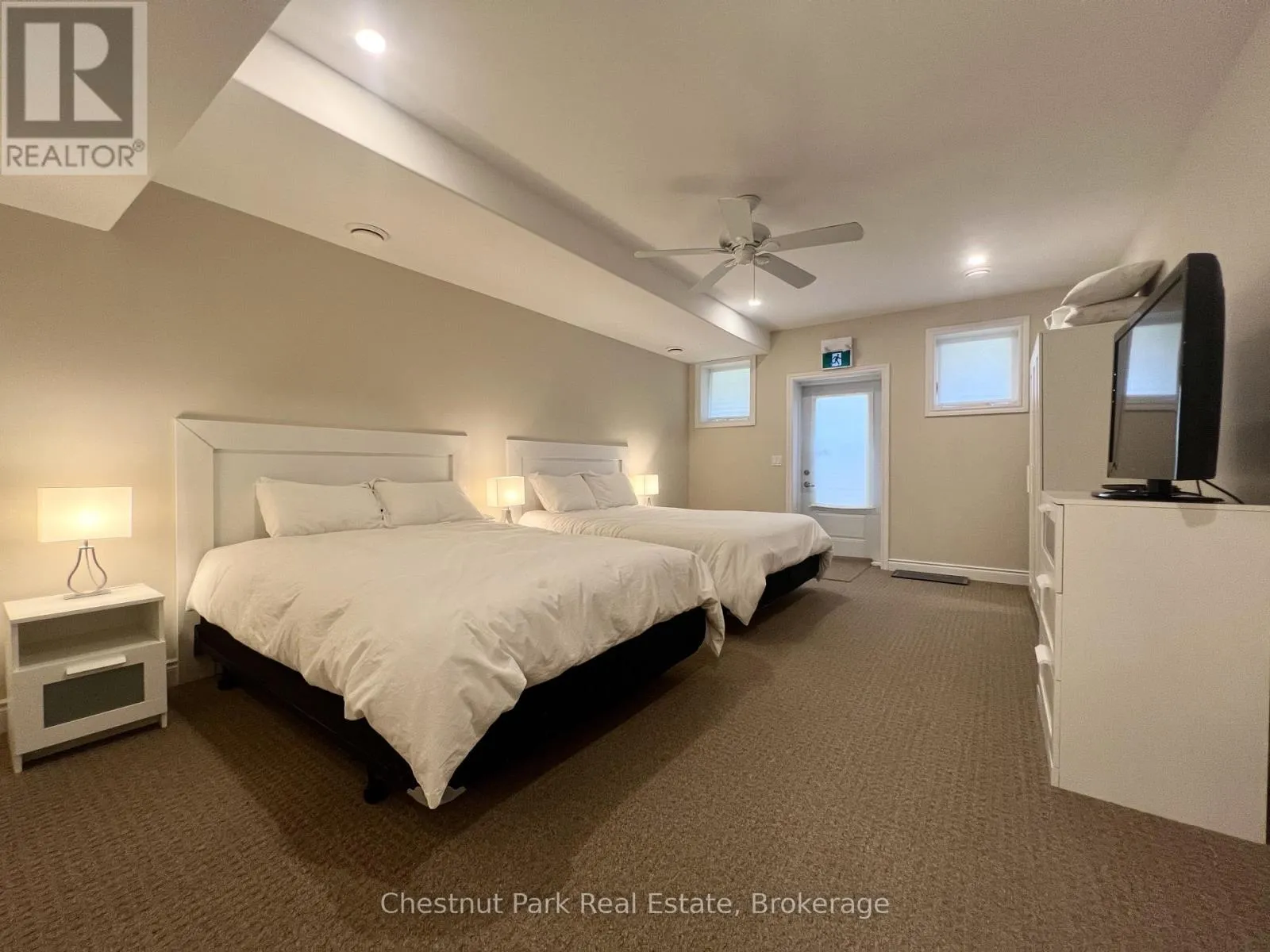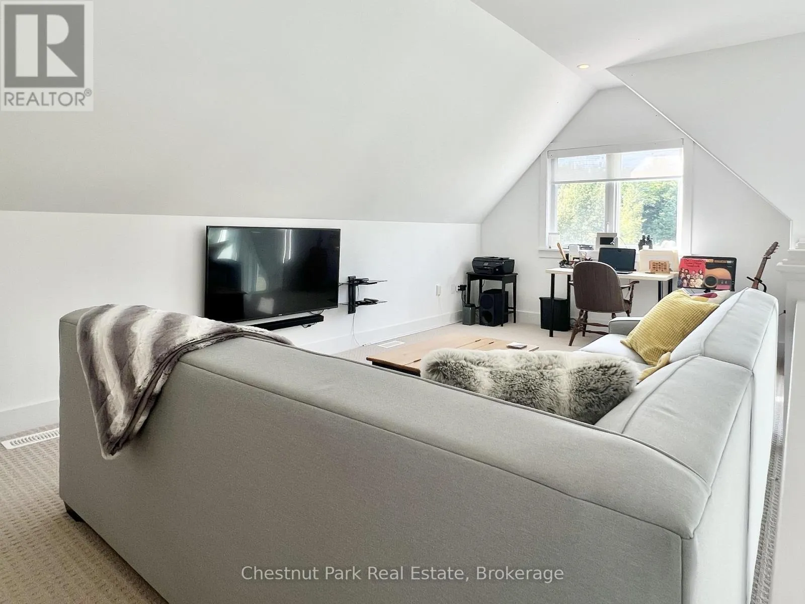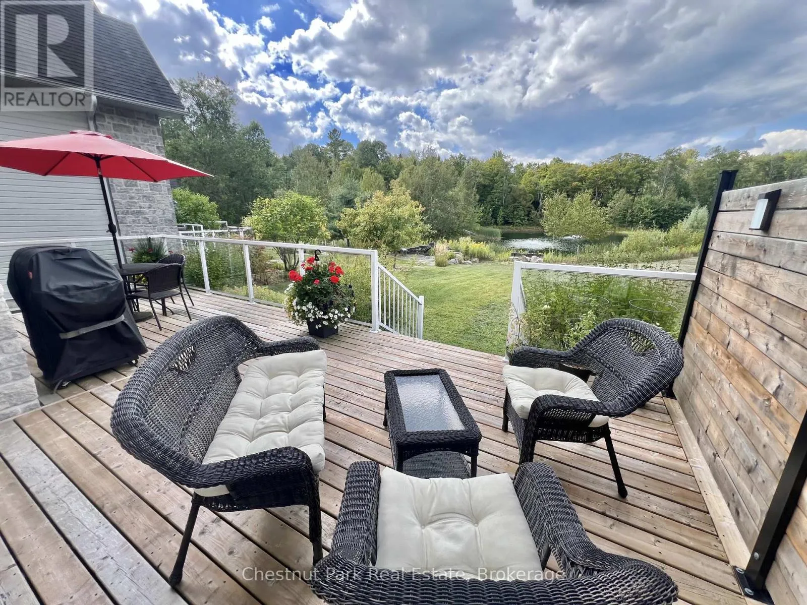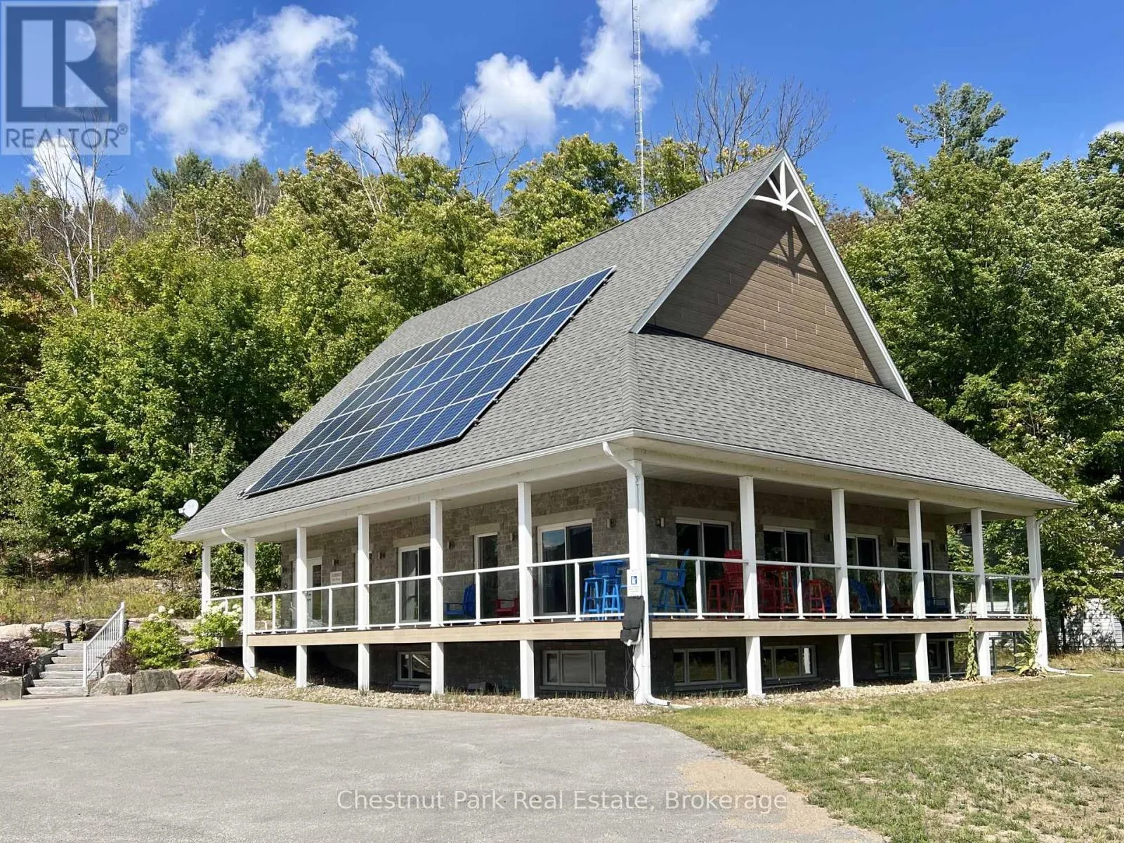 Cross Streets: Margaret's Trail and William James Court. ** Directions: Hwy 21 to Wigamog Road to Margaret's Trail (Silver Beach Entrance) to William James to #8. Welcome to Silver Beach, Haliburton's Premier Lakeside Community! Discover refined cottage country living on Haliburton's renowned 5-lake chain. Built in 2018, this exquisite home is comprised of 3,165 sq. ft. of finished living space, one of the largest in the development, & offers the perfect blend of modern luxury, low-maintenance living, & a true 4-season lifestyle. Step inside to an open-concept main level where cathedral ceilings, a propane fireplace, & a dramatic wall of windows frame serene pond, forest & sunset views. The chef's kitchen is equipped with quartz counters, a breakfast bar, & s/s appliances.. A spacious dining area flows seamlessly to the great room & out to the large deck. The main floor also features a foyer, a powder room, & the primary suite with laundry, walk-in closet, ensuite bath, & walkout to the deck. Upstairs, a striking glass-railed loft overlooks the main living space. There are 2 bdrms, one very generously sized & one with direct access to the luxurious, upper level, spa like bath with soaker tub & walk-in shower. The finished lower level extends the living space with a large family room, large guest bdrm, full bath, & ample storage. An attached 2 car garage adds convenience. Premium amenities at Silver Beach include a clubhouse with Grand Hall for organized activities/events, a fitness centre, a games room, & a guest suite for visitors, forested trails that adjoin Pinestone Golf Course, 2 sand beaches within a few min walk, & docking facilities where you can dive right in, or purchase a slip (avail for $19,000) allowing you to boat across sparkling waters & enjoy endless water based activities. Dock maintenance, snow removal, grass cutting, town sewers, community water treatment, & a level 2 EV charger all add to convenience. Located just minutes from golf, dining, health care (10 min away), & the town of Haliburton, this property offers comfort, community, & convenience in one of cottage country's most desirable settings! (id:27476)