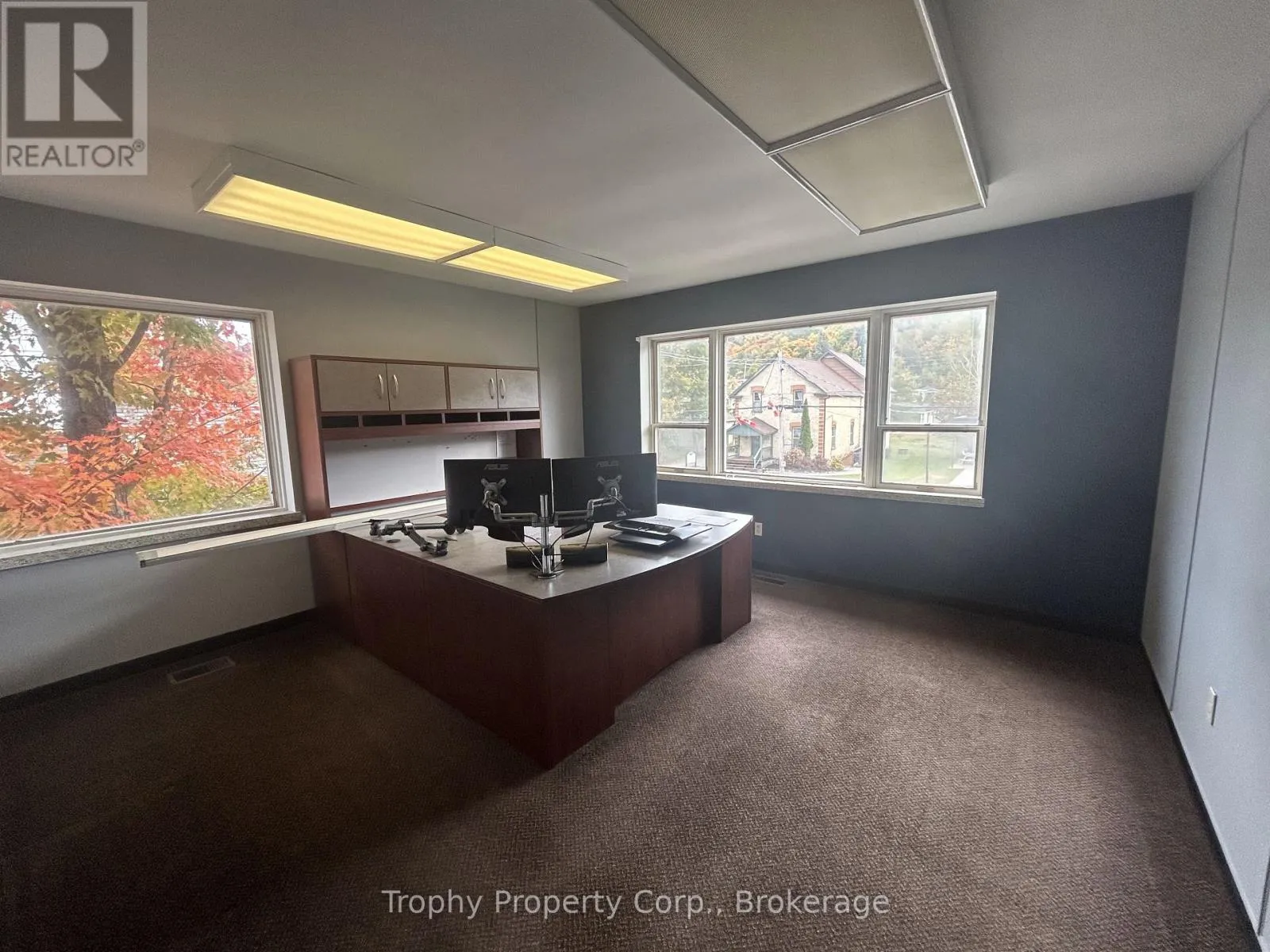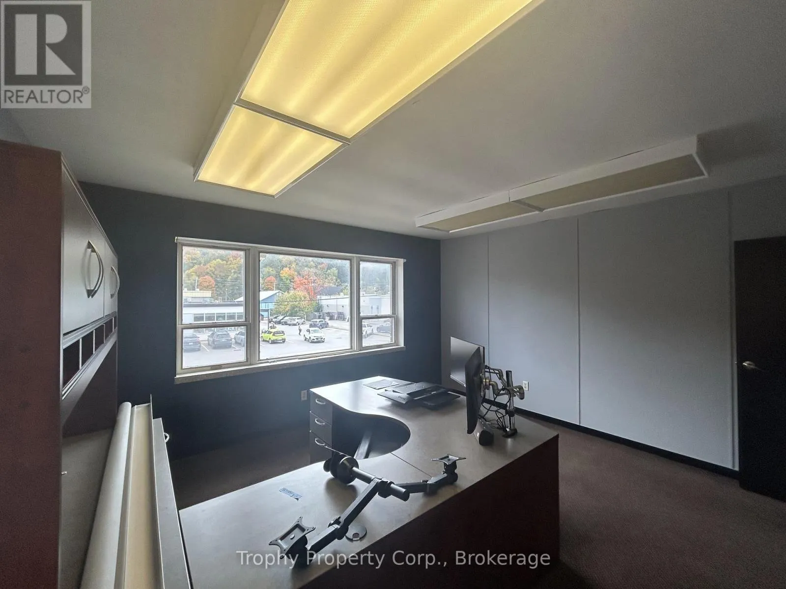 Cross Streets: HWY 118. ** Directions: HIGHLAND STREET TO 235. EXCELLENT BRIGHT LARGE EXECUTIVE OFFICES WITH 4 SIDES OF WINDOWS AND RIVER VIEWS OPPOSITE THE LCBO IN DOWNTOWN HALIBURTON. CURRENTLY CONFIGURED WITH 6 LARGE OFFICES, BOARDROOM, KITCHEN, RECEPTION, VAULT ROOM, THREE WASHROOMS AND UTILITY ROOM. THIS SELF-CONTAINED SUITE ENJOYS SEPARATE FURNACE, AIR CONDITIONING, WIFI, SECURITY SYSTEM AND HYDRO, EXCLUSIVE PRIME STREET SIGNAGE WITH DIRECTIONAL BANNERS AND POSSIBLE NAMING RIGHTS. TWO ENTRANCES FROM STREET AND REAR PAVED PARKING AREAS WITH PASSENGER LIFT. PROFESSIONALS, CHARITIES, NOT FOR PROFITS, LAWYERS, REAL ESTATE, ACCOUNTANTS AND GENERAL BUSINESS OPERATIONS WILL BE IDEAL. LANDLORD WILLING TO CONSIDER LEASEHOLD IMPROVEMENTS AND/OR DIVIDING INTO SMALLER SUITES FROM 250 sq.ft. + (id:27476)