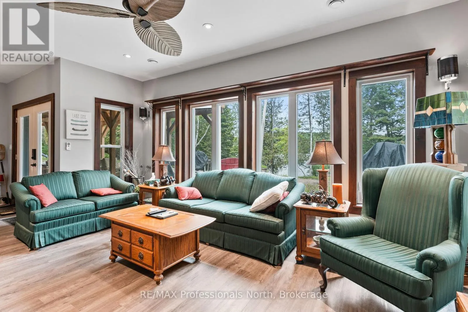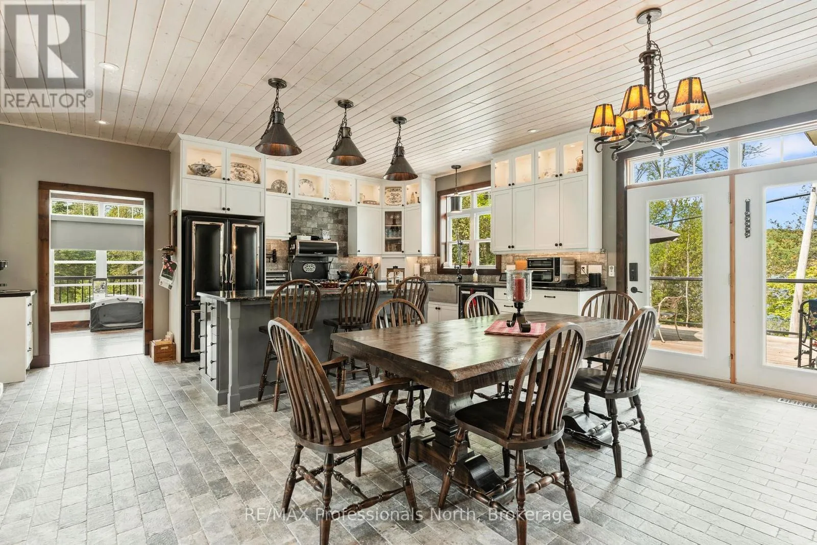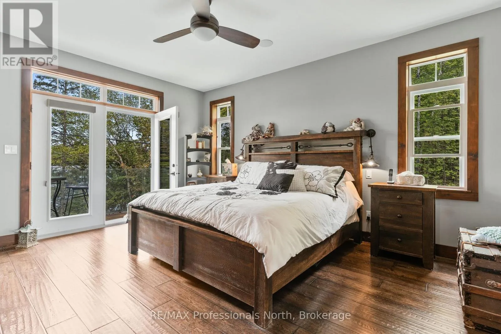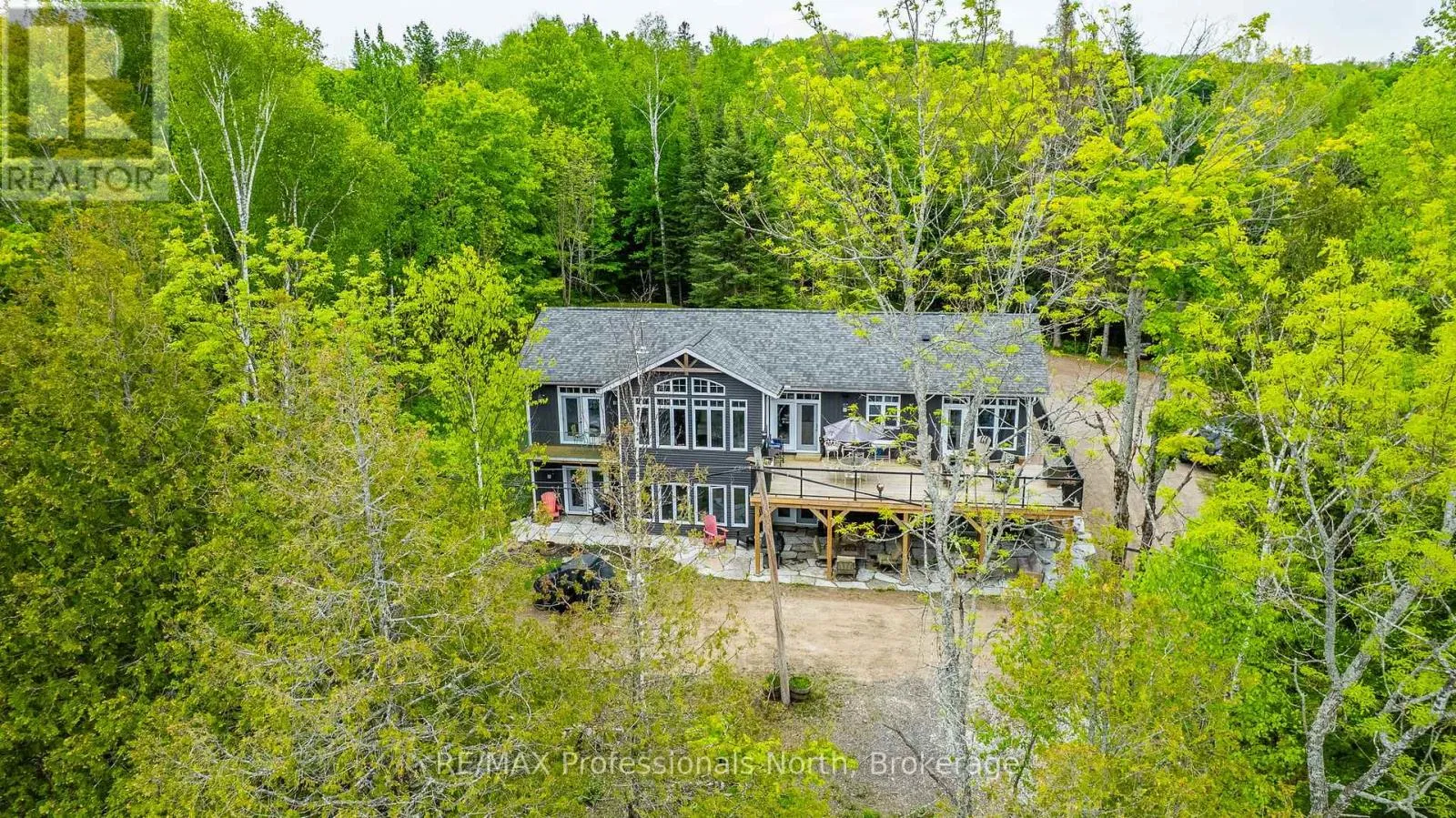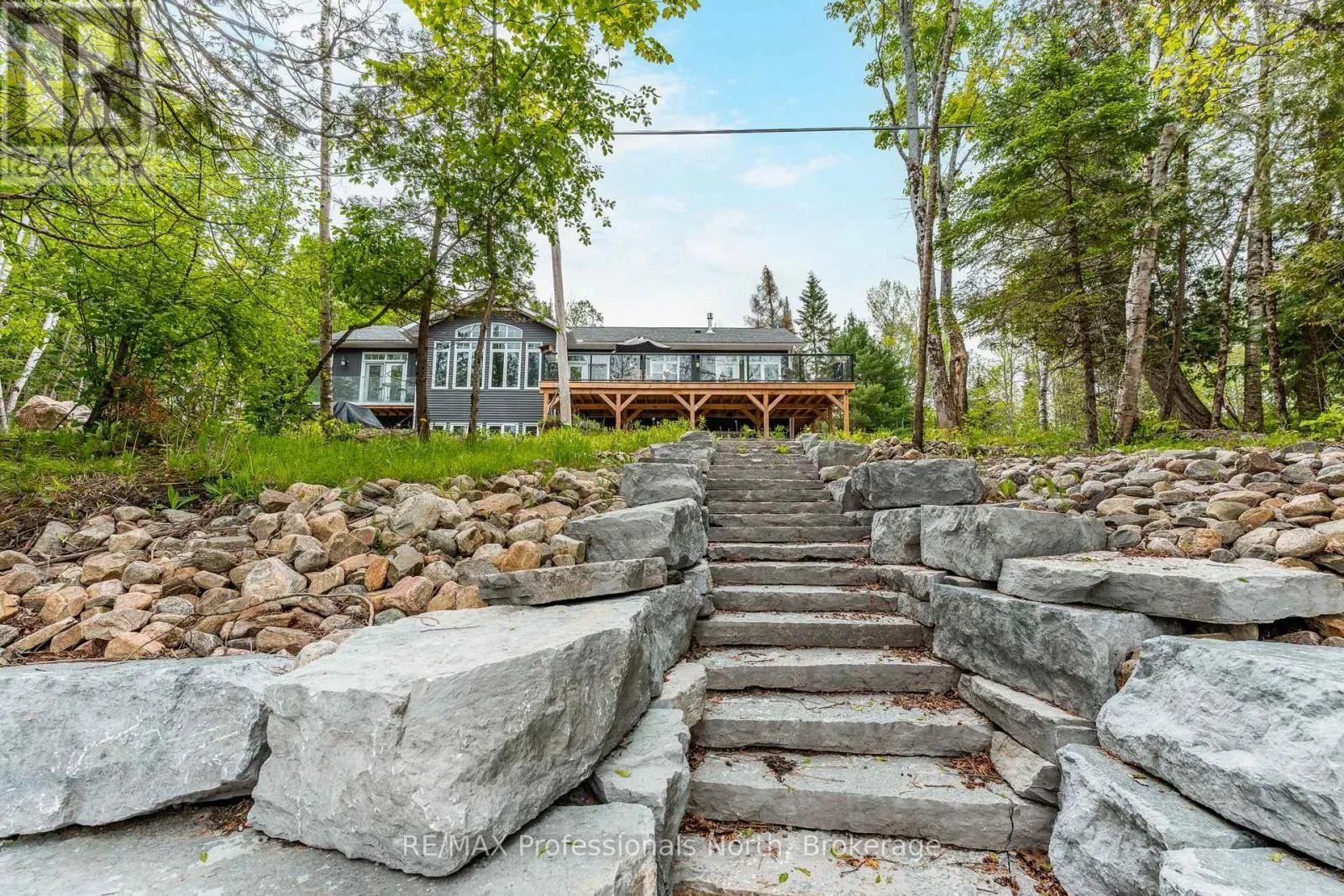 Cross Streets: Hwy. 118. ** Directions: From Haliburton take Hwy. 118 west and turn right onto Kennisis Lake Road (West Guilford) keep right and proceed on to Eagle Lake Road to sign. A must see custom built waterfront home on 3 lake chain: This thoughtfully designed, finished and decorated, 4 Bedrooms/3 bathroom home has 2 stone propane F.P.s/2 laundryrooms/Custom Kitchen/Lower level breakfast nook, upstairs and downstairs master B.R.s w/walk-in closets, ensuites and walk-outs! The MAIN level features custom trim and doors, 9 foot and vaulted pine ceilings. hardwood floors and porcelain flooring! Livingroom, sunroom/den, laundryroom, bathroom, custom kitchen w/island/pantry and master BR/ensuite & walk-in closet complete this stunning main floor. Step outside onto the expansive deck, from sunroom, dining area or master BR which overlooks the lake, and is perfect for hosting large summer events or relaxing as you enjoy the view of Pine Lake. The LOWER level is fully finished, offering recreation room, breakfast area and 4 pce. bath, 3 BRs (2 with walk-outs, 1 with ensuite)with easy access to the landscaped stone patio. The lower level provides a great separate and private area for family or guests. Security system. Central Vac. and speakers strategically located outside and inside for music lovers! Gently sloped lot with 200 feet of frontage and 1.94 acres. The patio and waterfront area is landscaped and stepped with stone to the waterfront area and ready for a dock installation. Propane heating, 2 propane fps up and propane and in-floor heating down. This property is located on a great corridor for people who enjoy walking, jogging or biking and is within walking distance to the community of West Guilford. Golfing minutes away. Haliburton 14 minutes away. Sir Sams skiing close by. A perfect blend of comfort, warmth and taste! (id:27476)