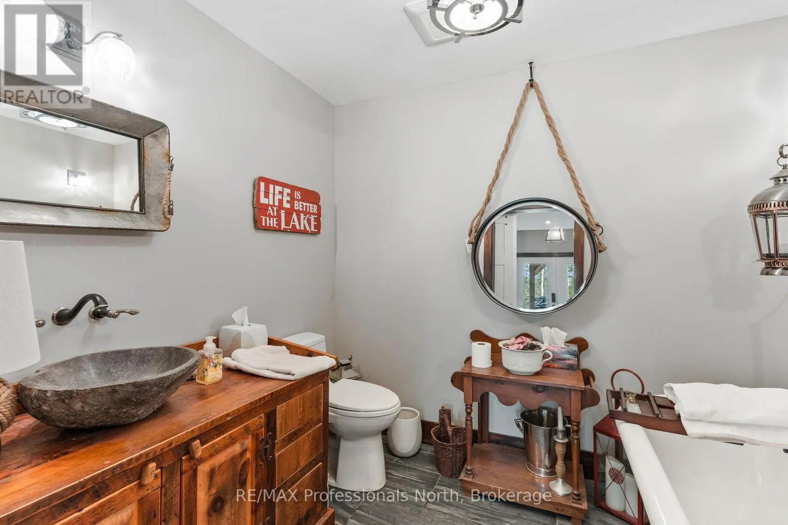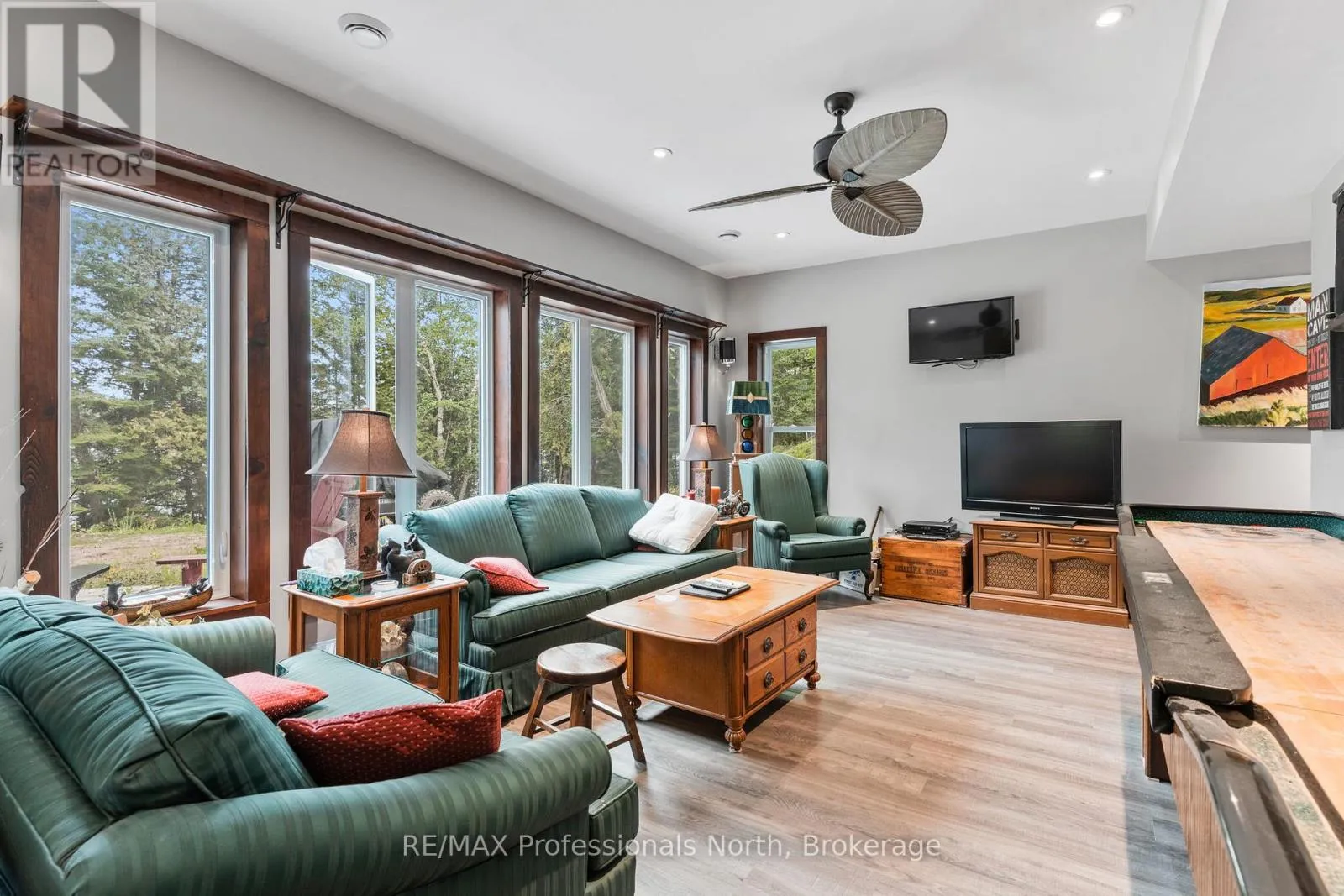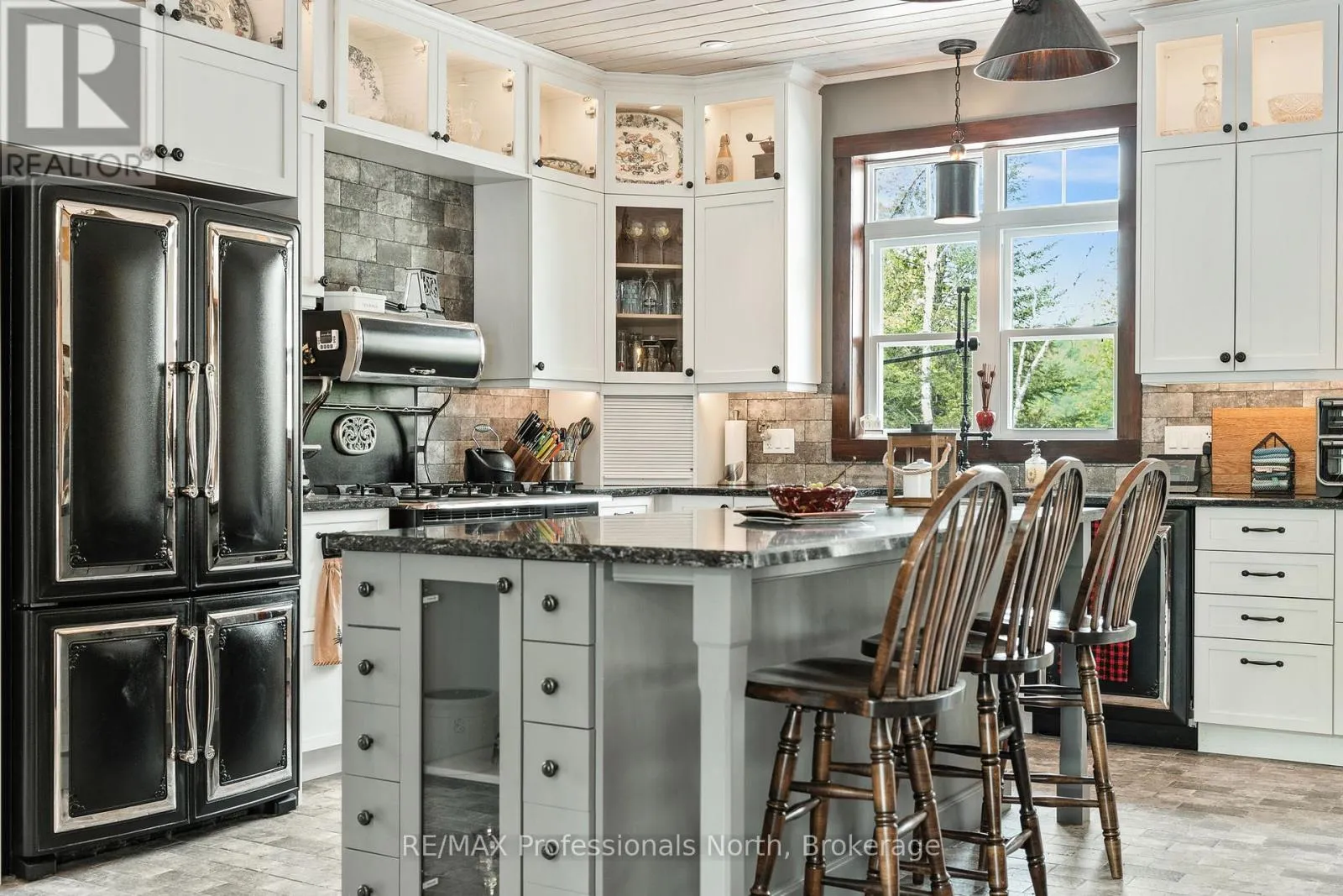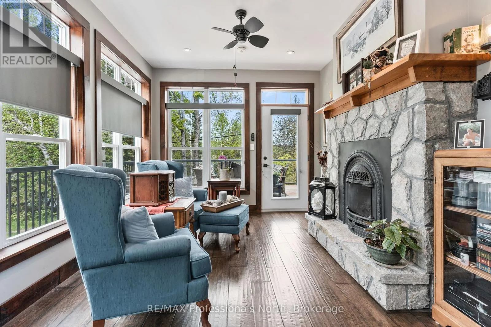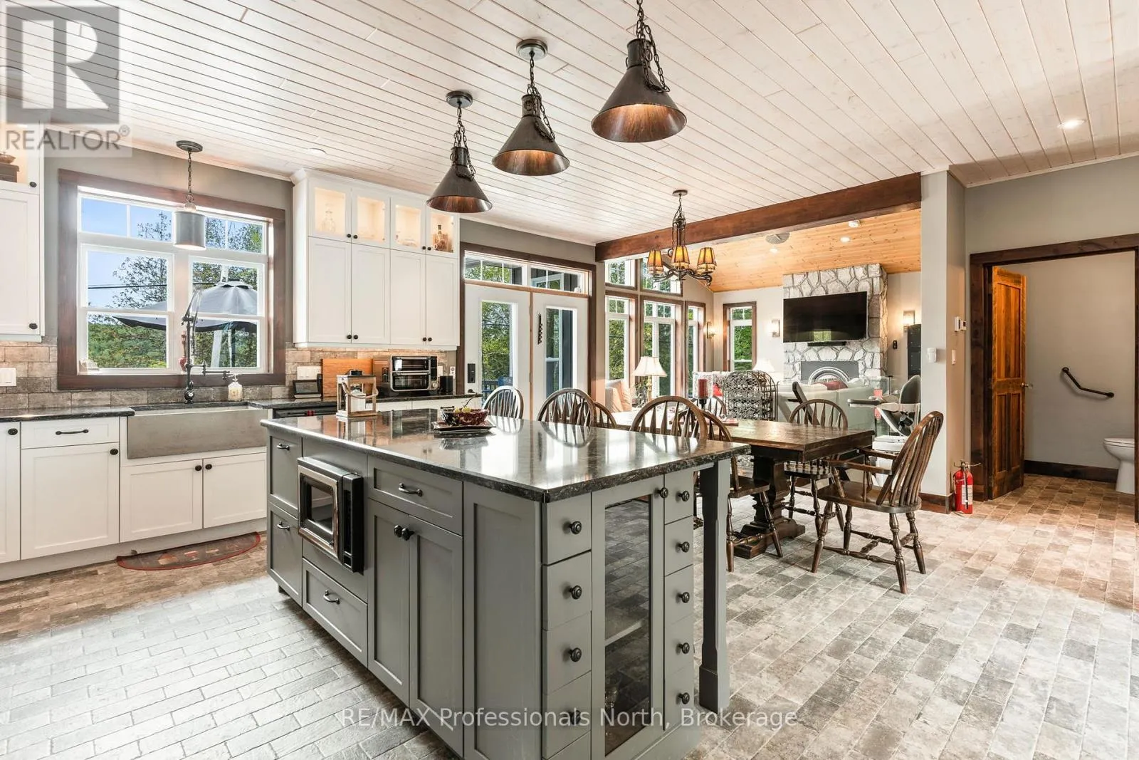 Cross Streets: Hwy. 118. ** Directions: From Haliburton take Hwy. 118 west and turn right onto Kennisis Lake Road (West Guilford) keep right and proceed on to Eagle Lake Road to sign. A must see custom built waterfront home on 3 lake chain: This thoughtfully designed, finished and decorated, 4 Bedrooms/3 bathroom home has 2 stone propane F.P.s/2 laundryrooms/Custom Kitchen/Lower level breakfast nook, upstairs and downstairs master B.R.s w/walk-in closets, ensuites and walk-outs! The MAIN level features custom trim and doors, 9 foot and vaulted pine ceilings. hardwood floors and porcelain flooring! Livingroom, sunroom/den, laundryroom, bathroom, custom kitchen w/island/pantry and master BR/ensuite & walk-in closet complete this stunning main floor. Step outside onto the expansive deck, from sunroom, dining area or master BR which overlooks the lake, and is perfect for hosting large summer events or relaxing as you enjoy the view of Pine Lake. The LOWER level is fully finished, offering recreation room, breakfast area and 4 pce. bath, 3 BRs (2 with walk-outs, 1 with ensuite)with easy access to the landscaped stone patio. The lower level provides a great separate and private area for family or guests. Security system. Central Vac. and speakers strategically located outside and inside for music lovers! Gently sloped lot with 200 feet of frontage and 1.94 acres. The patio and waterfront area is landscaped and stepped with stone to the waterfront area and ready for a dock installation. Propane heating, 2 propane fps up and propane and in-floor heating down. This property is located on a great corridor for people who enjoy walking, jogging or biking and is within walking distance to the community of West Guilford. Golfing minutes away. Haliburton 14 minutes away. Sir Sams skiing close by. A perfect blend of comfort, warmth and taste! (id:27476)