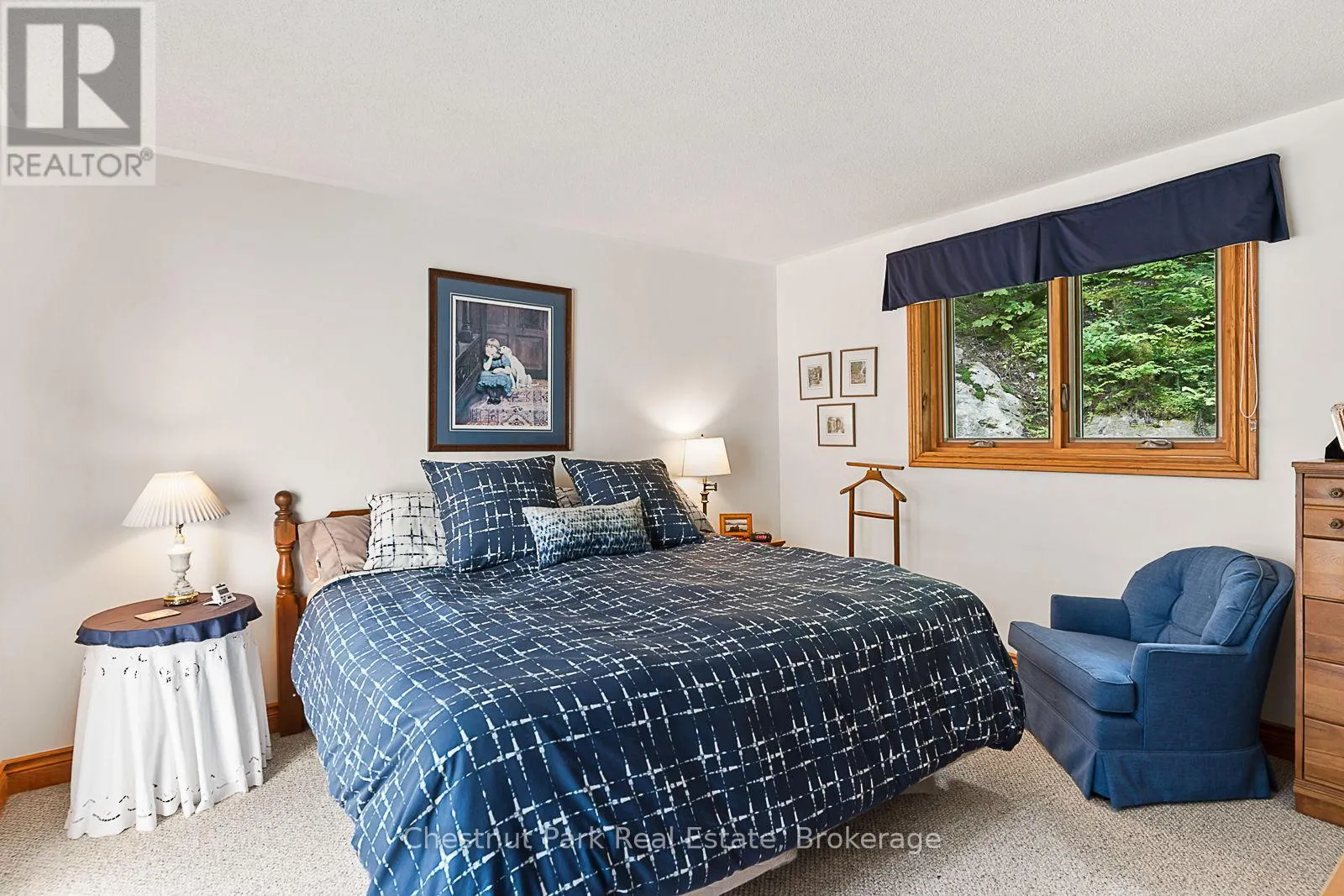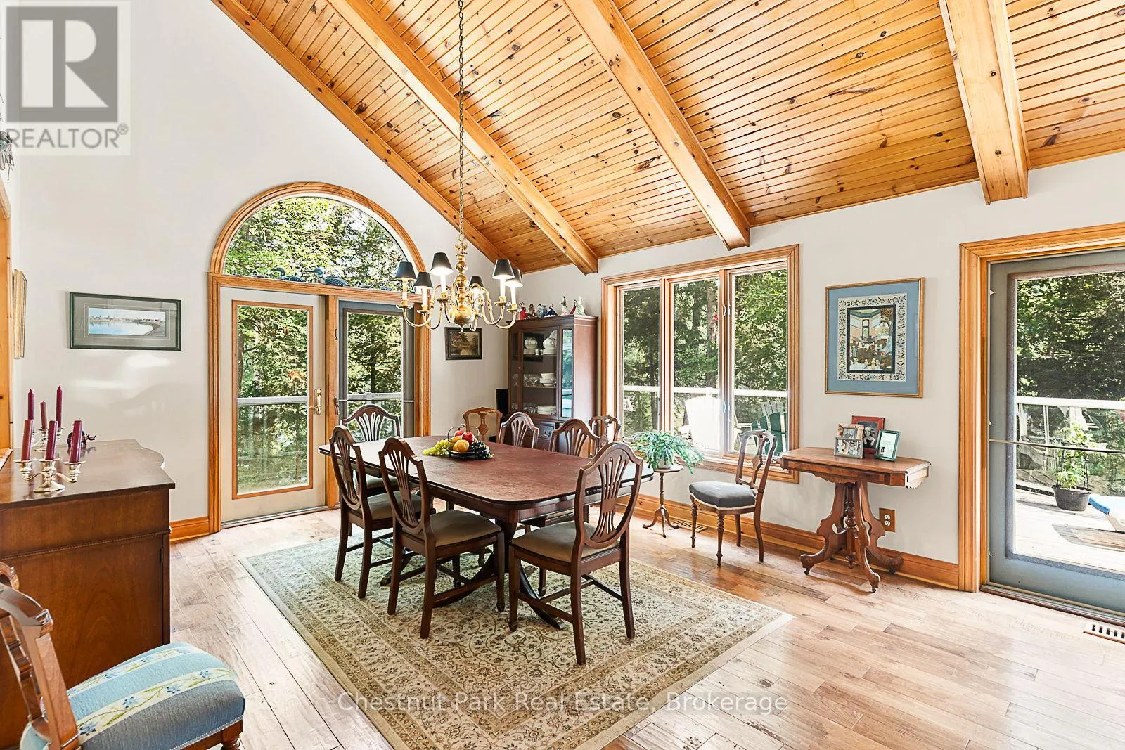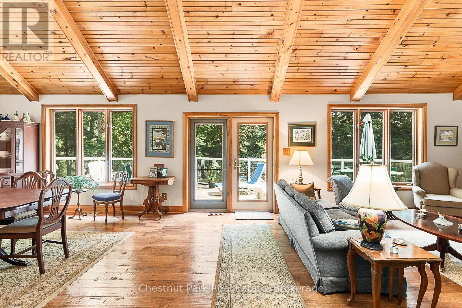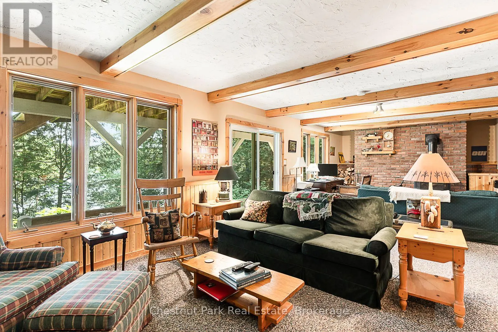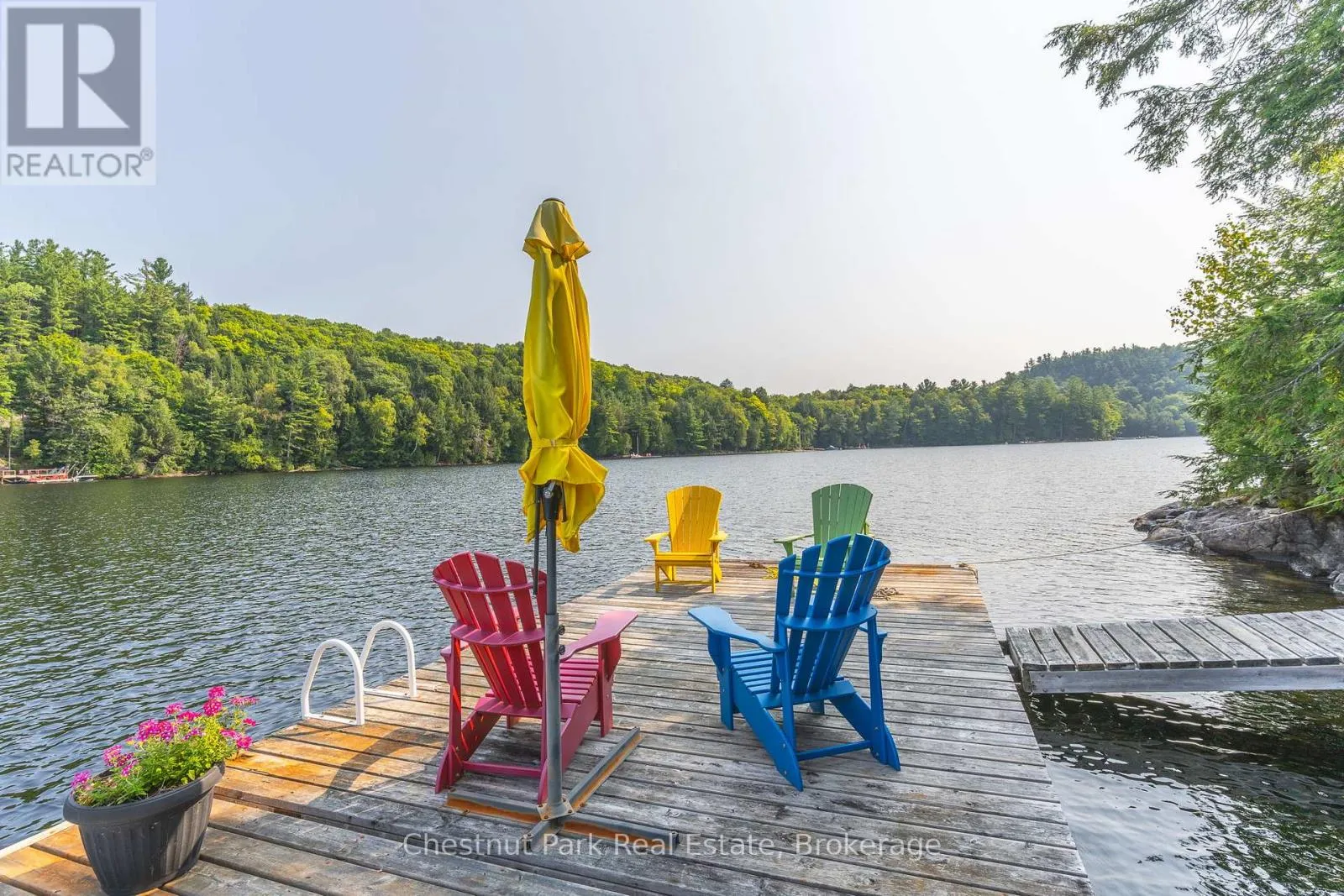 Cross Streets: Kennisis Lk Rd & Bitter Lk Rd. ** Directions: Hwy 118 to Kennisis Lk Rd (CR 7) to Bitter Lk Rd to Picadilly Bay Ln to Arnott Ln. Discover the ultimate private lakeside retreat on prestigious Redstone Lake. Boasting 440 feet of stunning lake frontage on a point lot promises unparalleled privacy and breathtaking views with west, north and east exposures. Discover the perfect blend of comfort and serenity with this exquisite 4-bedroom, 3-bath home or cottage. Step into this 4-season, almost 2980 total sq ft retreat and immediately be drawn to it's thoughtful lay-out and large windows to bring the outdoors in. The spacious entryway is complete with a mud and laundry room combo and opens to the spacious principle rooms with plenty of room for entertaining family and friends. The open concept living and dining areas feature cathedral ceilings, hardwood flooring, lots of windows, 2 walk-outs to a large deck and a stone wood-burning fireplace perfect for those chilly evenings. The large kitchen features plenty of cupboards and granite countertops with direct access to the 4-season sunporch - ideal for enjoying the beauty of every season - and summer sunsets. Completing the main floor is a 3-pce bathroom and the primary bedroom with a walk-in closet and walk-out to a deck overlooking the lake. Head upstairs to 2 more spacious bedrooms and a 4-pce bathroom. The walk-out lower level features the 4th bedroom, a 3-pce bathroom, a large rec room with a propane fireplace, a cozy tv area, and the utility room. Includes a drilled well, back-up generator, and central vac system. An over-sized double garage is perfect for storing the toys while the loft above with a composting toilet provides endless possibilities. Spend your days enjoying your private terrain with some grassy play areas and the shoreline with clean, deep water off the dock. The property has a level driveway and is conveniently located on a private year-round road, ensuring easy access no matter the season. Embrace the tranquility of cottage country with this exceptional home. Your private retreat awaits! (id:27476)