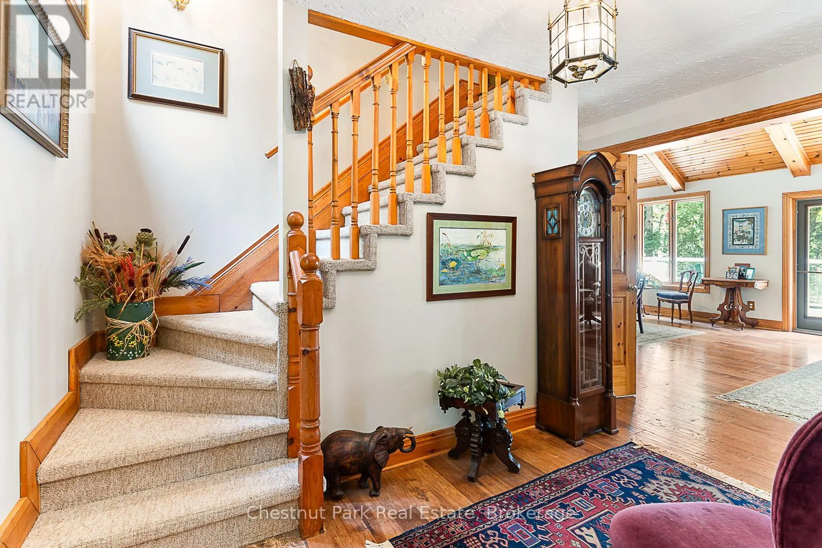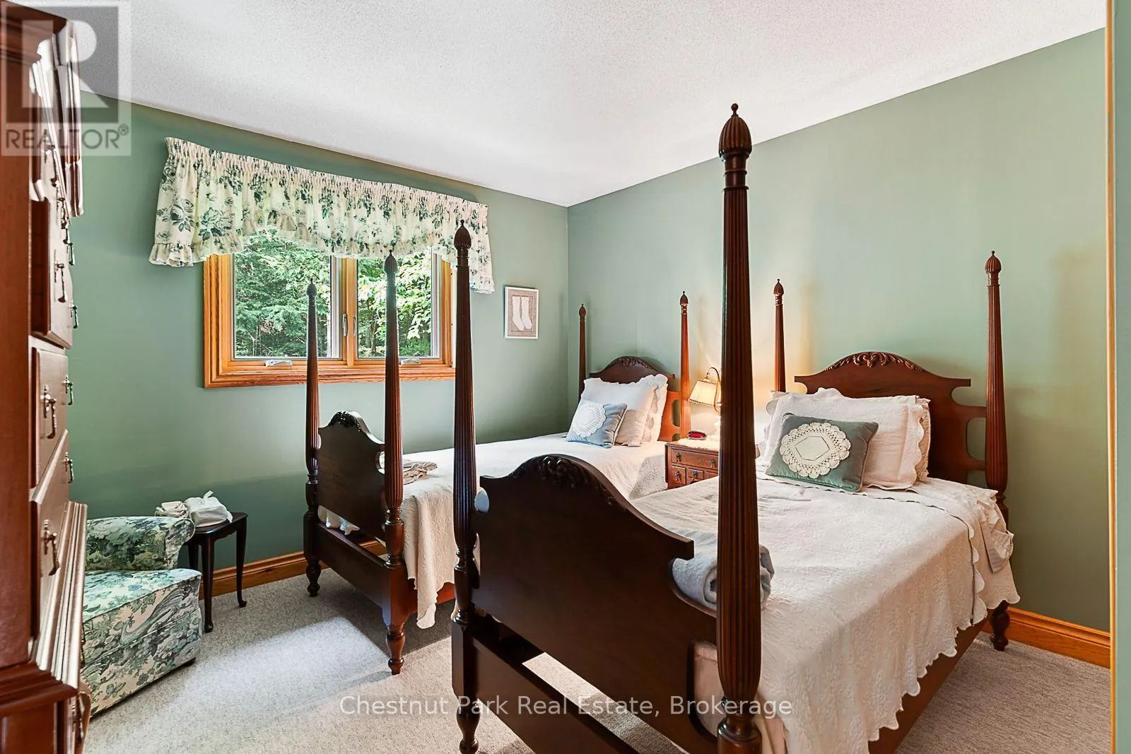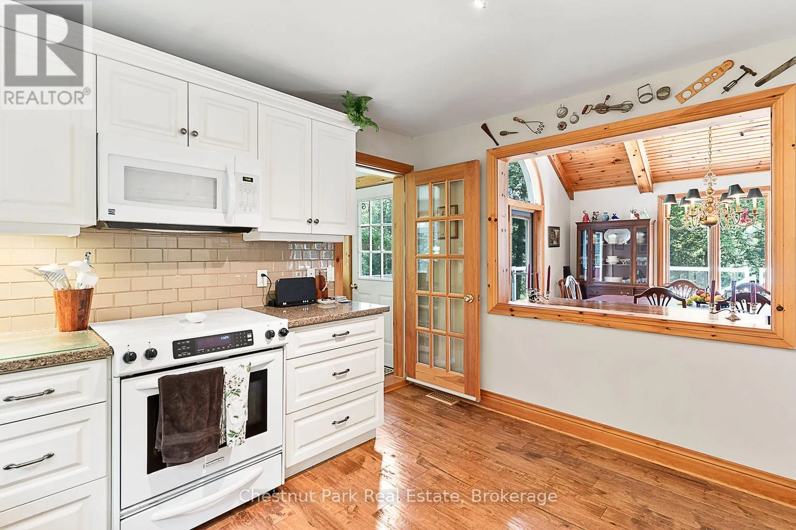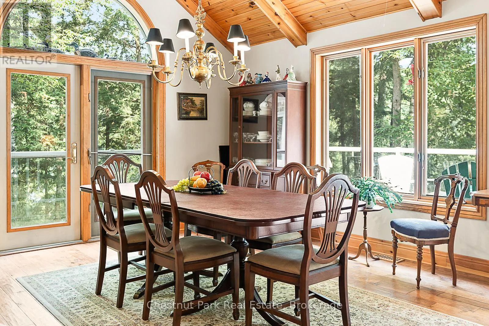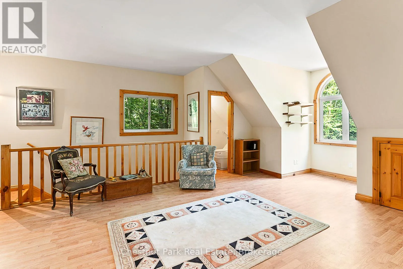 Cross Streets: Kennisis Lk Rd & Bitter Lk Rd. ** Directions: Hwy 118 to Kennisis Lk Rd (CR 7) to Bitter Lk Rd to Picadilly Bay Ln to Arnott Ln. Discover the ultimate private lakeside retreat on prestigious Redstone Lake. Boasting 440 feet of stunning lake frontage on a point lot promises unparalleled privacy and breathtaking views with west, north and east exposures. Discover the perfect blend of comfort and serenity with this exquisite 4-bedroom, 3-bath home or cottage. Step into this 4-season, almost 2980 total sq ft retreat and immediately be drawn to it's thoughtful lay-out and large windows to bring the outdoors in. The spacious entryway is complete with a mud and laundry room combo and opens to the spacious principle rooms with plenty of room for entertaining family and friends. The open concept living and dining areas feature cathedral ceilings, hardwood flooring, lots of windows, 2 walk-outs to a large deck and a stone wood-burning fireplace perfect for those chilly evenings. The large kitchen features plenty of cupboards and granite countertops with direct access to the 4-season sunporch - ideal for enjoying the beauty of every season - and summer sunsets. Completing the main floor is a 3-pce bathroom and the primary bedroom with a walk-in closet and walk-out to a deck overlooking the lake. Head upstairs to 2 more spacious bedrooms and a 4-pce bathroom. The walk-out lower level features the 4th bedroom, a 3-pce bathroom, a large rec room with a propane fireplace, a cozy tv area, and the utility room. Includes a drilled well, back-up generator, and central vac system. An over-sized double garage is perfect for storing the toys while the loft above with a composting toilet provides endless possibilities. Spend your days enjoying your private terrain with some grassy play areas and the shoreline with clean, deep water off the dock. The property has a level driveway and is conveniently located on a private year-round road, ensuring easy access no matter the season. Embrace the tranquility of cottage country with this exceptional home. Your private retreat awaits! (id:27476)