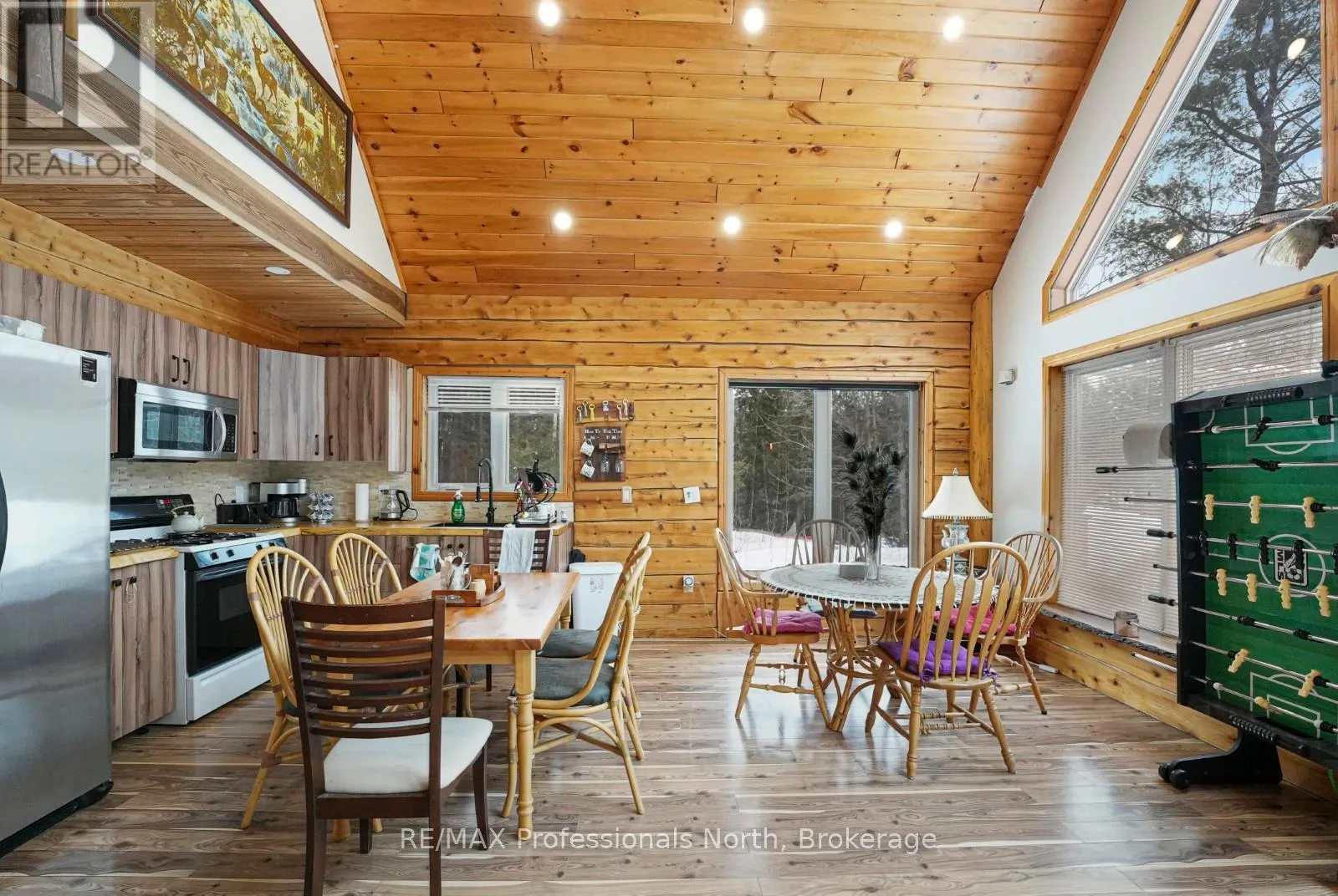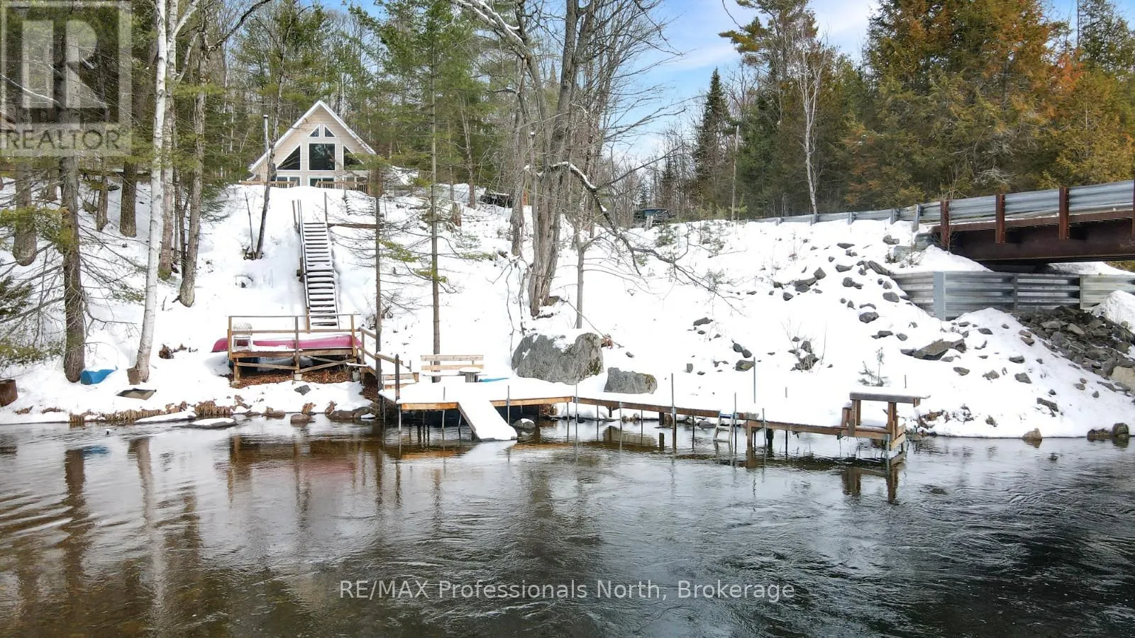 ON-118 to Kennisis Lake Road to Eagle Lake Road to Cranberry lake road. First property on left after the bridge. Beautiful custom-built four-season cottage/home featuring a warm rustic pine interior and over 1,200 sq ft of fully winterized living space. Situated on over 1 acre of land, the property offers ample room for future development, including the potential to build a second structure. The building permit is closed. This south-facing waterfront property boasts 255 ft of shoreline on the Gull River at Cranberry Lake, offering exceptional privacy, tranquility, and stunning natural views. Inside, you'll find 22-ft cathedral pine ceilings, large triple-pane windows, and an Enerzone high-efficiency wood-burning fireplace, which serves as the heart of the living space, providing warmth and a classic wood-heating experience. The modern kitchen features a live-edge maple countertop, and all major appliances are included. Step outside to a large deck with river views, connected to an above-ground pool, perfect for entertaining. A newly built gazebo over the river, complete with a table and central fire pit, creates an ideal gathering space for family and friends in both summer and winter. Enjoy swimming and fishing from the large dock with a diving board, located beside deep water. Additional features include :New deep-drilled well, Secondary pump system using river water for landscaping/outdoor use, Year-round Township road access and Bell FIBE high-speed internet. Prime location! 8 minutes to Sir Sam's Ski Resort, 10 minutes to Haliburton village, Two grocery stores within 5 minutes and close to ATV and snowmobile trails. All this, less than 2.5 hours north of Toronto. (id:27476)