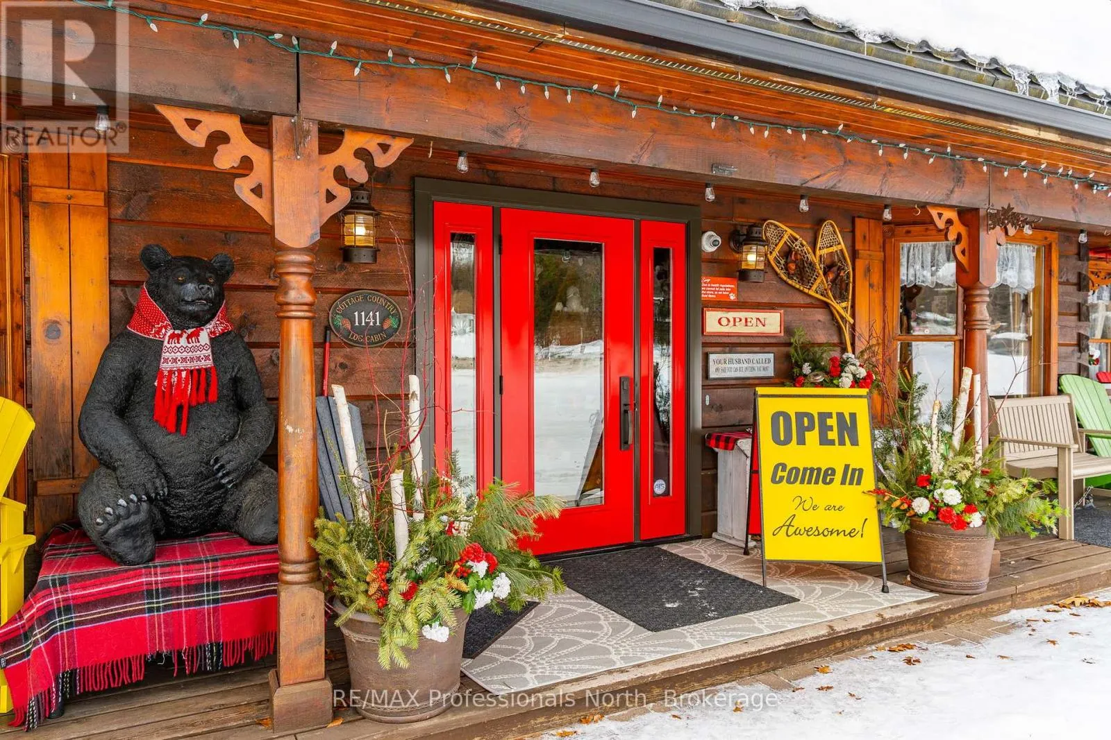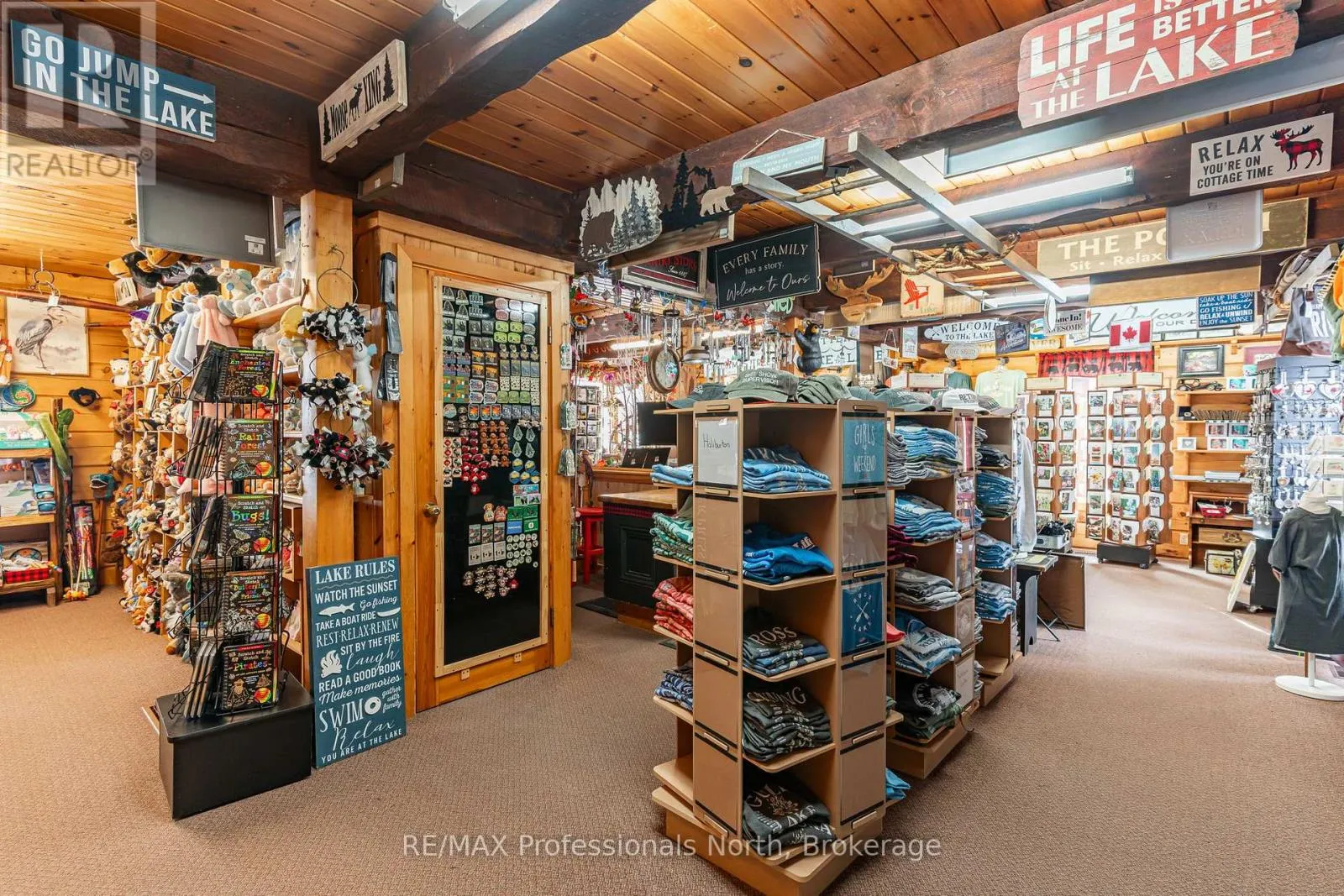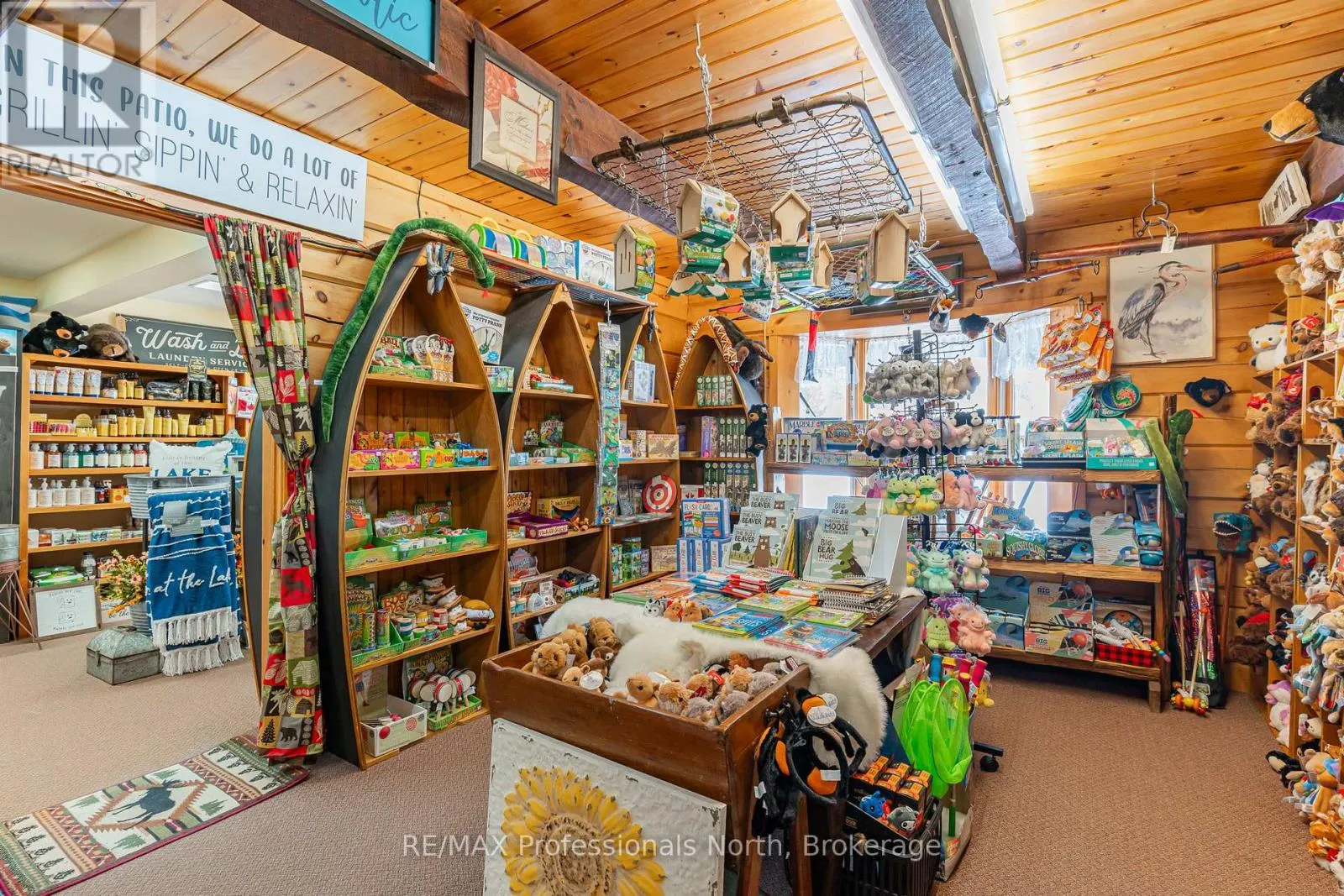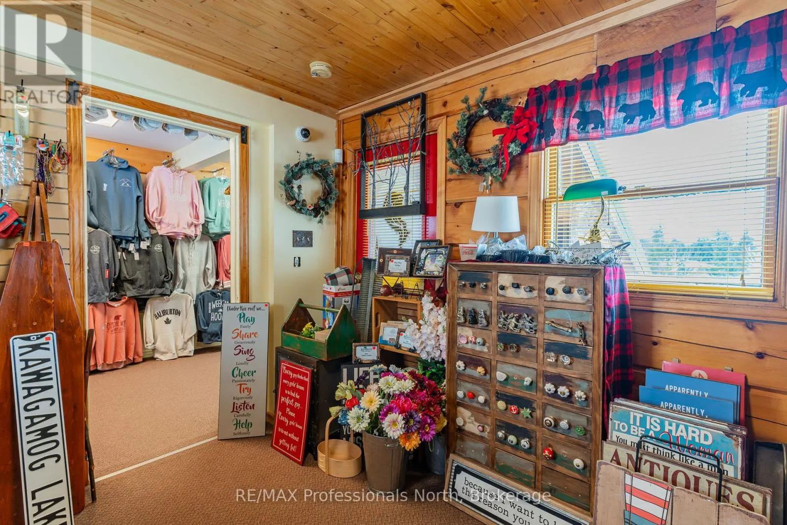 Cross Streets: Suburban. ** Directions: Hwy 118 to Kennisis Lake Road. Let your imagination run wild with this iconic building set in the heart of West Guilford - this is the perfect location for your dream business! Visitors and locals alike know this special building with excellent roadside exposure. Zoned CH (Commercial Highway), this property offers a myriad of uses and provides high visibility on a main artery through cottage country. Just a few suggestions for this versatile property - Restaurant, Marine Sales, Landscaping, and more. A beautiful quality log building offers 5,520 sq. ft. split over 3 levels. The main level is currently used as a store with a large living area upstairs that provides 2 bedrooms, full kitchen/eating room, washroom, living area, walkout to a deck, sunroom, additional office or entertainment space, and more. The lower level provides 1,758 sq. ft. of undeveloped space with a walkout to the back parking lot for deliveries. The building has been extremely well maintained with a newer metal roof, a great deck out the back (perfect for that Cafe or Restaurant), full security system, and so much more. A secondary driveway behind the building has a storage area, and gives parking for staff and room for big deliveries. All of this sits on an expansive 1.23 acre lot that is lovingly manicured and offers expansion options. Driving through West Guilford, you cannot miss it, and neither can the thousands of cottagers heading to the cottage and local residents! (id:27476)