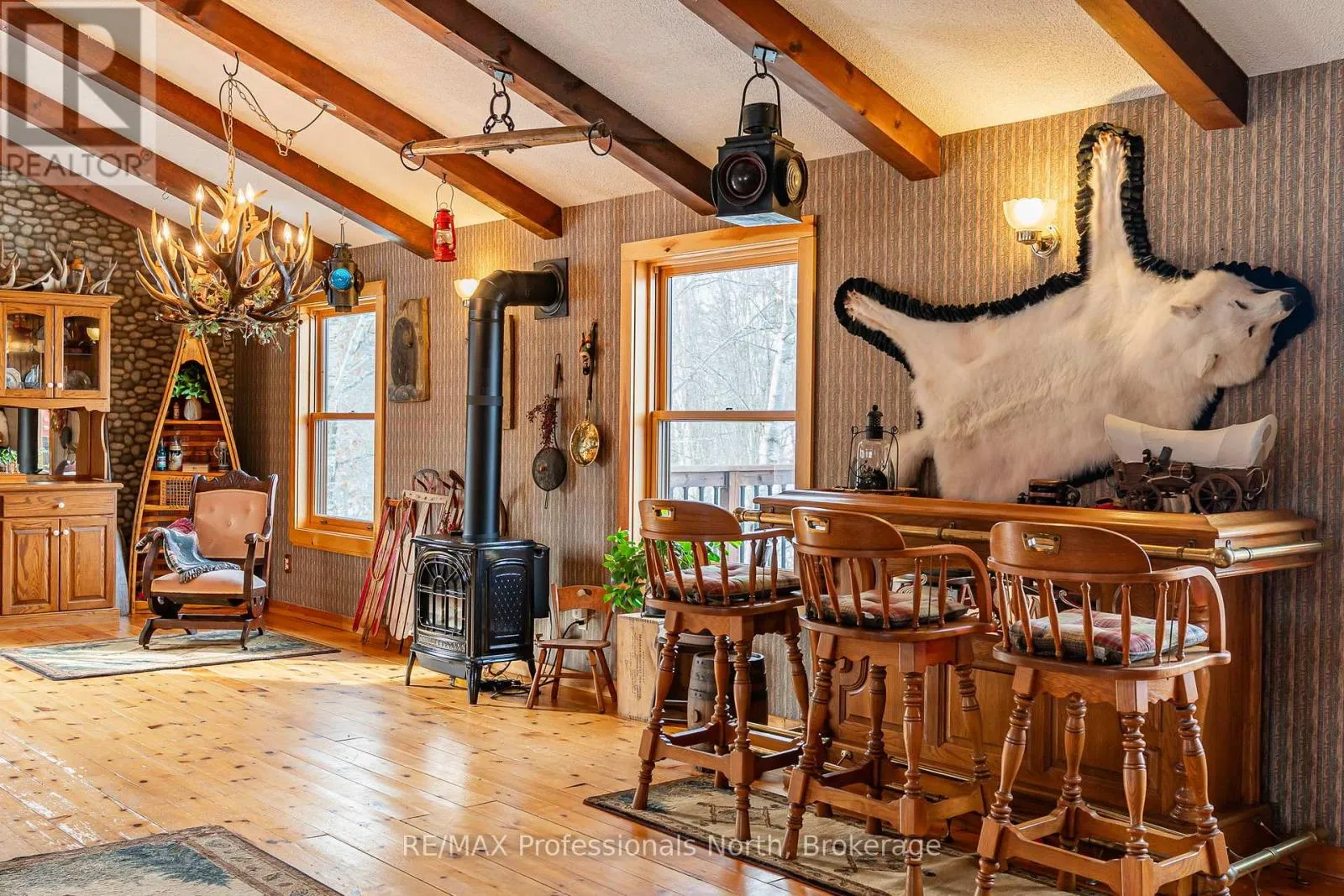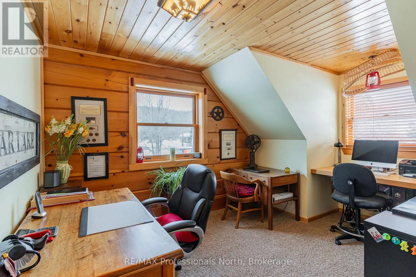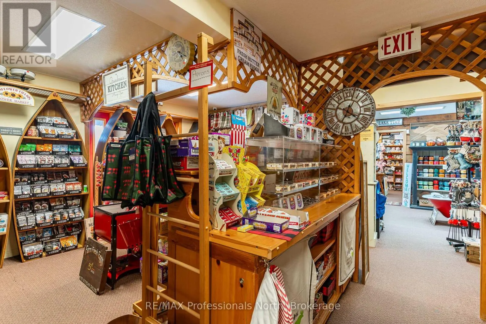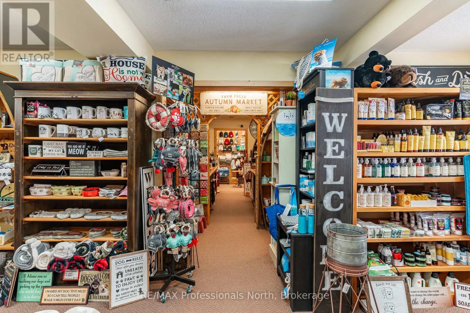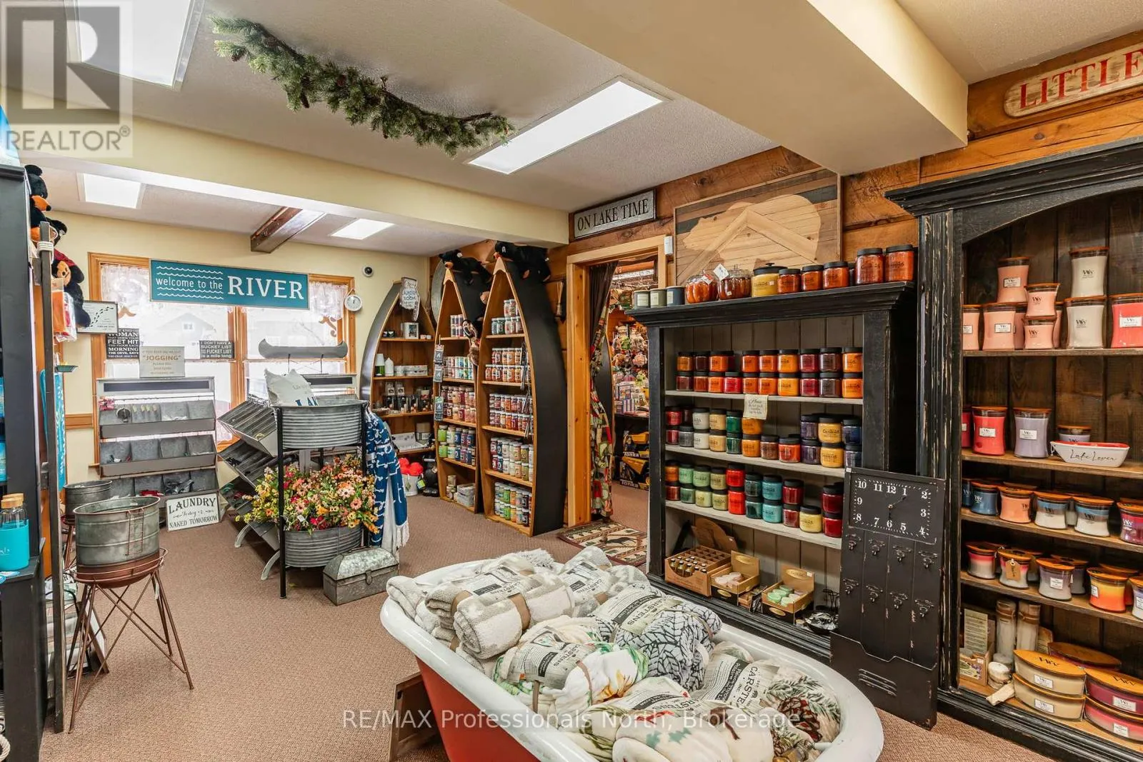 Cross Streets: Suburban. ** Directions: Hwy 118 to Kennisis Lake Road. Let your imagination run wild with this iconic building set in the heart of West Guilford - this is the perfect location for your dream business! Visitors and locals alike know this special building with excellent roadside exposure. Zoned CH (Commercial Highway), this property offers a myriad of uses and provides high visibility on a main artery through cottage country. Just a few suggestions for this versatile property - Restaurant, Marine Sales, Landscaping, and more. A beautiful quality log building offers 5,520 sq. ft. split over 3 levels. The main level is currently used as a store with a large living area upstairs that provides 2 bedrooms, full kitchen/eating room, washroom, living area, walkout to a deck, sunroom, additional office or entertainment space, and more. The lower level provides 1,758 sq. ft. of undeveloped space with a walkout to the back parking lot for deliveries. The building has been extremely well maintained with a newer metal roof, a great deck out the back (perfect for that Cafe or Restaurant), full security system, and so much more. A secondary driveway behind the building has a storage area, and gives parking for staff and room for big deliveries. All of this sits on an expansive 1.23 acre lot that is lovingly manicured and offers expansion options. Driving through West Guilford, you cannot miss it, and neither can the thousands of cottagers heading to the cottage and local residents! (id:27476)