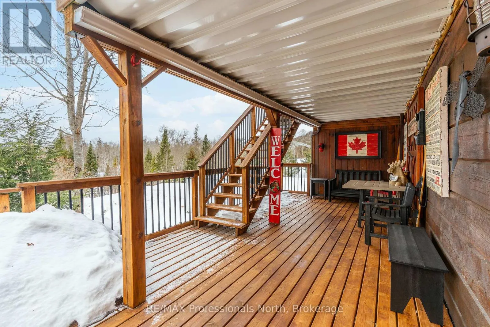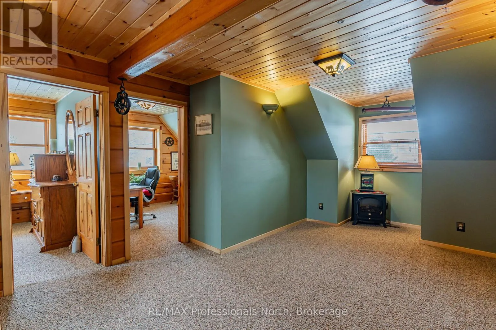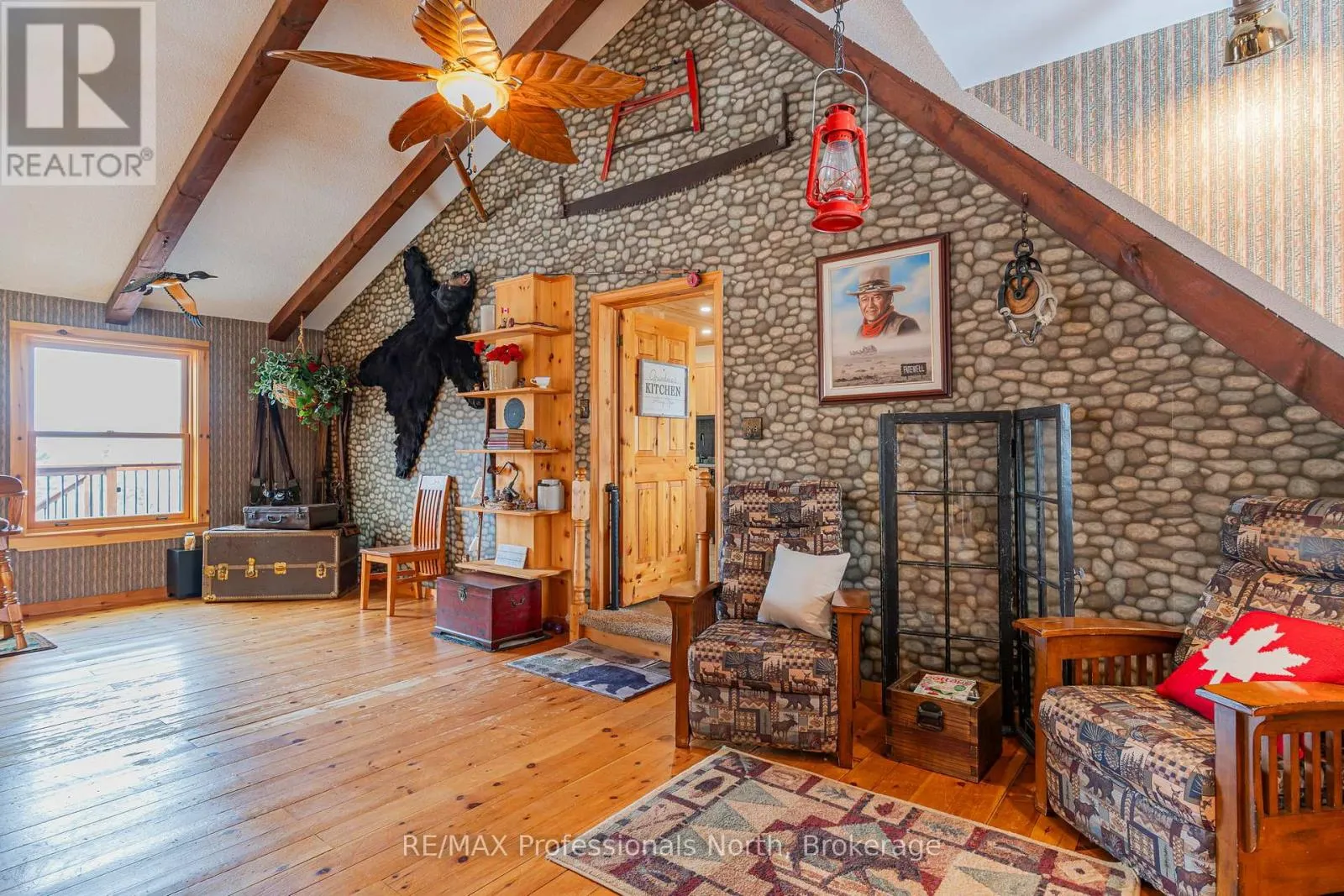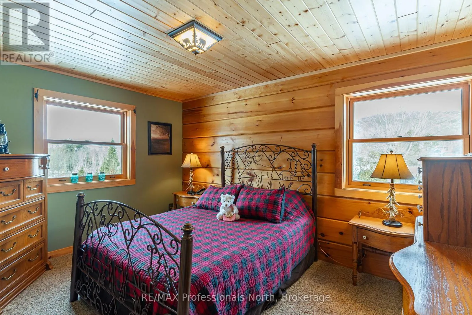 Cross Streets: Suburban. ** Directions: Hwy 118 to Kennisis Lake Road. Let your imagination run wild with this iconic building set in the heart of West Guilford - this is the perfect location for your dream business! Visitors and locals alike know this special building with excellent roadside exposure. Zoned CH (Commercial Highway), this property offers a myriad of uses and provides high visibility on a main artery through cottage country. Just a few suggestions for this versatile property - Restaurant, Marine Sales, Landscaping, and more. A beautiful quality log building offers 5,520 sq. ft. split over 3 levels. The main level is currently used as a store with a large living area upstairs that provides 2 bedrooms, full kitchen/eating room, washroom, living area, walkout to a deck, sunroom, additional office or entertainment space, and more. The lower level provides 1,758 sq. ft. of undeveloped space with a walkout to the back parking lot for deliveries. The building has been extremely well maintained with a newer metal roof, a great deck out the back (perfect for that Cafe or Restaurant), full security system, and so much more. A secondary driveway behind the building has a storage area, and gives parking for staff and room for big deliveries. All of this sits on an expansive 1.23 acre lot that is lovingly manicured and offers expansion options. Driving through West Guilford, you cannot miss it, and neither can the thousands of cottagers heading to the cottage and local residents! (id:27476)