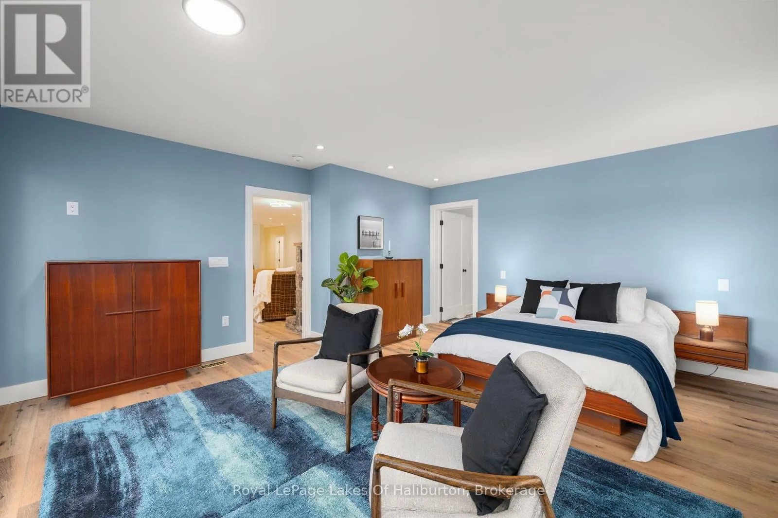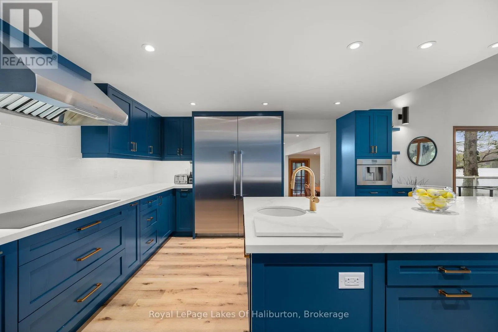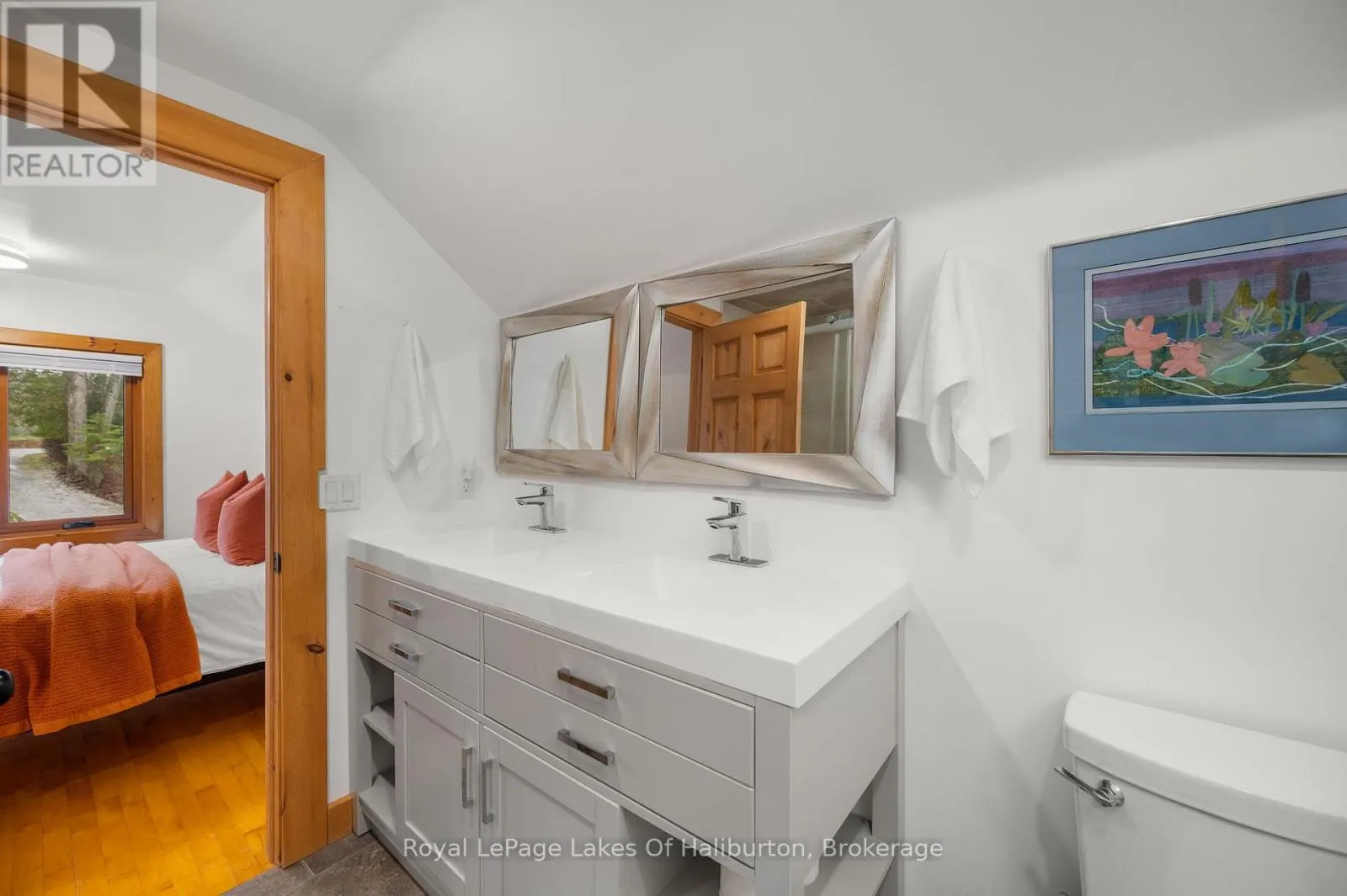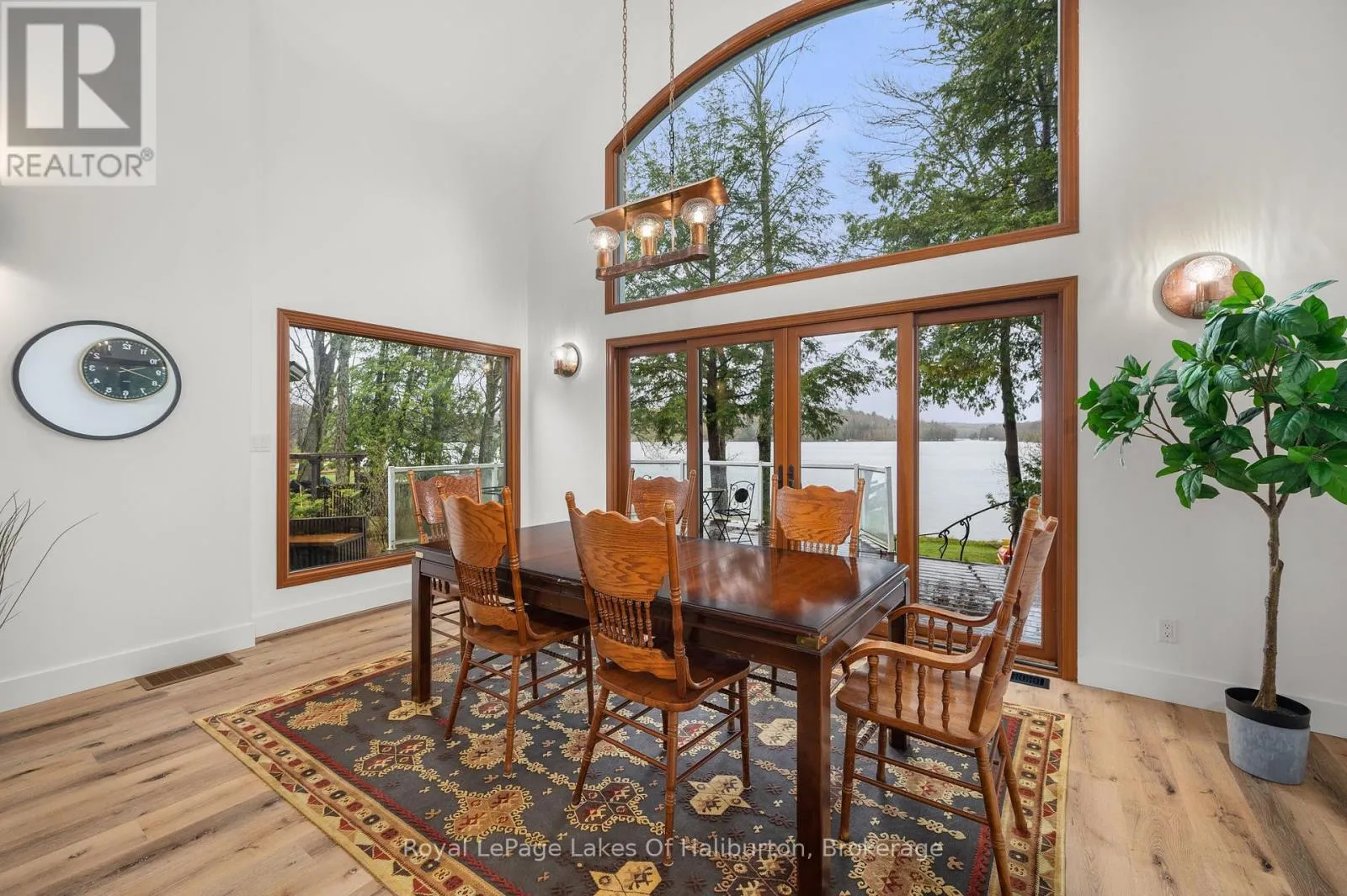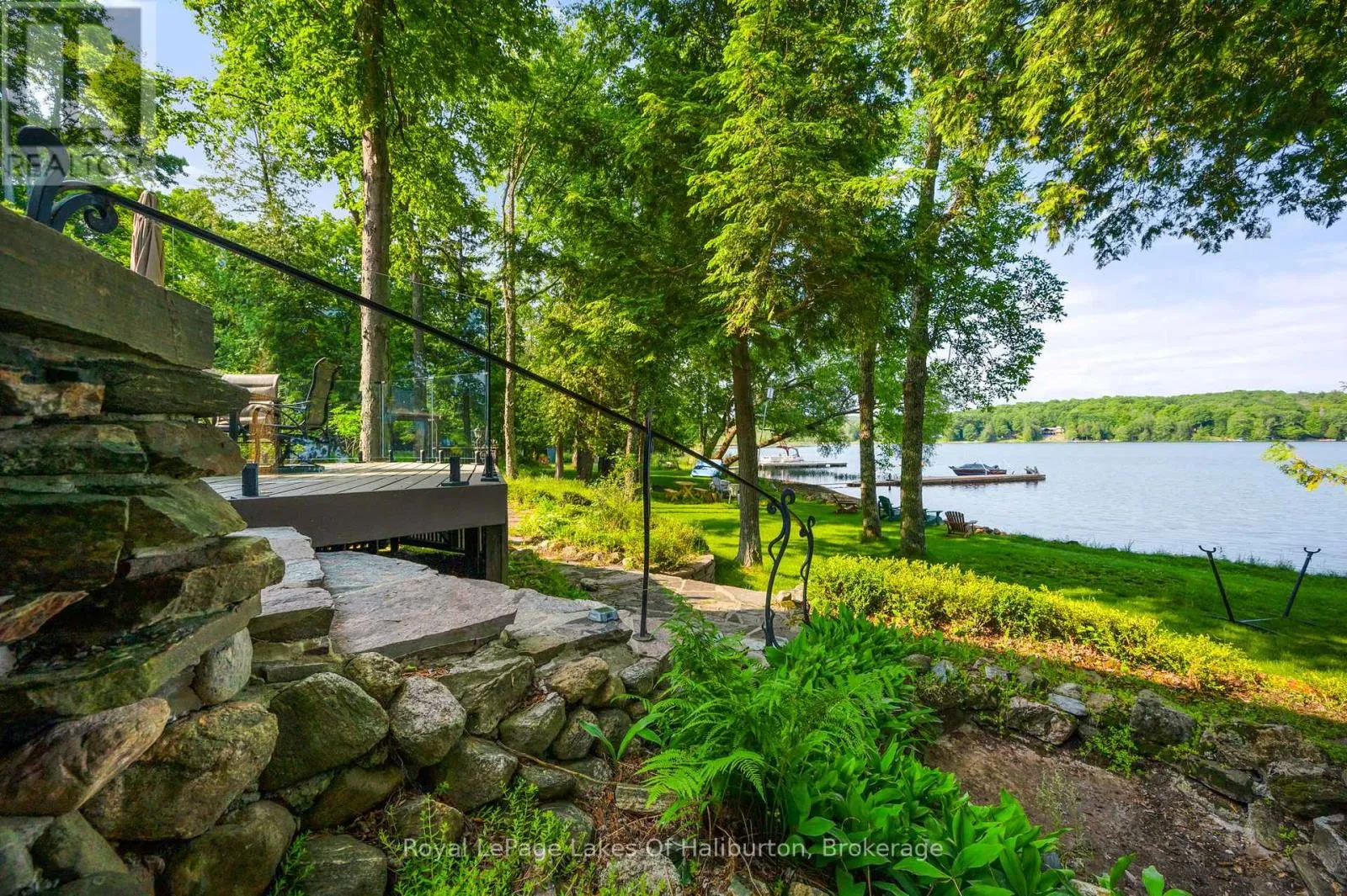 Cross Streets: Gelert Road and Grass Lake Road. ** Directions: Gelert Rd to Grass Lake Rd. The Ultimate Lakefront Lifestyle in the Haliburton Highlands - Experience year-round luxury in this elegant 4-bedroom, 4-bathroom executive lake house, perfectly situated in the Haliburton Highlands. This home is located on a rare double level lot with 175 ft of sandy lake frontage on the scenic Kashagawigamog five-lake chain, which allows you to boat directly into Haliburton and other various points of interest. Enjoy sought-after western exposure for spectacular, all-season sunsets. The home is an unbeatable blend of modern executive living and timeless charm, upon entry through a custom antique wood door, you're greeted by a breathtaking wall of windows that frame the unobstructed waterfront view. The open-concept living space features a cozy stone wood-burning fireplace, sitting area and breakfast nook with walkout to lakeside decking. The gourmet kitchen is a chef's dream, featuring $100K in high-end Thermador stainless steel appliances, including a wine fridge, an oversized sit-up center island, and dual deep sinks the open concept dining room has a cathedral ceiling and a walkout to the glass-paneled lakeside deck. The luxurious main-floor master bedroom is a private haven, offering a walkout to a lakeside deck, a massive walk-in closet, and a stunning 5-piece ensuite with a soaker tub, & glass shower with seat. A second main-floor bedroom with a 3-piece ensuite providing convenience, while two spacious upper-level bedrooms and 5 piece bathroom ensure comfort for family and guests. Listing includes adjacent separately deeded waterfront vacant lot to build a completely separate dwelling, would make for an ideal family compound . Seize the opportunity to own this extraordinary property, offering luxury, charm, privacy, and nature's beauty in a prime Highlands location all with having the unique advantage of being within walking distance to town, the hospital, medical center, and all local amenities. (id:27476)