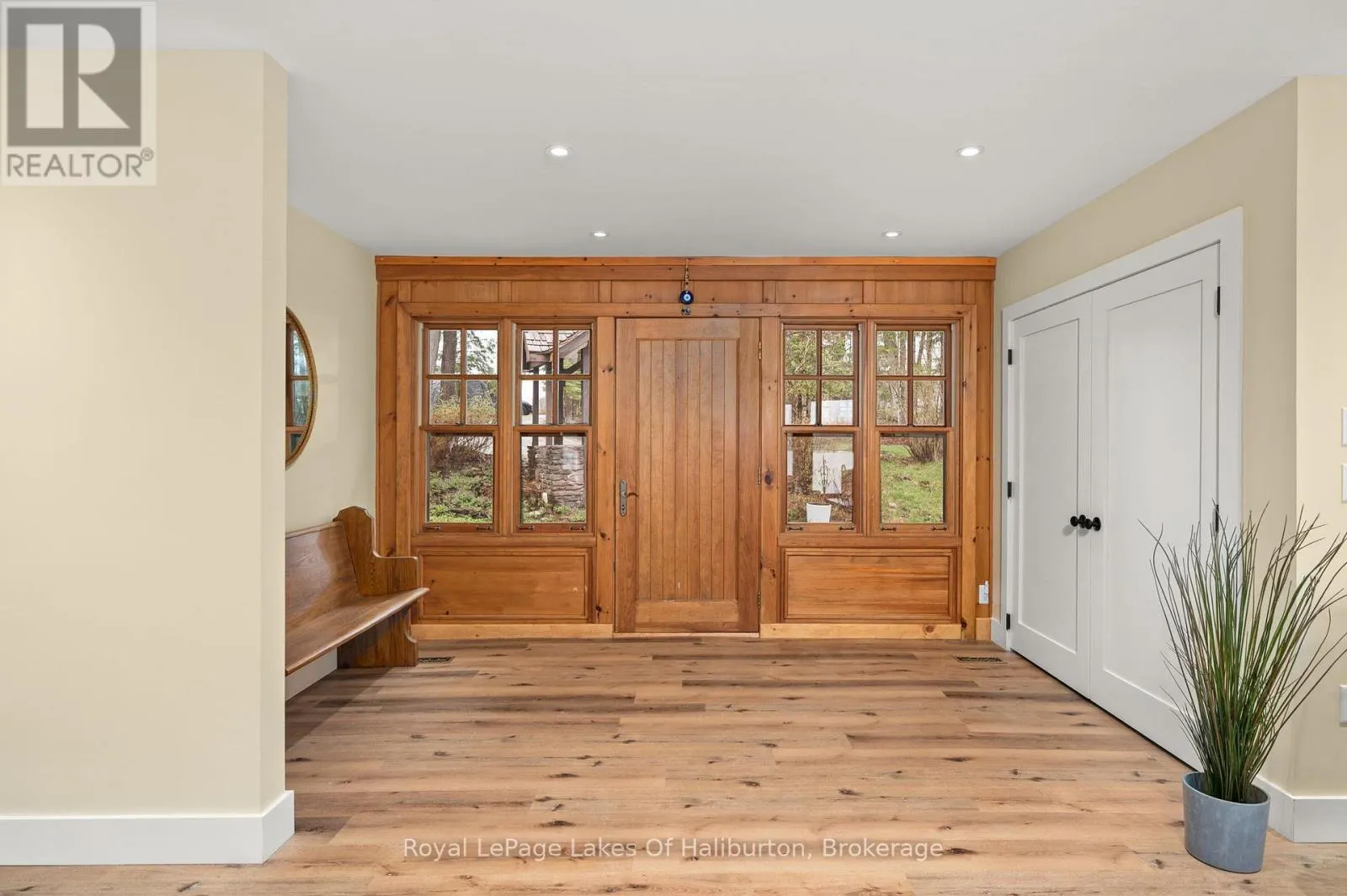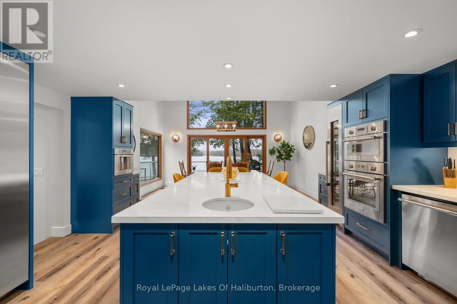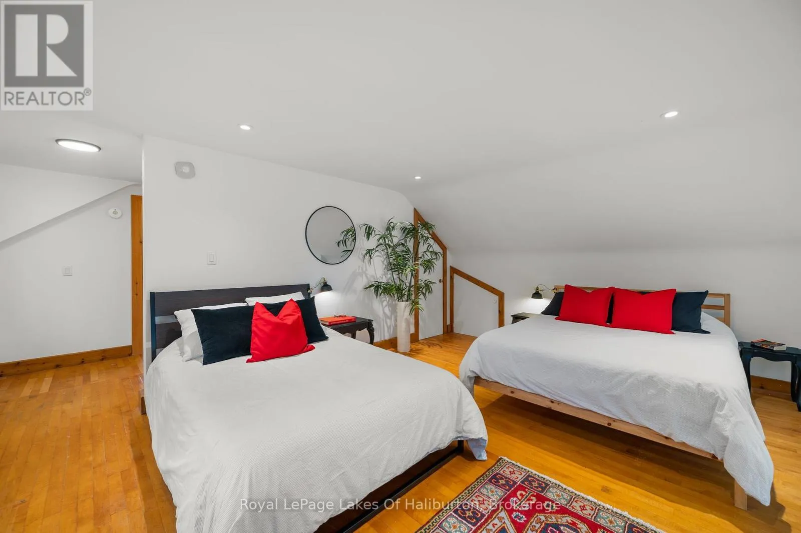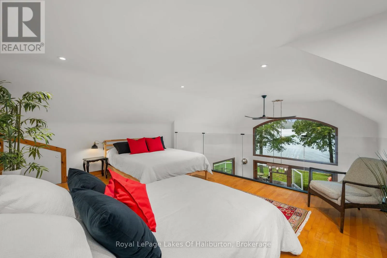 Cross Streets: Gelert Road and Grass Lake Road. ** Directions: Gelert Rd to Grass Lake Rd. The Ultimate Lakefront Lifestyle in the Haliburton Highlands - Experience year-round luxury in this elegant 4-bedroom, 4-bathroom executive lake house, perfectly situated in the Haliburton Highlands. This home is located on a rare double level lot with 175 ft of sandy lake frontage on the scenic Kashagawigamog five-lake chain, which allows you to boat directly into Haliburton and other various points of interest. Enjoy sought-after western exposure for spectacular, all-season sunsets. The home is an unbeatable blend of modern executive living and timeless charm, upon entry through a custom antique wood door, you're greeted by a breathtaking wall of windows that frame the unobstructed waterfront view. The open-concept living space features a cozy stone wood-burning fireplace, sitting area and breakfast nook with walkout to lakeside decking. The gourmet kitchen is a chef's dream, featuring $100K in high-end Thermador stainless steel appliances, including a wine fridge, an oversized sit-up center island, and dual deep sinks the open concept dining room has a cathedral ceiling and a walkout to the glass-paneled lakeside deck. The luxurious main-floor master bedroom is a private haven, offering a walkout to a lakeside deck, a massive walk-in closet, and a stunning 5-piece ensuite with a soaker tub, & glass shower with seat. A second main-floor bedroom with a 3-piece ensuite providing convenience, while two spacious upper-level bedrooms and 5 piece bathroom ensure comfort for family and guests. Listing includes adjacent separately deeded waterfront vacant lot to build a completely separate dwelling, would make for an ideal family compound . Seize the opportunity to own this extraordinary property, offering luxury, charm, privacy, and nature's beauty in a prime Highlands location all with having the unique advantage of being within walking distance to town, the hospital, medical center, and all local amenities. (id:27476)