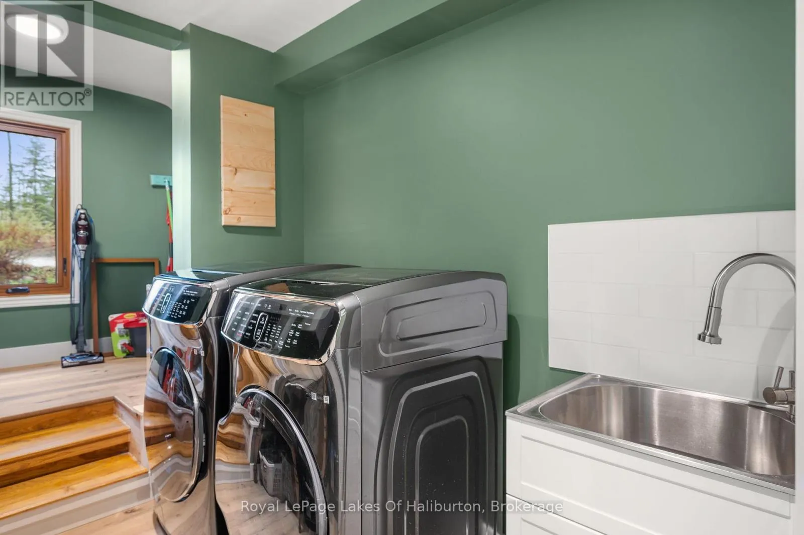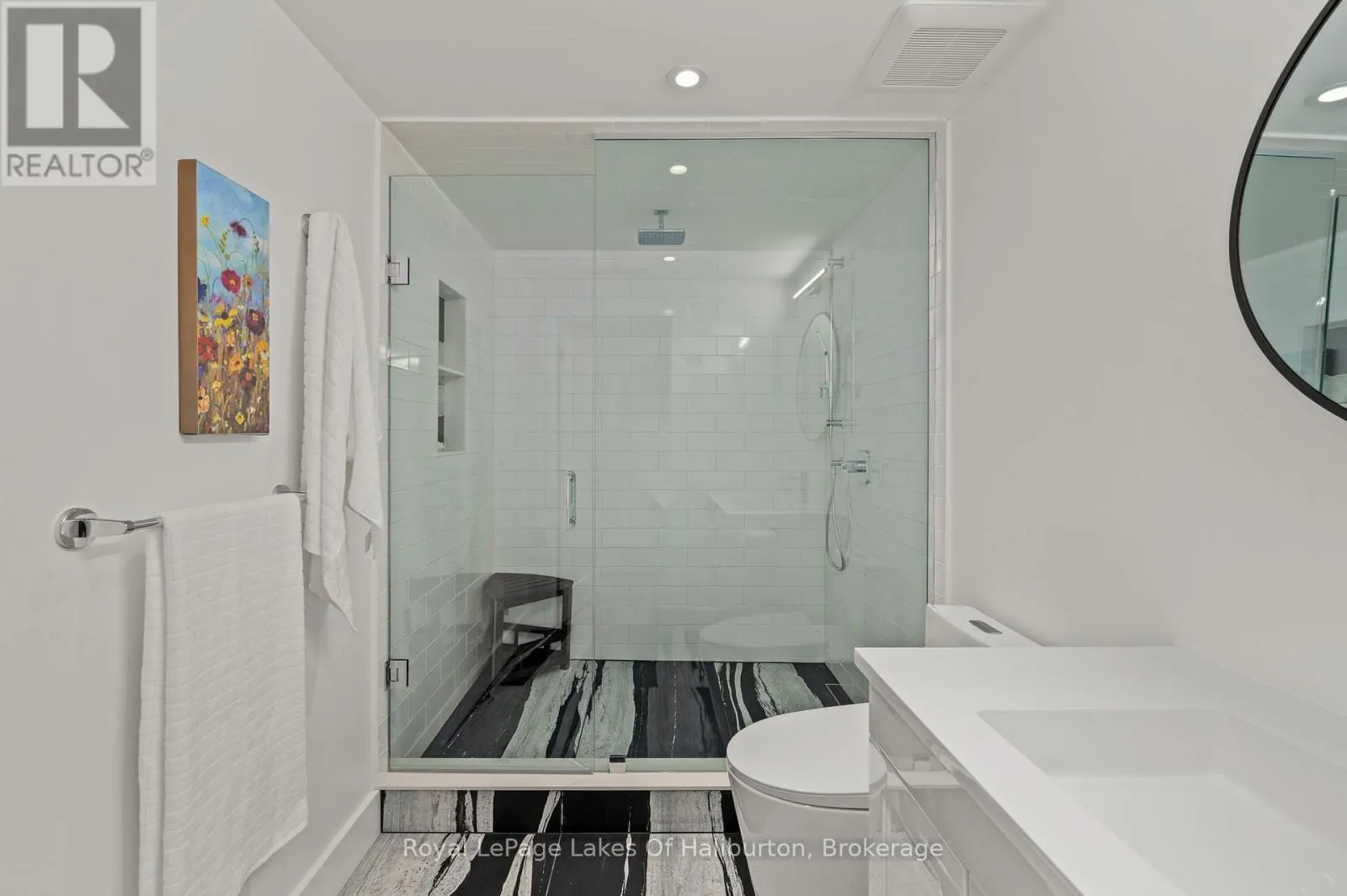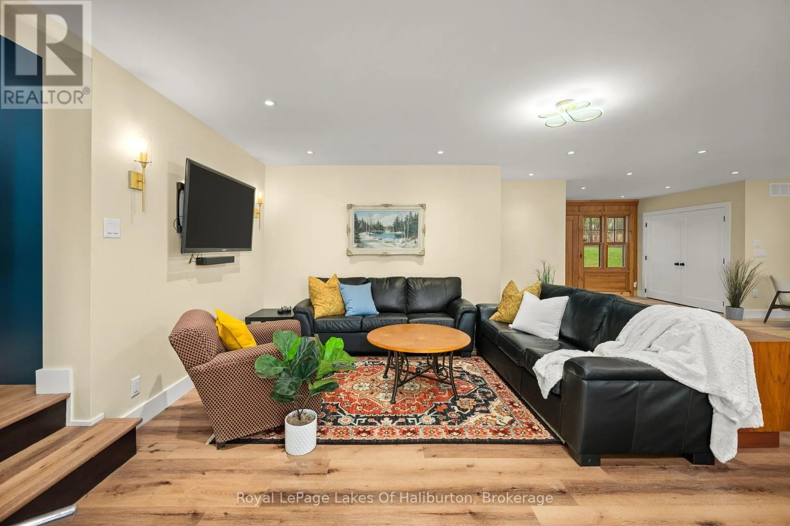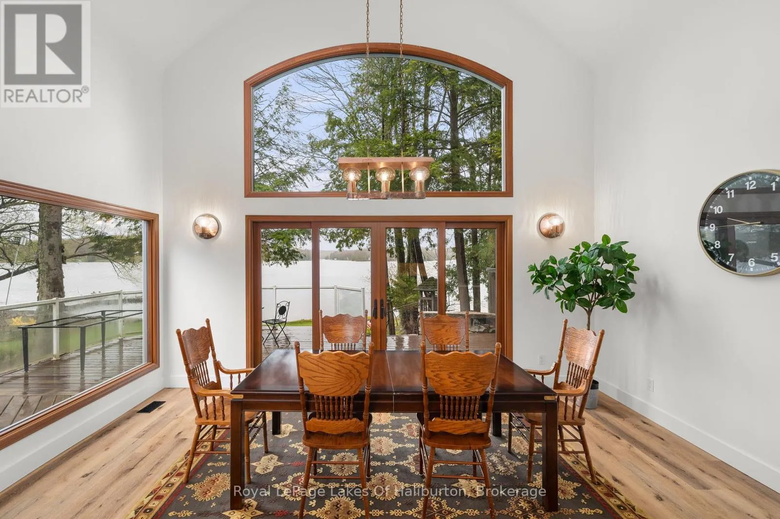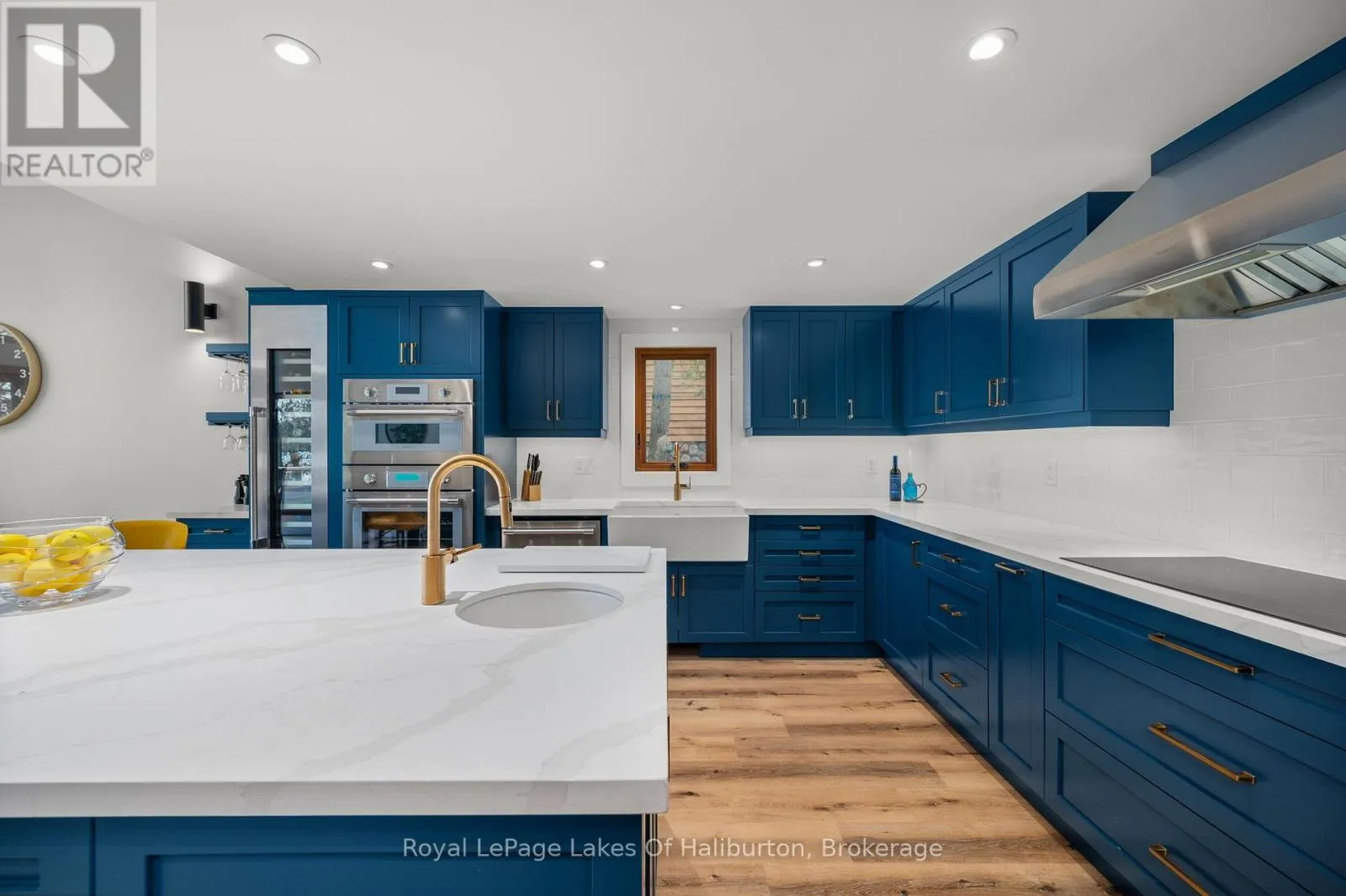 Cross Streets: Gelert Road and Grass Lake Road. ** Directions: Gelert Rd to Grass Lake Rd. The Ultimate Lakefront Lifestyle in the Haliburton Highlands - Experience year-round luxury in this elegant 4-bedroom, 4-bathroom executive lake house, perfectly situated in the Haliburton Highlands. This home is located on a rare double level lot with 175 ft of sandy lake frontage on the scenic Kashagawigamog five-lake chain, which allows you to boat directly into Haliburton and other various points of interest. Enjoy sought-after western exposure for spectacular, all-season sunsets. The home is an unbeatable blend of modern executive living and timeless charm, upon entry through a custom antique wood door, you're greeted by a breathtaking wall of windows that frame the unobstructed waterfront view. The open-concept living space features a cozy stone wood-burning fireplace, sitting area and breakfast nook with walkout to lakeside decking. The gourmet kitchen is a chef's dream, featuring $100K in high-end Thermador stainless steel appliances, including a wine fridge, an oversized sit-up center island, and dual deep sinks the open concept dining room has a cathedral ceiling and a walkout to the glass-paneled lakeside deck. The luxurious main-floor master bedroom is a private haven, offering a walkout to a lakeside deck, a massive walk-in closet, and a stunning 5-piece ensuite with a soaker tub, & glass shower with seat. A second main-floor bedroom with a 3-piece ensuite providing convenience, while two spacious upper-level bedrooms and 5 piece bathroom ensure comfort for family and guests. Listing includes adjacent separately deeded waterfront vacant lot to build a completely separate dwelling, would make for an ideal family compound . Seize the opportunity to own this extraordinary property, offering luxury, charm, privacy, and nature's beauty in a prime Highlands location all with having the unique advantage of being within walking distance to town, the hospital, medical center, and all local amenities. (id:27476)