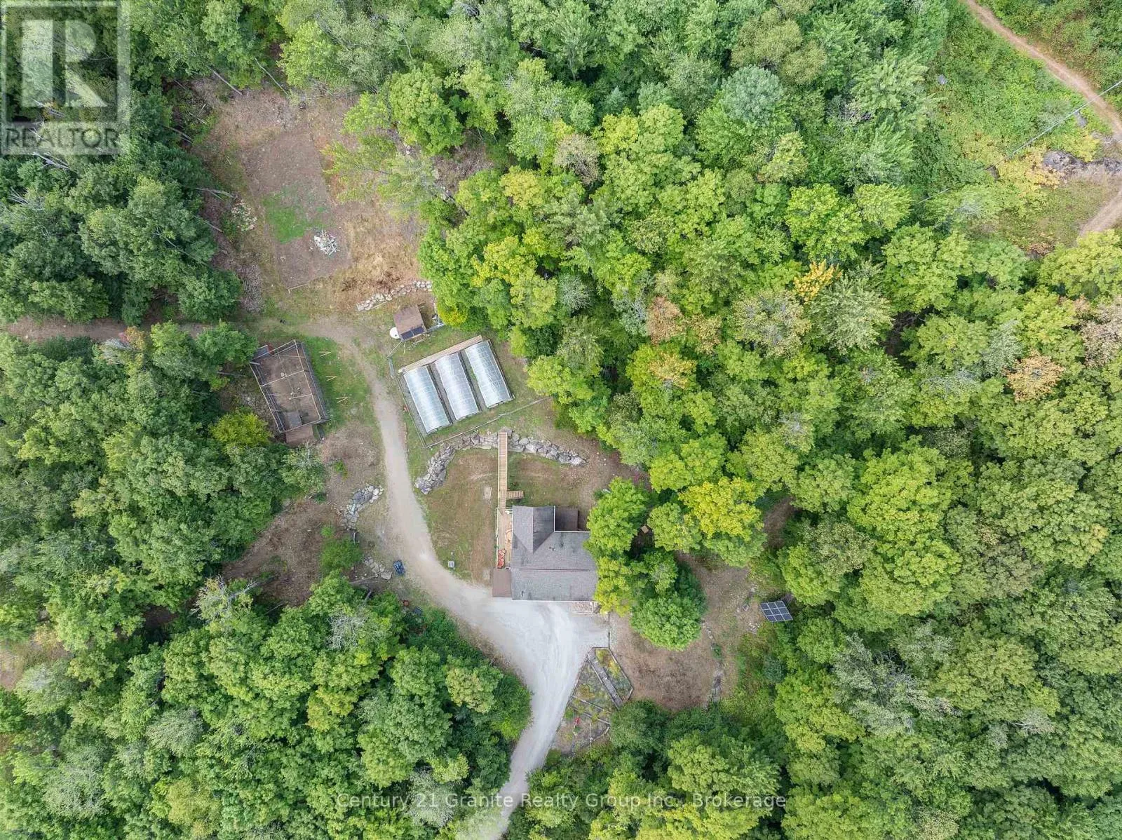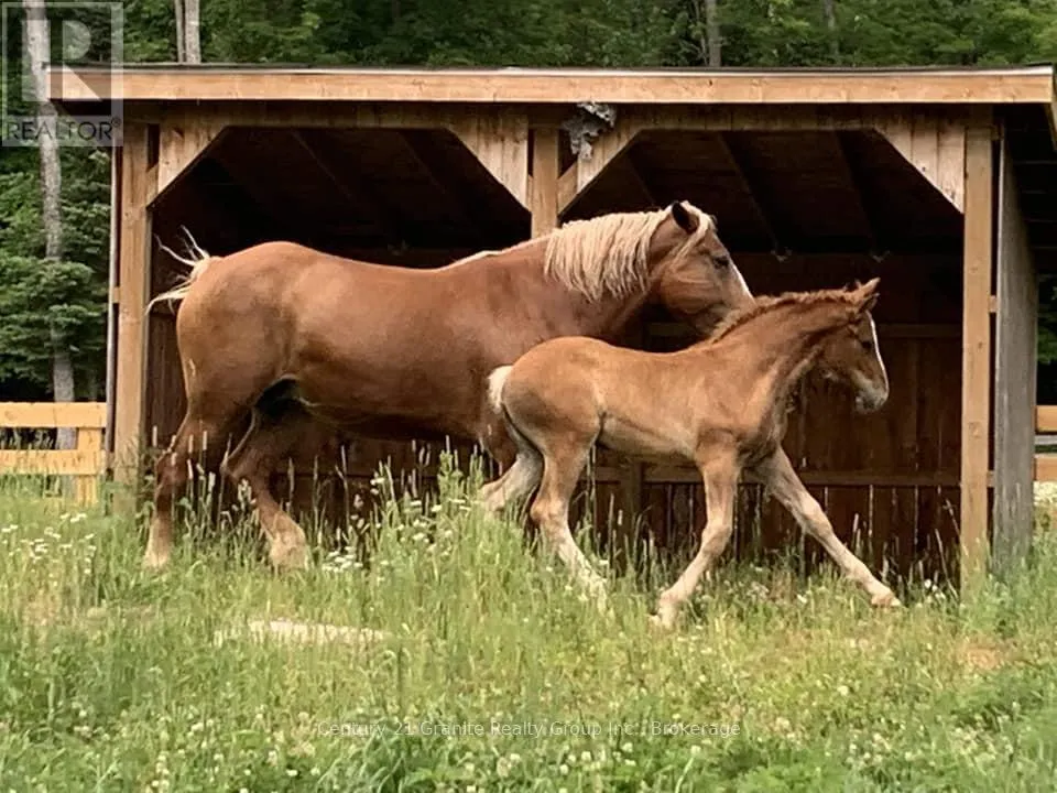 Cross Streets: Indian Point Road and Dardanelles Road. ** Directions: Highway 118 to Harburn Road to Indian Point Road to Dardanelles Road to 1071. Escape to your own off-grid hobby farm on a secluded 37-acre property, just 10 minutes from Haliburton Village and minutes from Drag Lake's boat launch and beach. This rare offering includes three separately deeded lots, delivering exceptional privacy with exciting future potential. Set well back from the road down a winding driveway, the property opens to a picturesque clearing where the main homestead awaits, complete with an attached heated and insulated 2-car garage. The 3-bedroom, 1-bath home is thoughtfully designed to capture the surrounding views, with the main living spaces located on the upper level. The open-concept living, dining, and kitchen area features vaulted wood ceilings, a custom kitchen with island, and a walkout to a screened-in sitting room and deck overlooking the gardens. The spacious primary bedroom includes a built-in wardrobe and its own walkout to the deck, while 2 additional bedrooms (one currently used as an office with built-in storage), a 3-piece bath, and a convenient laundry closet complete the layout. Outdoors, the homestead is surrounded by beautifully landscaped gardens, two greenhouses, and a bird enclosure-perfect for those seeking a self-sufficient lifestyle. The property also features an insulated and heated barn with winter water and fenced pasture, ideal for horses or other livestock. A separate laneway off the main driveway leads to a large wood-clad workshop and driveshed, offering ample workspace and storage-perfect for hobbyists, trades, or those seeking a work-from-home setup. Fully off-grid, the property is powered by solar and a wind turbine, supporting the home, barn, and outbuildings with sustainable energy. Prefer a more conventional setup? Hydro is available just 200 metres away. Blending modern comfort with natural beauty and practical infrastructure, this exceptional hobby farm offers a true Haliburton Highlands lifestyle with endless possibilities. (id:27476)