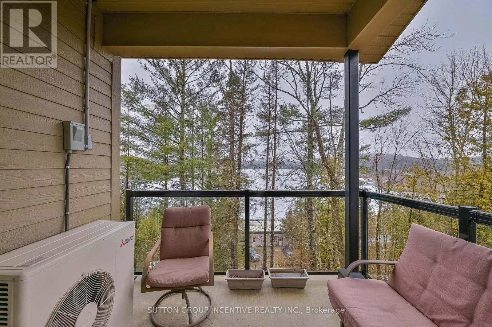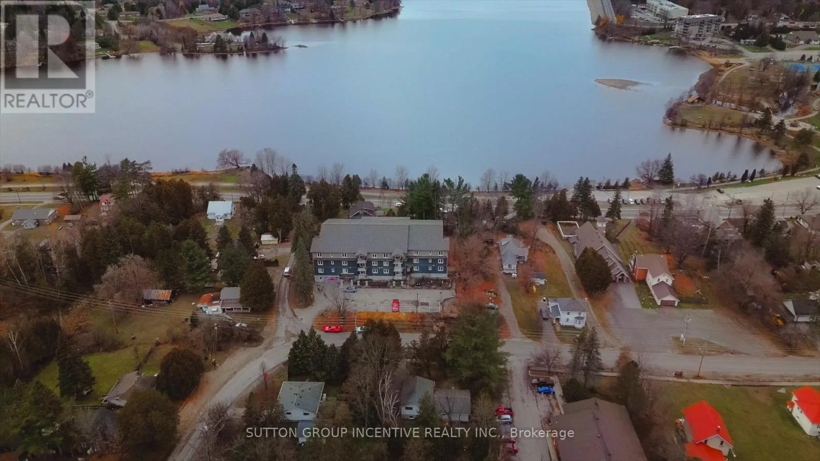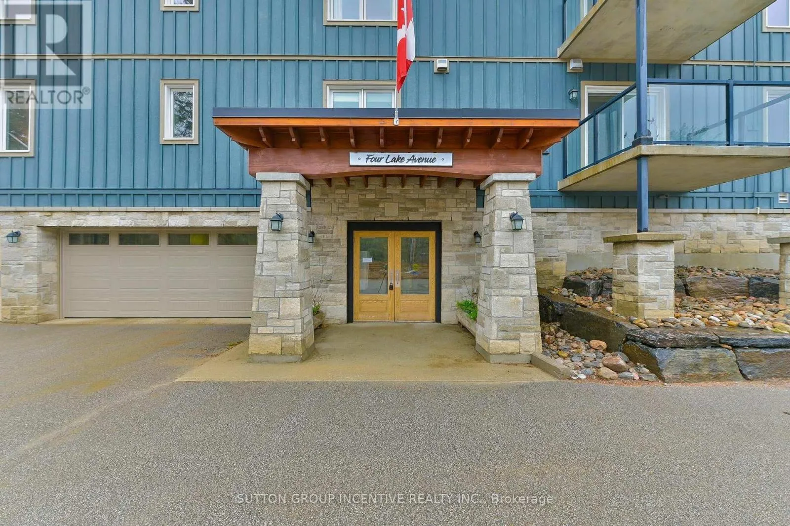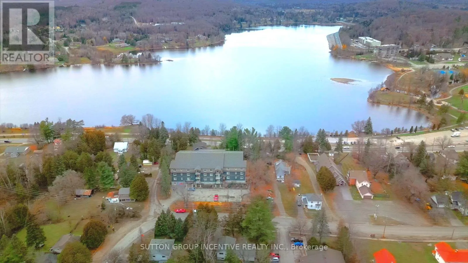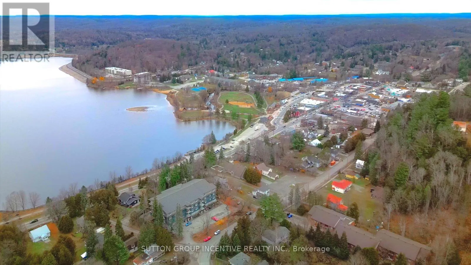 Cross Streets: Mountain & Lake. ** Directions: Maple or Cedar to Mountain to corner Mountain and Lake. Say HELLO to the Granite View!!! A spacious two-bedroom condo offering approximately 1,100 sq ft of comfortable living space with beautiful views over Head Lake from the main windows and private balcony. Bright, open-concept layout with combined living, dining and kitchen areas, ideal for both everyday living and entertaining. Primary bedroom features a walk-in closet and private ensuite, while the second bedroom provides flexibility for guests, office or additional living space. Two full bathrooms including a wheelchair-accessible walk-in shower. Unit also offers automatic door entry with fob access, making it ideal for accessible living. In-suite laundry adds convenience. Includes one indoor parking space, storage locker and the benefit of maintenance-free living. This building is located in the core of Haliburton village, within walking distance to shops, dining, healthcare and amenities!! (id:27476)
