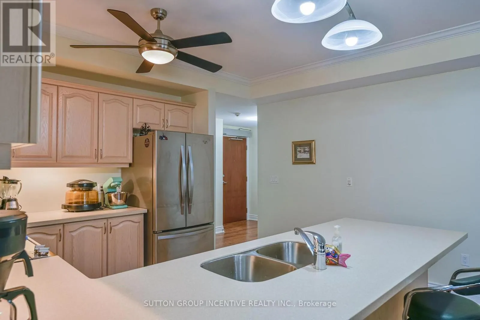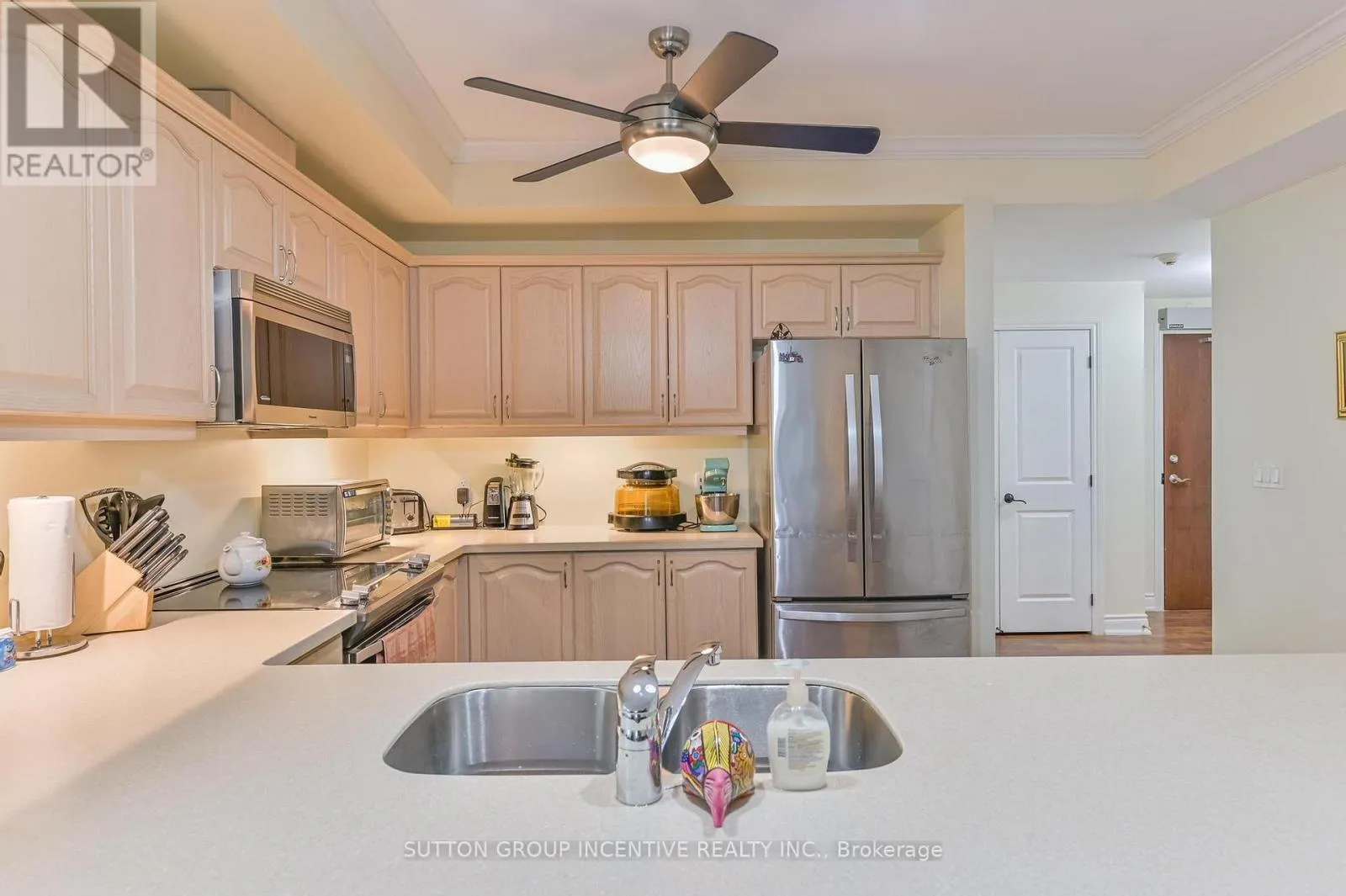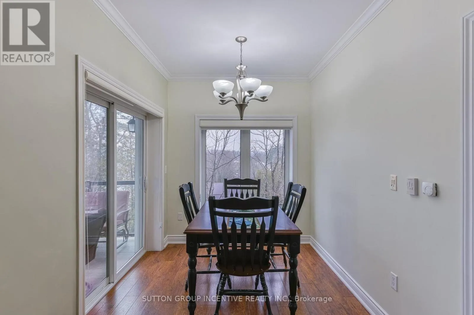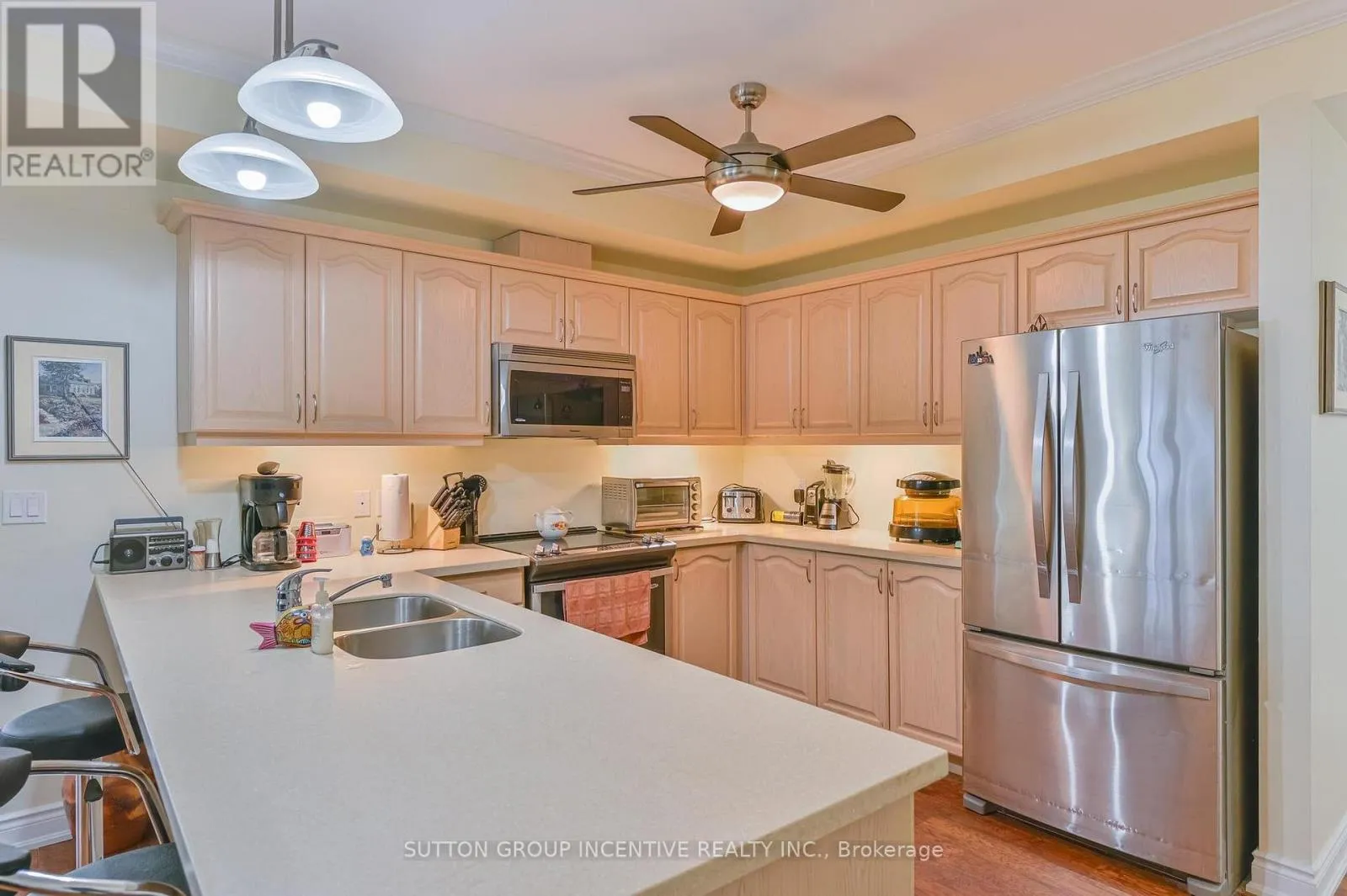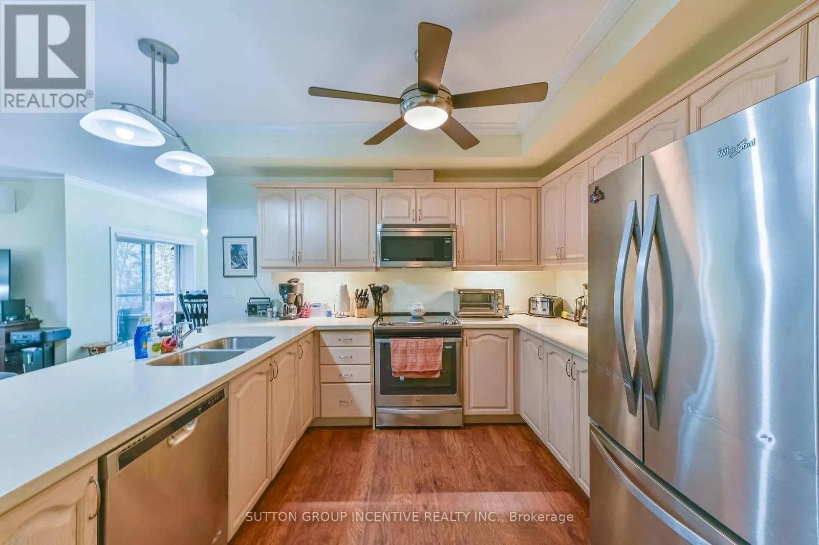 Cross Streets: Mountain & Lake. ** Directions: Maple or Cedar to Mountain to corner Mountain and Lake. Say HELLO to the Granite View!!! A spacious two-bedroom condo offering approximately 1,100 sq ft of comfortable living space with beautiful views over Head Lake from the main windows and private balcony. Bright, open-concept layout with combined living, dining and kitchen areas, ideal for both everyday living and entertaining. Primary bedroom features a walk-in closet and private ensuite, while the second bedroom provides flexibility for guests, office or additional living space. Two full bathrooms including a wheelchair-accessible walk-in shower. Unit also offers automatic door entry with fob access, making it ideal for accessible living. In-suite laundry adds convenience. Includes one indoor parking space, storage locker and the benefit of maintenance-free living. This building is located in the core of Haliburton village, within walking distance to shops, dining, healthcare and amenities!! (id:27476)