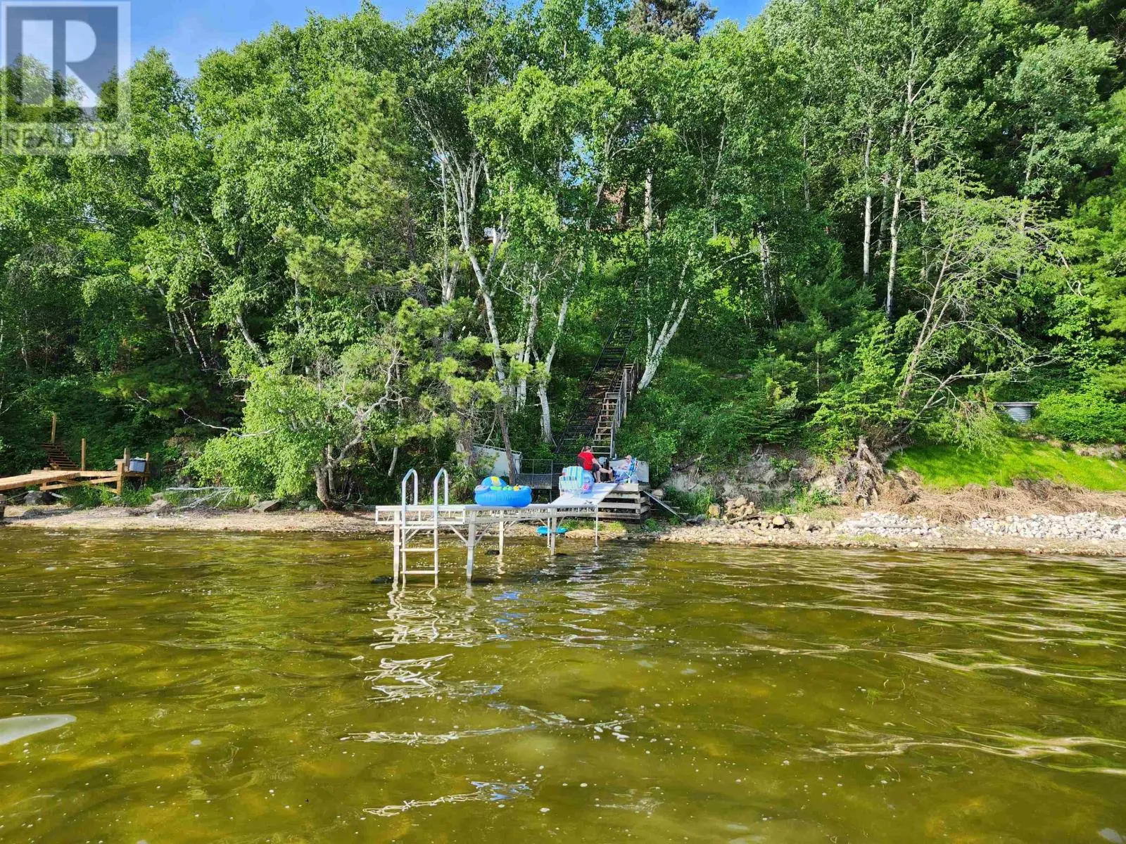 Follow HWY 17W from Dryden then turn South onto HWY 594 follow through Eagle River and then turn East onto Ojibway Drive and follow to property A year-round modified A-frame home offering breathtaking lake views and unforgettable sunsets over Eagle Lake. This beautifully maintained property features 2â3 bedrooms and 2 full bathrooms, The main level showcases a warm and inviting kitchen with custom pine cabinetry and updated countertops, complemented by a bright dining area with a charming dormer window. The open concept living space is filled with natural light, highlighted by three patio doors and a stunning built-in pine and glass bookcase/china cabinet.3 patio doors lead to a wraparound sun deck. The spacious primary bedroom includes a walk-in closet, built-in oak cabinetry. This level also provides convenient access to a second bathroom with laundry, along with an additional bedroom perfect for guests or family. A patio door walk out gets you easy access to the yard. Set on a beautifully landscaped double lot, the property also includes a detached two-storey double garage with an upper-level two-bedroom guest suite, plus an attached carport. Also, a great workshop area next to the garage offers extra storage. Three more sheds included. Enjoy easy access to the shoreline via metal rail system or a sloped walkway includes a sitting deck area with aluminum roll in dock system compliments the gradual sandy lakefront and shoreline make this property ideal for swimming, relaxing, and taking in the natural beauty of the surroundings. A rare opportunity to own a peaceful lakeside retreat with comfort, charm, and exceptional views year-round. (id:27476)