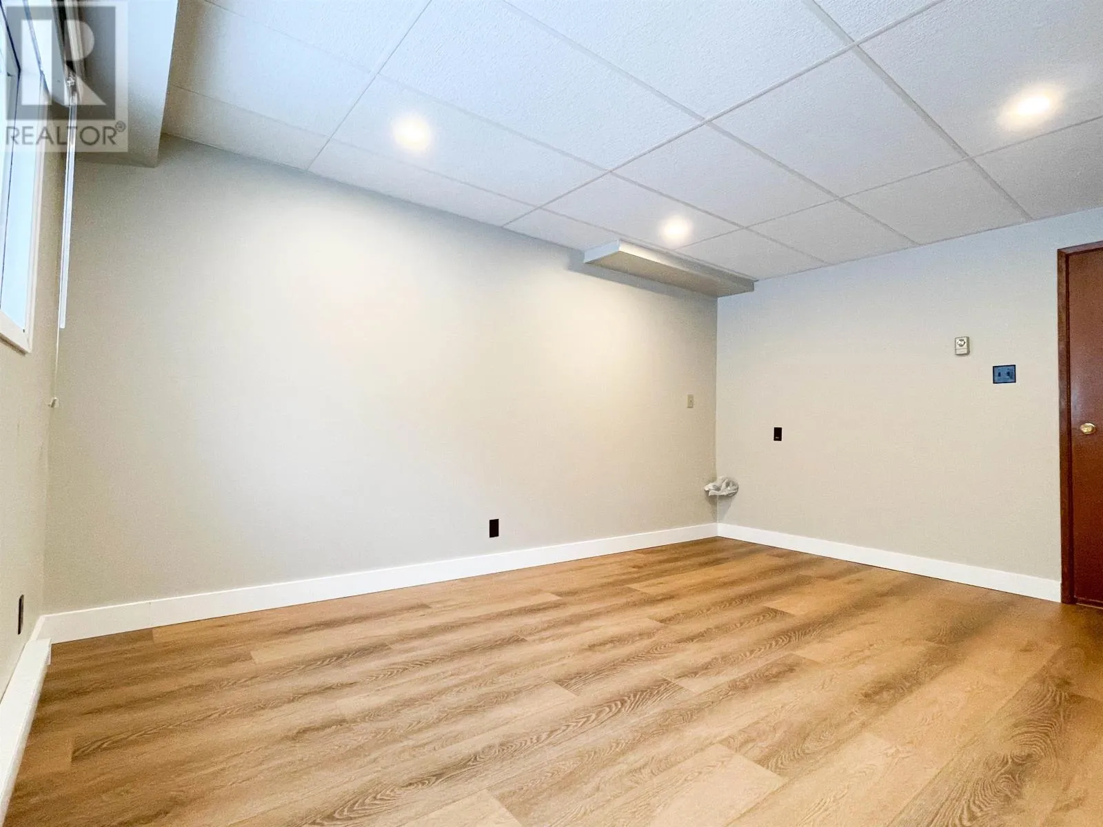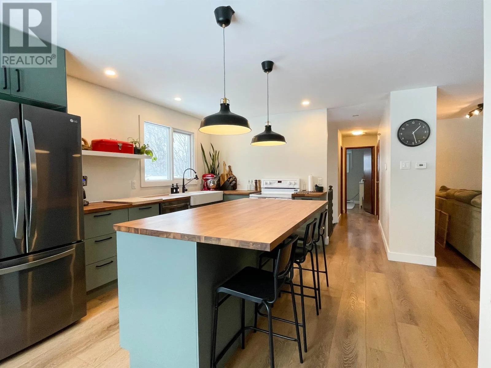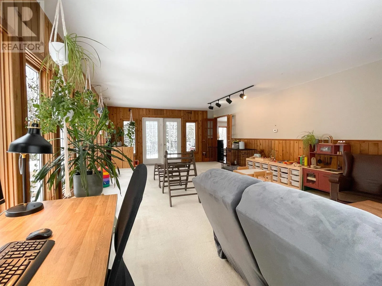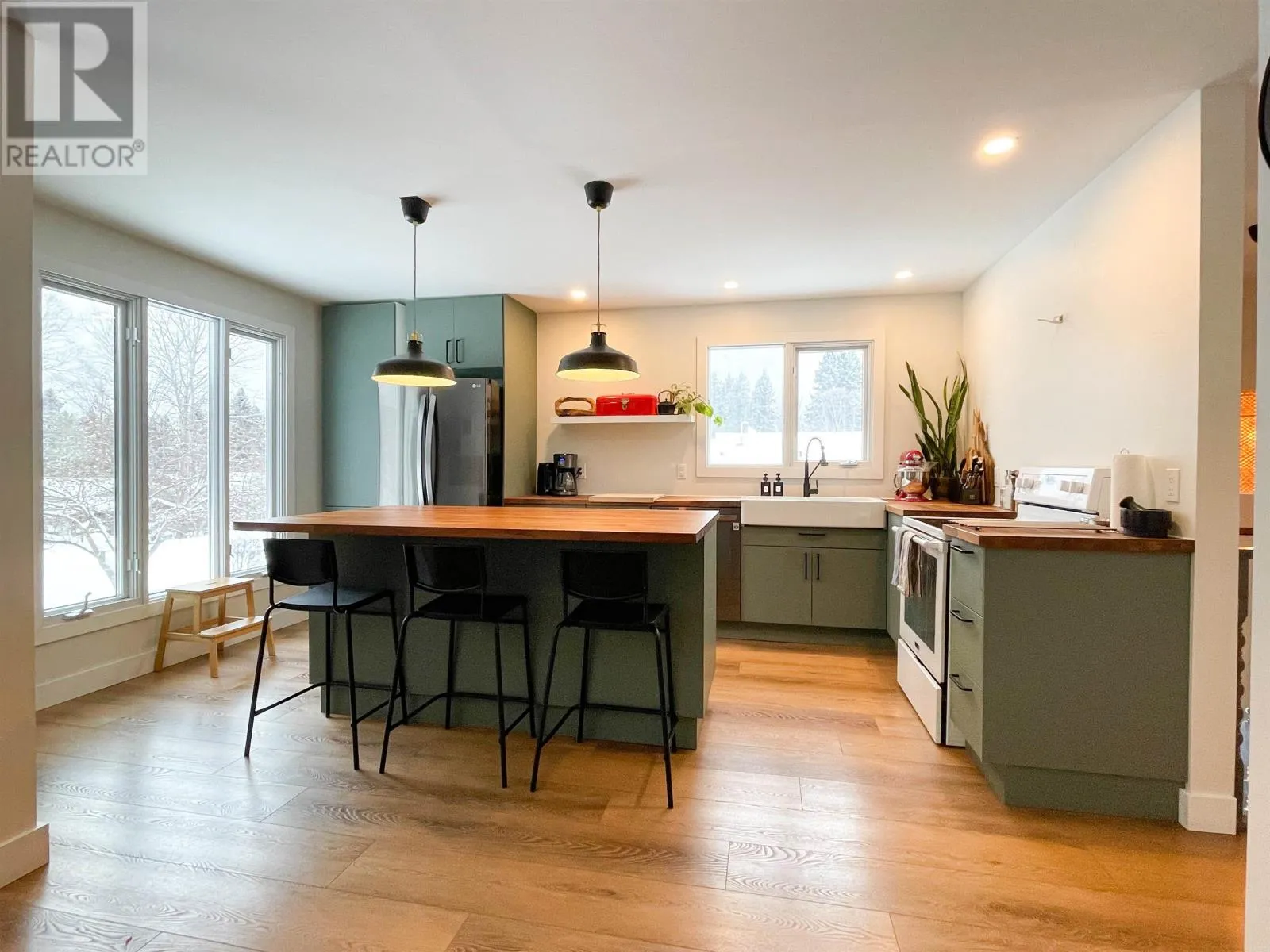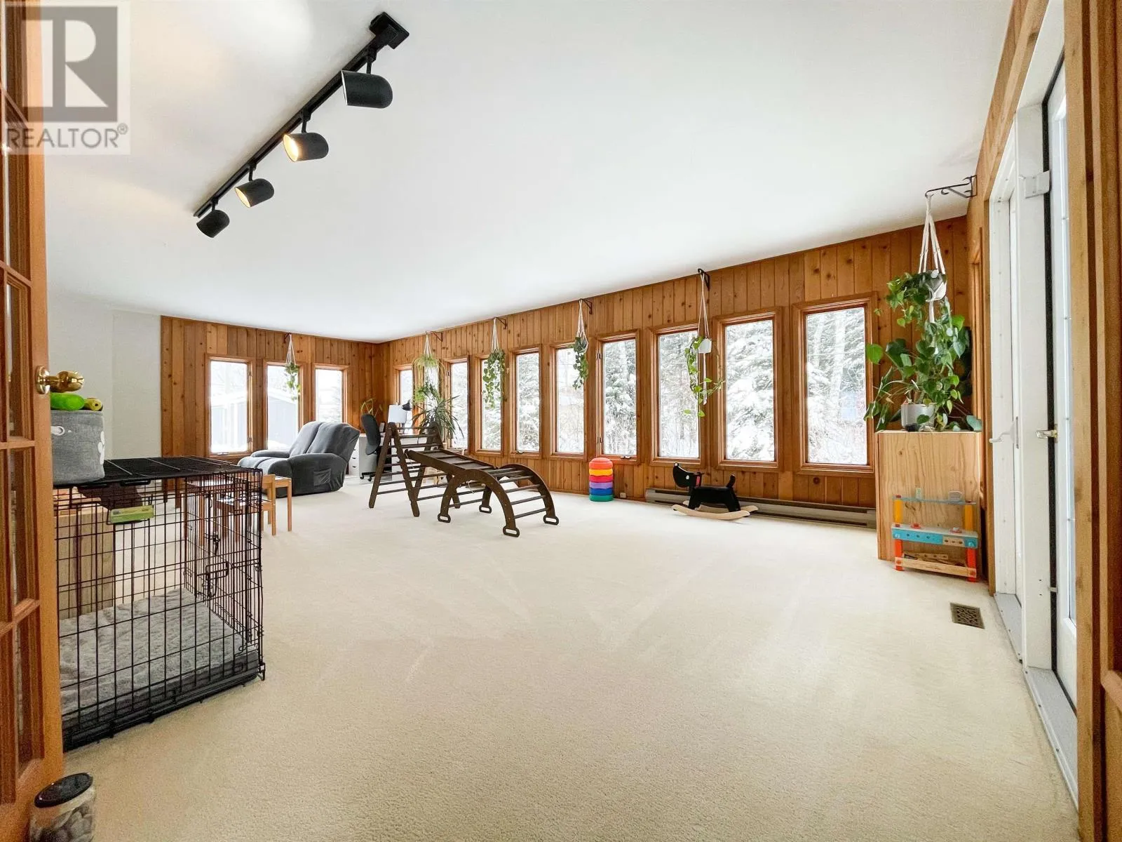 From Highway 105, turn onto Birch Drive. Go trough the first stop sign (Balsam Avenue). Beech crescent is on the left directly after the first house on the left from the intersection of Birch and Balsam. House is located at the end of the street on the left. Tucked away on a quiet dead-end road and surrounded by mature trees, this beautifully updated 4-bedroom, 2.5-bath family home offers exceptional privacy in the heart of town. Enjoy the rare combination of a central location with walking trails directly beside the property. The home features durable, modern vinyl flooring throughout, providing a cohesive look and easy maintenance across all levels. Enter through the main entrance on the left side of the home and ascend a half flight of stairs to the first-floor hallway, which leads into the bright, open-concept kitchen (2022). Featuring a centre island with walnut counter tops, a ceramic farmhouse sink and large front-facing windows. The kitchen is filled with natural light and flows seamlessly into the dining area and cozy living room, complete with a wood-burning stove and built-in bookcase. Just beyond, a stunning and spacious sun room (approximately 420 sq. ft.) creates a true retreat. With western red cedar panelling, expansive windows on all sides, and a gas fireplace, this space offers a warm, cabin-like ambiance year-round. Front-facing doors provide direct access to the covered porch and stairs leading down to the backyard. Returning to the main hallway, youâll find a newly renovated 4-piece bathroom (2024), a comfortable bedroom with built-in closet space, and the primary bedroom featuring double built-in closets and a 2-piece en suite. The lower level offers two additional spacious bedrooms, a 3-piece bathroom, and a dedicated laundry room. This level also provides direct access to the attached heated double garage with workshopâperfect for hobbyists or additional storage. Outside, the fully fenced backyard is ideal for families, pets, and gardening enthusiasts alike, ready to be enjoyed in the upcoming growing season. (id:27476)