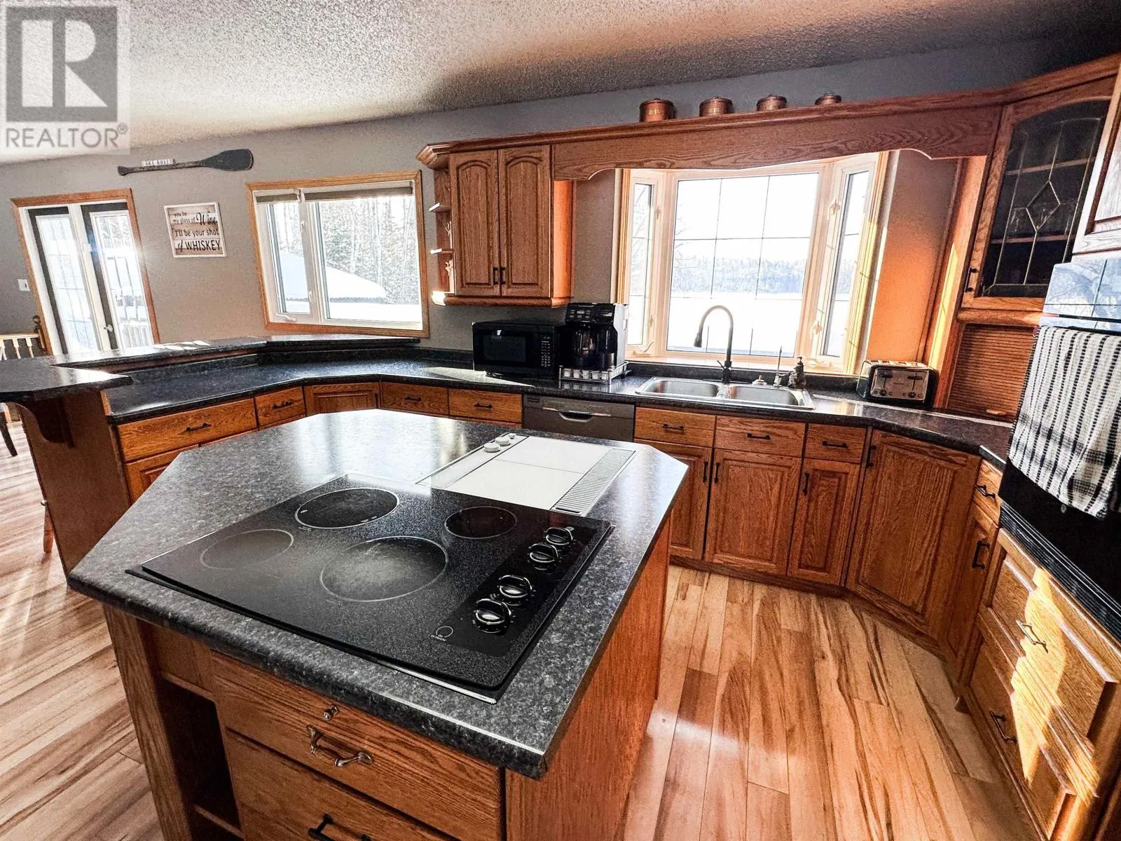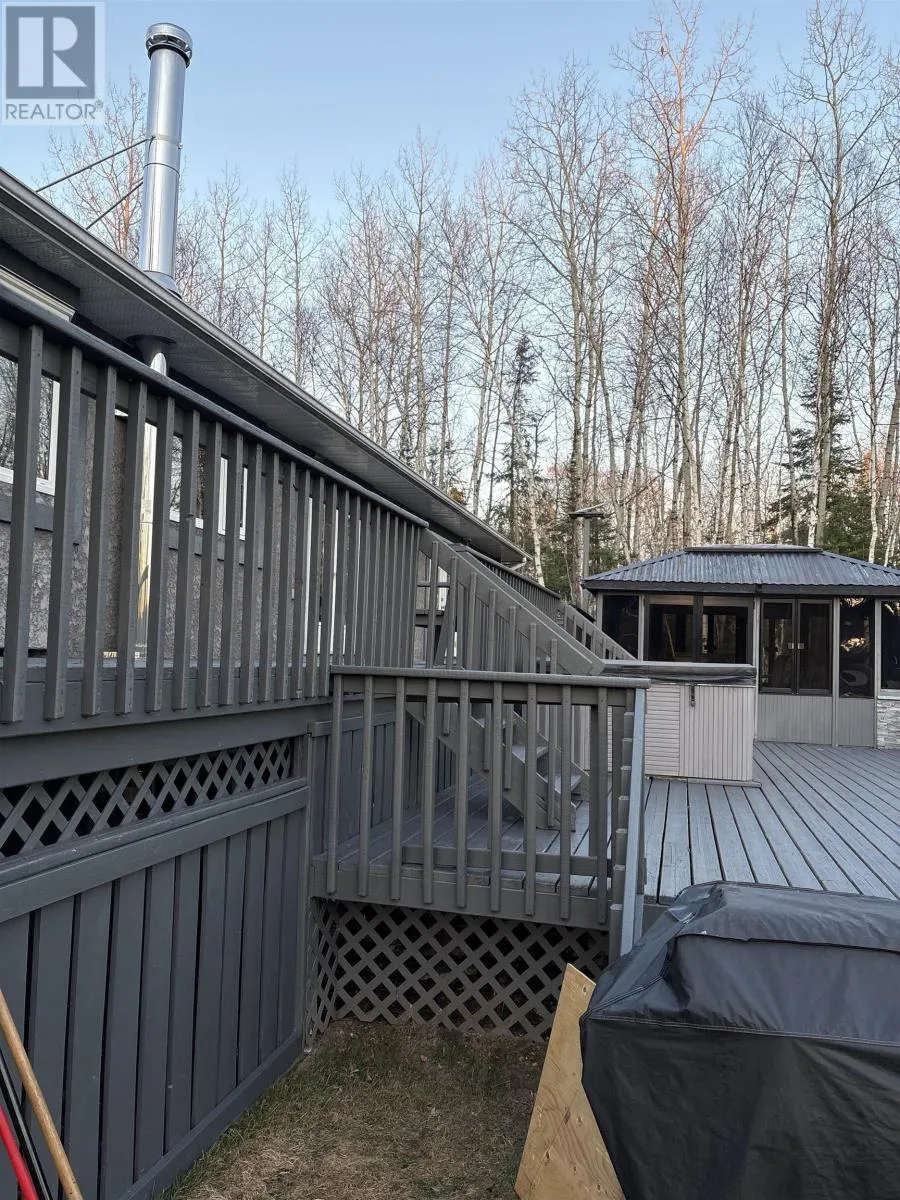 When travelling North on Highway 105, turn left onto HWY 657 (Goldpines Rd), home is about half way down on the right. Lake life, elevated. Welcome to a rare English River offering where space, design, and lifestyle converge on a truly picturesque waterfront lot. This expansive bungalow with a fully finished basement offers nearly 2,000 square feet per level and is built for both everyday comfort and unforgettable entertaining. The main floor is completely open concept, anchored by a stunning kitchen with a large island and built-in appliances, flowing effortlessly into a generous dining area, sunken living room, and flexible bonus space currently used as an office. Four bedrooms complete the main level, including a luxurious primary retreat featuring French doors to the deck, triple closets, and a private ensuite. A spa-inspired main bathroom with a corner jacuzzi tub and a conveniently located powder room ensure comfort for family and guests alike. Downstairs, the home transforms into an entertainerâs dream. A custom-built wet bar with bespoke cabinetry and a built-in Coca-Cola refrigerator sets the stage, alongside a billiards room complete with fireplace and dart board. Two additional bedrooms, a full bathroom, gym space, laundry room, and ample storage round out the lower level, which conveniently circles back to the attached garage. Outside is where this property truly shines. Enjoy a 50â x 8â cribbed dock with an attached 16â x 16â floater, a massive two-tier deck with glassed-in gazebo and hot tub, a firepit area, log cabin bunkie or playhouse, and two additional storage sheds. A 36â x 32â triple-stall detached garage plus a double attached garage complete this exceptional package. This is lake life at its finestâwhere long summer nights, laughter-filled gatherings, and lasting family memories are not just imagined, but lived. (id:27476)