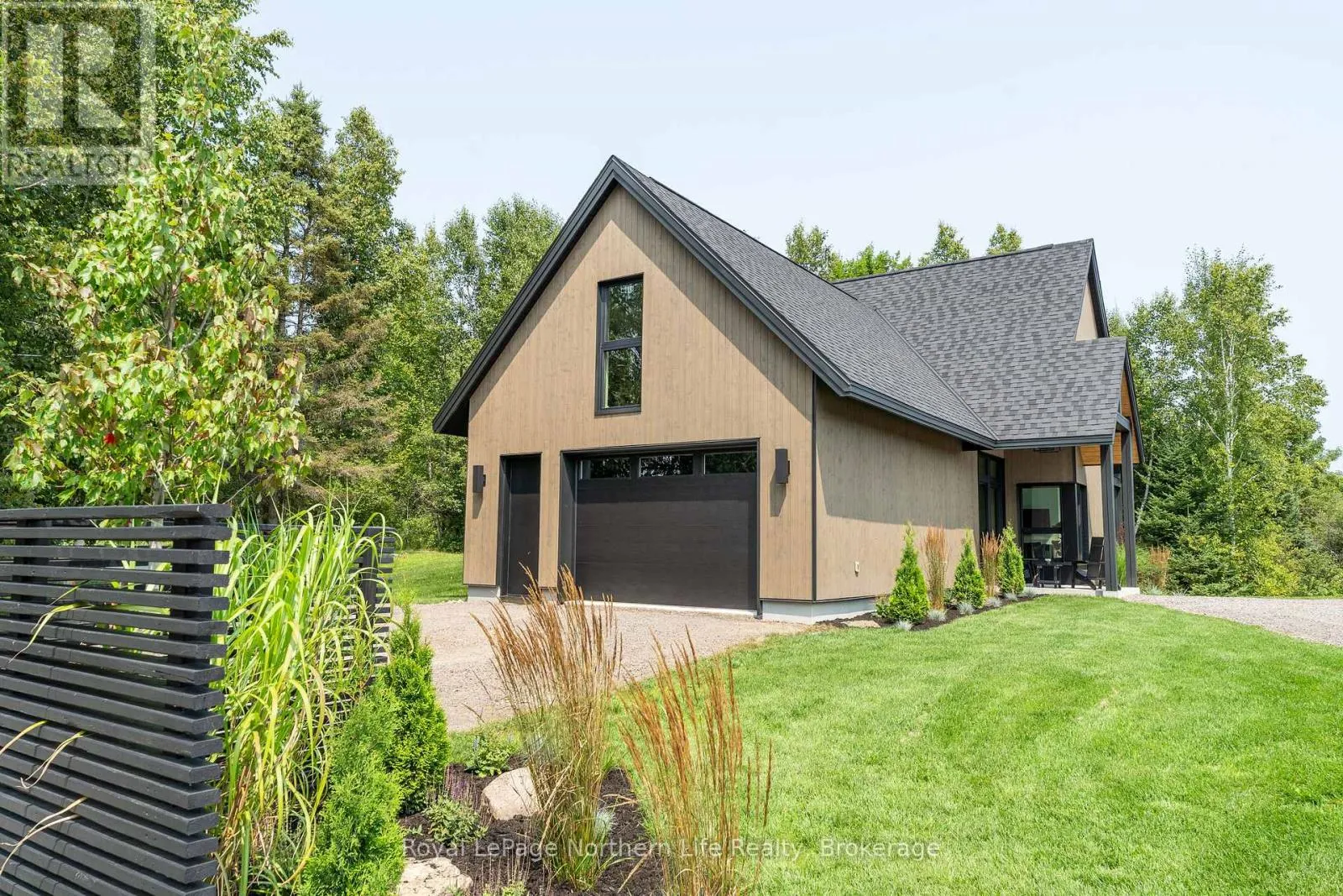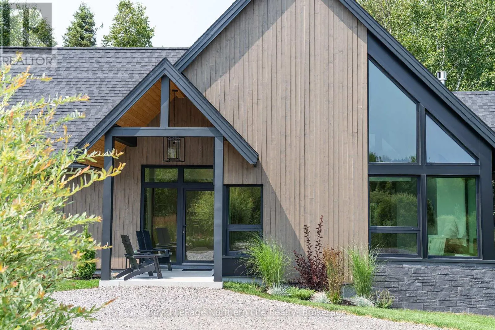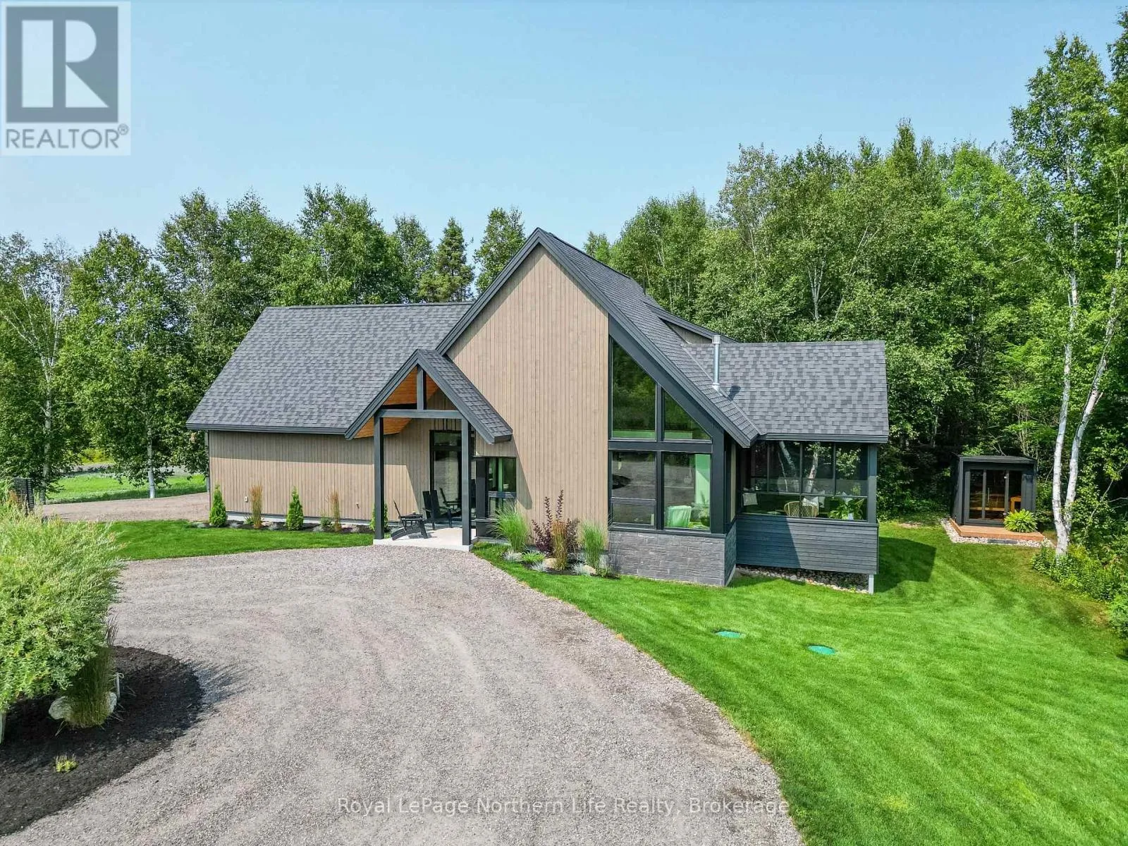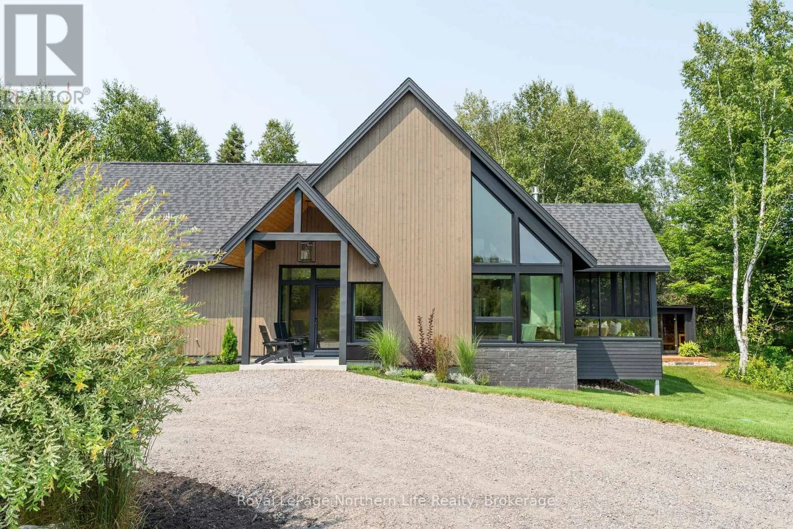 Cross Streets: Quae Quae Rd. ** Directions: Corbeil Rd to Quae Quae Rd to Ouellette Rd. Welcome to 466 Ouellette Road, East Ferris a true architectural masterpiece designed by Larocque Elder Architects, inspired by the elegance of Scandinavian living and constructed with sustainability, comfort, and longevity at its core. Set on 2.47 acres of pristine landscape, this extraordinary property offers the ultimate retreat, blending luxury with nature while being only 15 minutes from North Bay. Flooded with natural light, the interior showcases 1800 sq ft of soaring two-storey cathedral ceilings and expansive triple-pane tinted windows that frame serene woodland views. The exterior's harmonious blend of Maibec wood siding, stonework, and custom metal accents complements the landscape, while inside, a soothing palette of natural materials creates warmth and tranquility. White oak details, custom millwork, engineered hardwood, and quartz surfaces elevate every room with timeless sophistication. Unique architectural features including a cantilevered loft and a dramatic glass-railed catwalk deliver a sense of openness and distinction found in few homes. Modern comfort is ensured with radiant in-floor heating on the main level and baths, forced air propane heating, central air, a Flare propane fireplace, and a whole-home automatic generator. Outdoor maintenance is simplified with a Bluetooth irrigation system. Unwind in the screened-in room overlooking the woods and meadow, or indulge in the Bluetooth-controlled sauna with HUUM heater for a private spa-like experience. A dedicated office with fiber optic internet supports remote work, while its flexible design also suits an in-law or teen suite. Pride of ownership radiates throughout this remarkable 2 bed/3 bath residence, where every detail has been carefully curated to balance luxury and function. 466 Ouellette Road is more than a home, it is an inspired lifestyle, offering peace, privacy, and unparalleled craftsmanship in a breathtaking country setting. (id:27476)