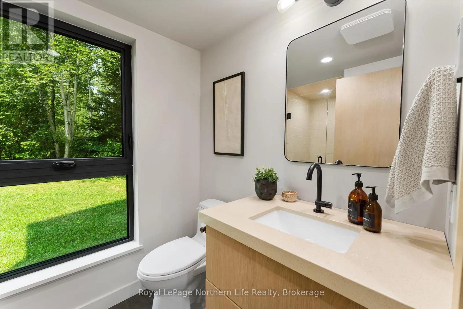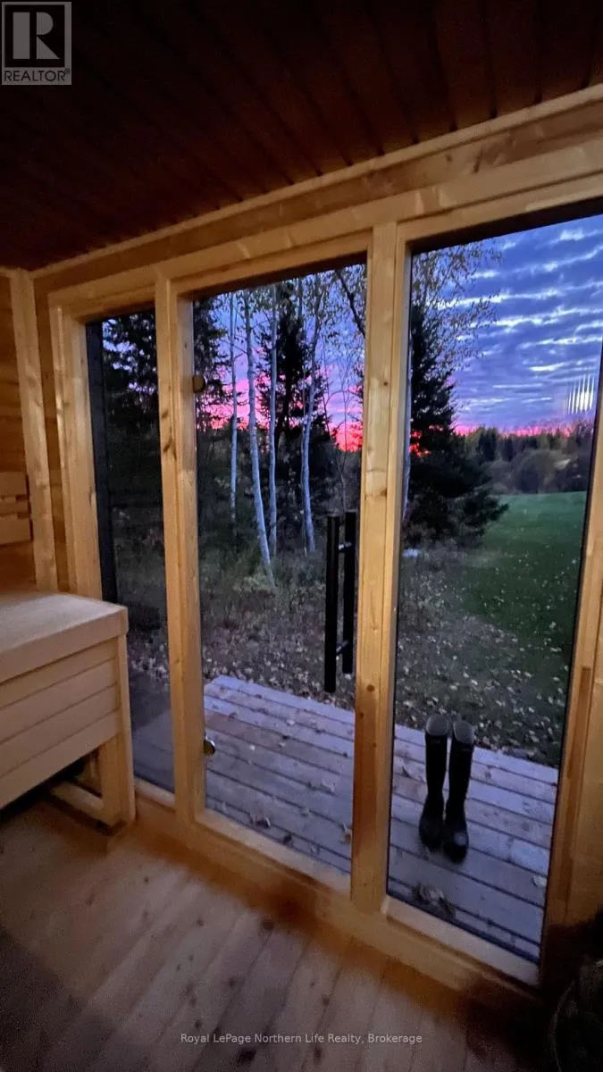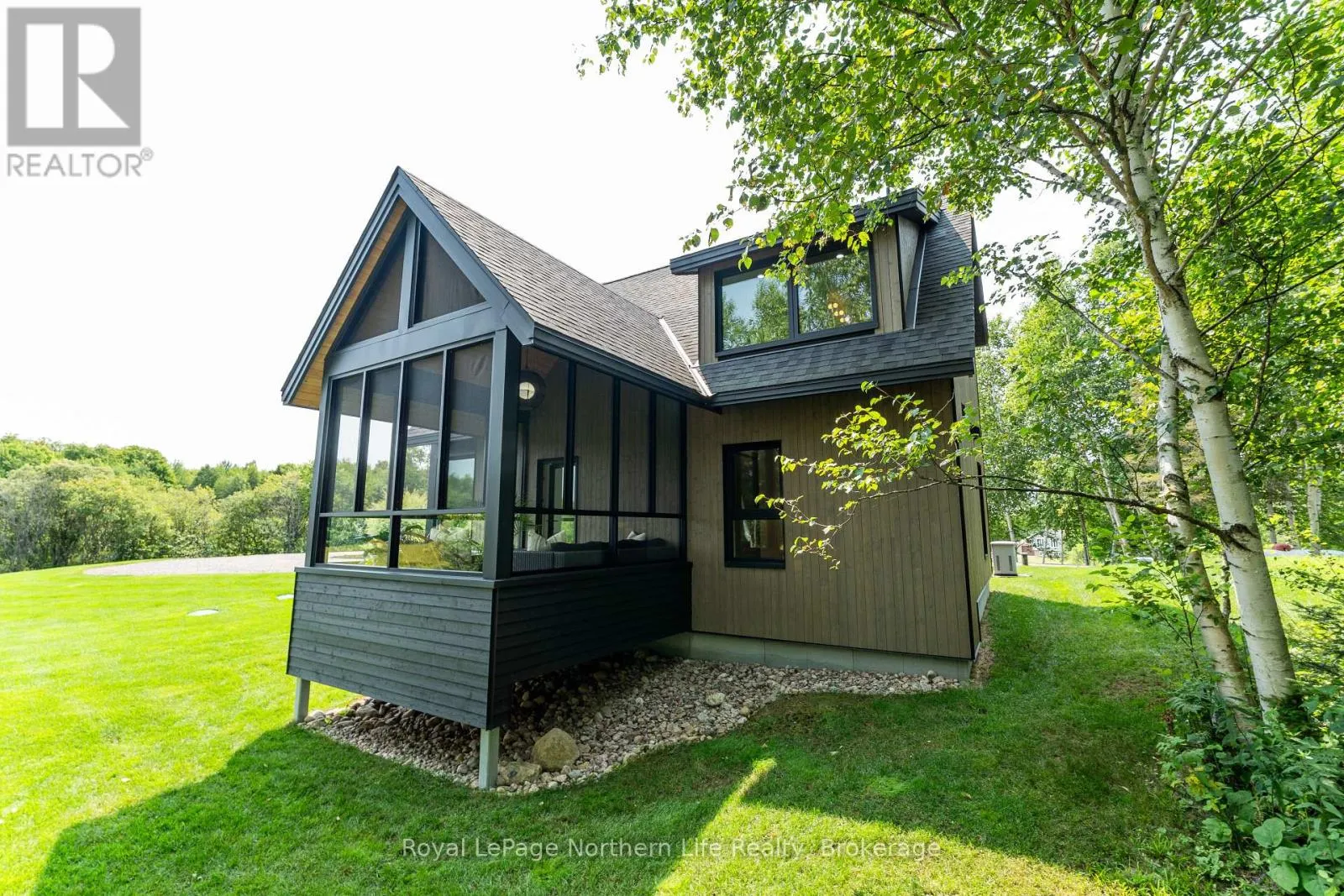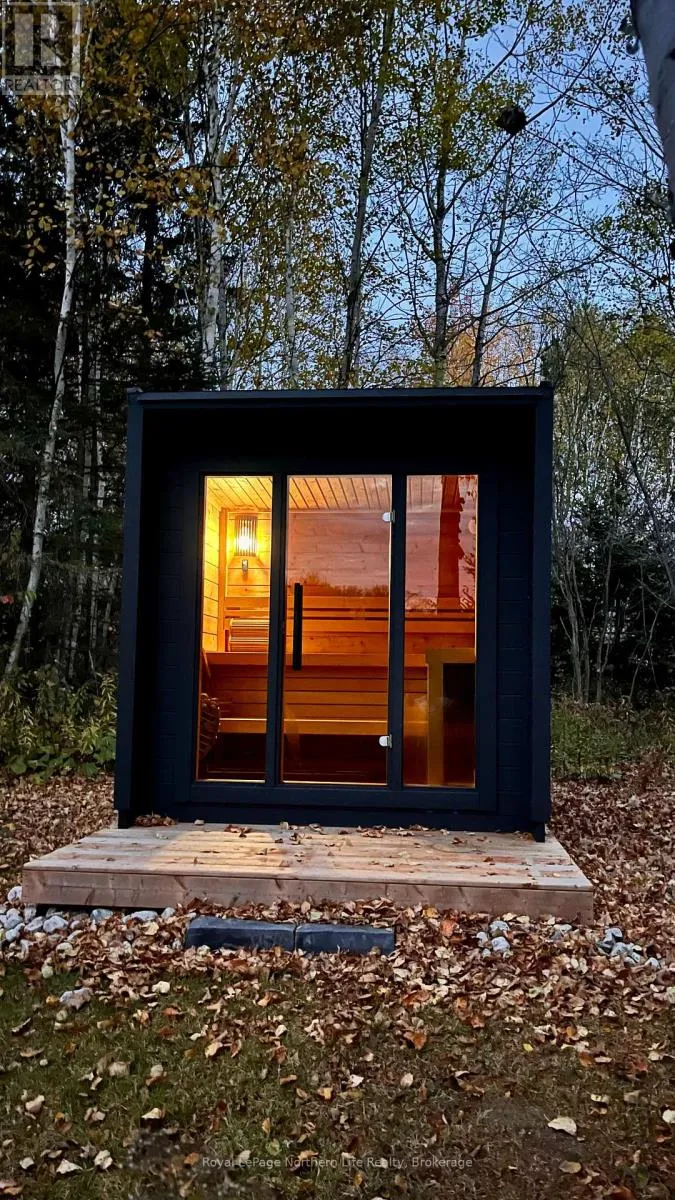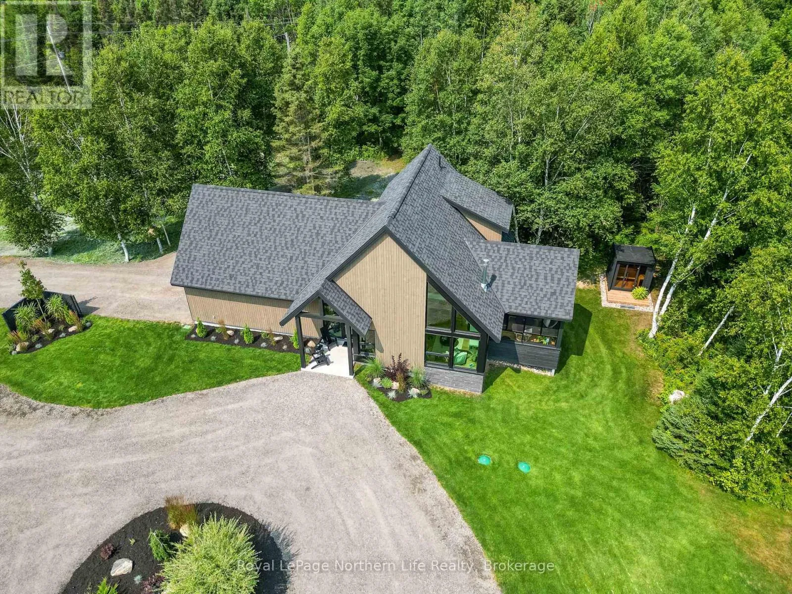 Cross Streets: Quae Quae Rd. ** Directions: Corbeil Rd to Quae Quae Rd to Ouellette Rd. Welcome to 466 Ouellette Road, East Ferris a true architectural masterpiece designed by Larocque Elder Architects, inspired by the elegance of Scandinavian living and constructed with sustainability, comfort, and longevity at its core. Set on 2.47 acres of pristine landscape, this extraordinary property offers the ultimate retreat, blending luxury with nature while being only 15 minutes from North Bay. Flooded with natural light, the interior showcases 1800 sq ft of soaring two-storey cathedral ceilings and expansive triple-pane tinted windows that frame serene woodland views. The exterior's harmonious blend of Maibec wood siding, stonework, and custom metal accents complements the landscape, while inside, a soothing palette of natural materials creates warmth and tranquility. White oak details, custom millwork, engineered hardwood, and quartz surfaces elevate every room with timeless sophistication. Unique architectural features including a cantilevered loft and a dramatic glass-railed catwalk deliver a sense of openness and distinction found in few homes. Modern comfort is ensured with radiant in-floor heating on the main level and baths, forced air propane heating, central air, a Flare propane fireplace, and a whole-home automatic generator. Outdoor maintenance is simplified with a Bluetooth irrigation system. Unwind in the screened-in room overlooking the woods and meadow, or indulge in the Bluetooth-controlled sauna with HUUM heater for a private spa-like experience. A dedicated office with fiber optic internet supports remote work, while its flexible design also suits an in-law or teen suite. Pride of ownership radiates throughout this remarkable 2 bed/3 bath residence, where every detail has been carefully curated to balance luxury and function. 466 Ouellette Road is more than a home, it is an inspired lifestyle, offering peace, privacy, and unparalleled craftsmanship in a breathtaking country setting. (id:27476)