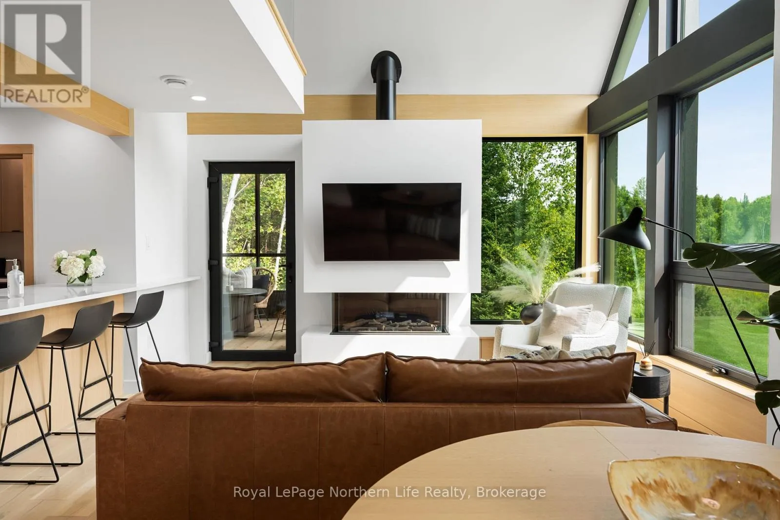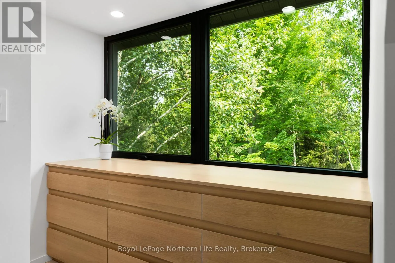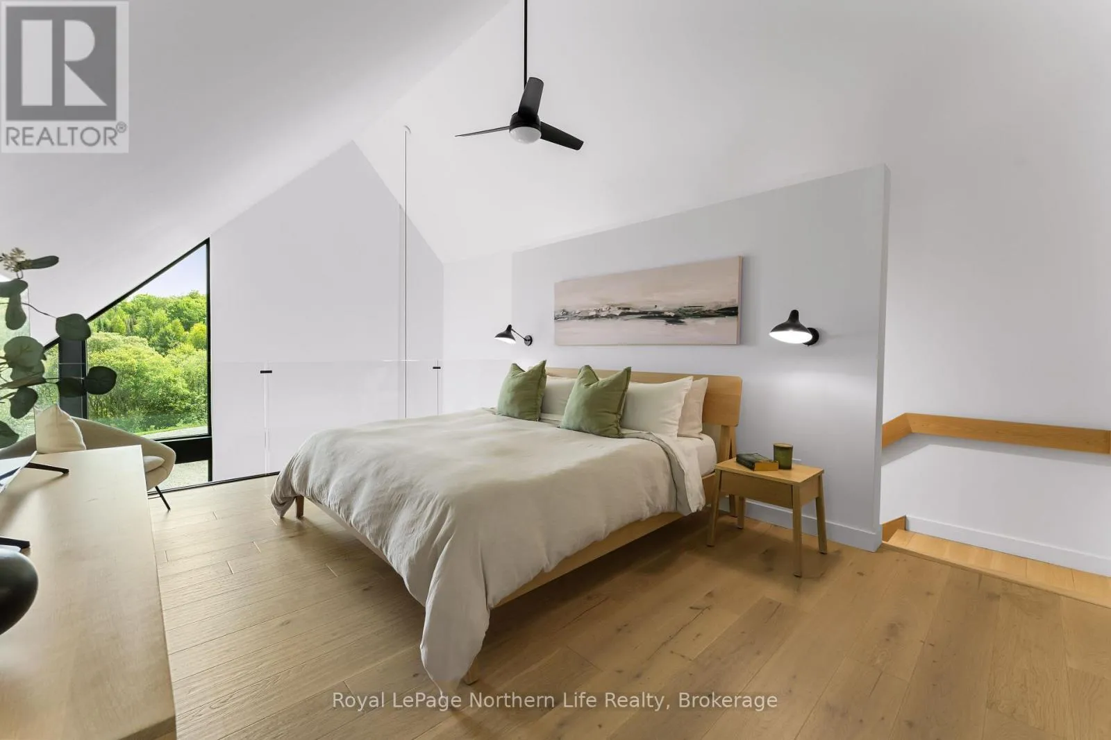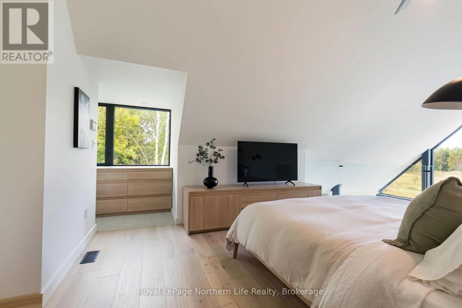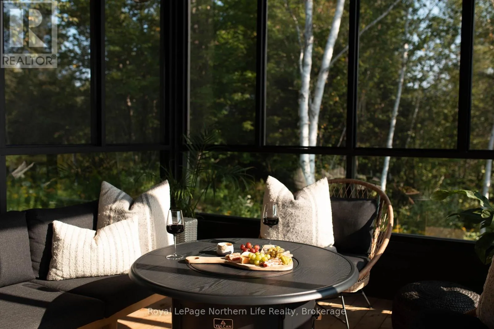 Cross Streets: Quae Quae Rd. ** Directions: Corbeil Rd to Quae Quae Rd to Ouellette Rd. Welcome to 466 Ouellette Road, East Ferris a true architectural masterpiece designed by Larocque Elder Architects, inspired by the elegance of Scandinavian living and constructed with sustainability, comfort, and longevity at its core. Set on 2.47 acres of pristine landscape, this extraordinary property offers the ultimate retreat, blending luxury with nature while being only 15 minutes from North Bay. Flooded with natural light, the interior showcases 1800 sq ft of soaring two-storey cathedral ceilings and expansive triple-pane tinted windows that frame serene woodland views. The exterior's harmonious blend of Maibec wood siding, stonework, and custom metal accents complements the landscape, while inside, a soothing palette of natural materials creates warmth and tranquility. White oak details, custom millwork, engineered hardwood, and quartz surfaces elevate every room with timeless sophistication. Unique architectural features including a cantilevered loft and a dramatic glass-railed catwalk deliver a sense of openness and distinction found in few homes. Modern comfort is ensured with radiant in-floor heating on the main level and baths, forced air propane heating, central air, a Flare propane fireplace, and a whole-home automatic generator. Outdoor maintenance is simplified with a Bluetooth irrigation system. Unwind in the screened-in room overlooking the woods and meadow, or indulge in the Bluetooth-controlled sauna with HUUM heater for a private spa-like experience. A dedicated office with fiber optic internet supports remote work, while its flexible design also suits an in-law or teen suite. Pride of ownership radiates throughout this remarkable 2 bed/3 bath residence, where every detail has been carefully curated to balance luxury and function. 466 Ouellette Road is more than a home, it is an inspired lifestyle, offering peace, privacy, and unparalleled craftsmanship in a breathtaking country setting. (id:27476)