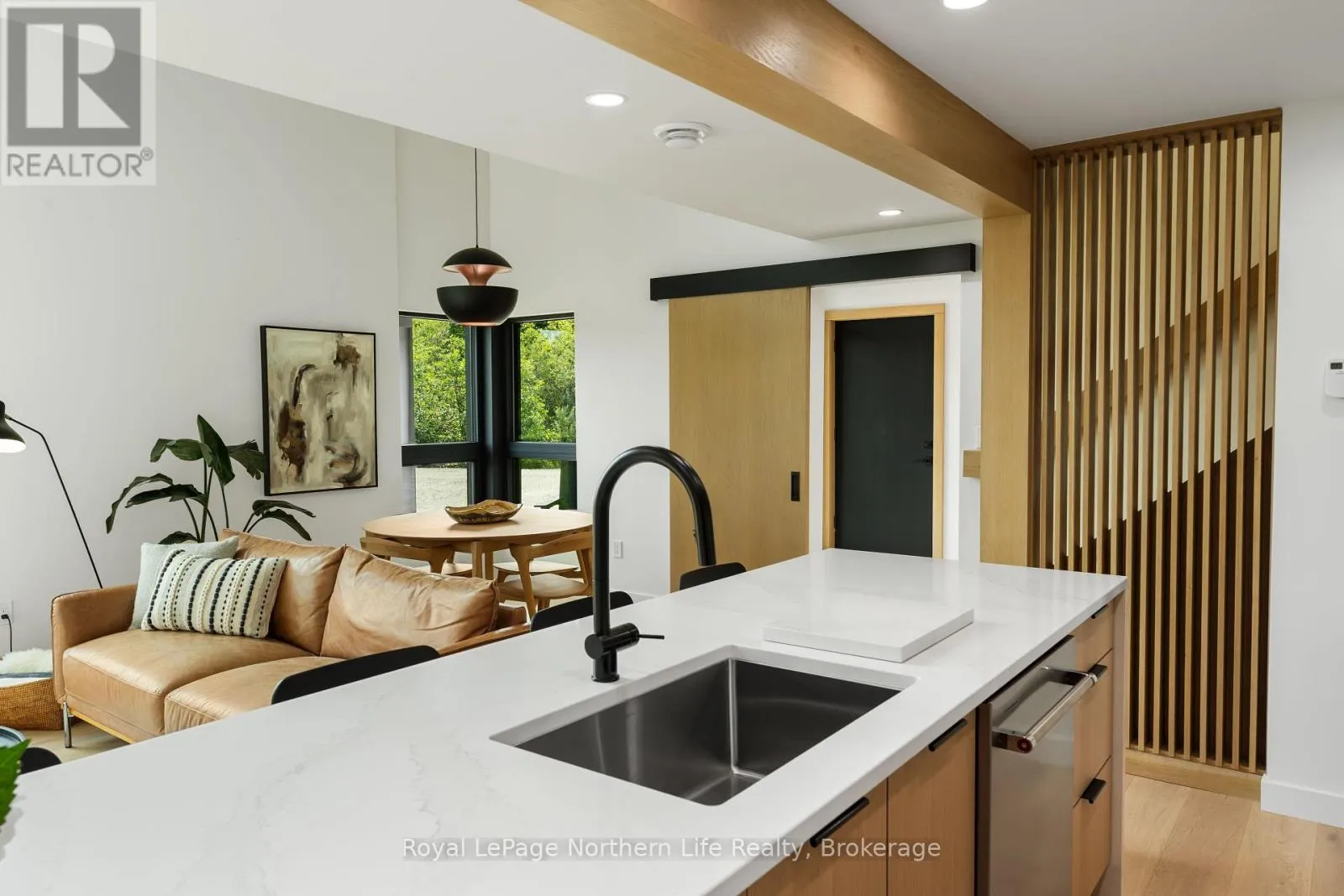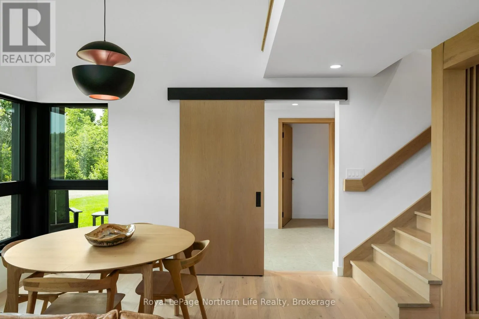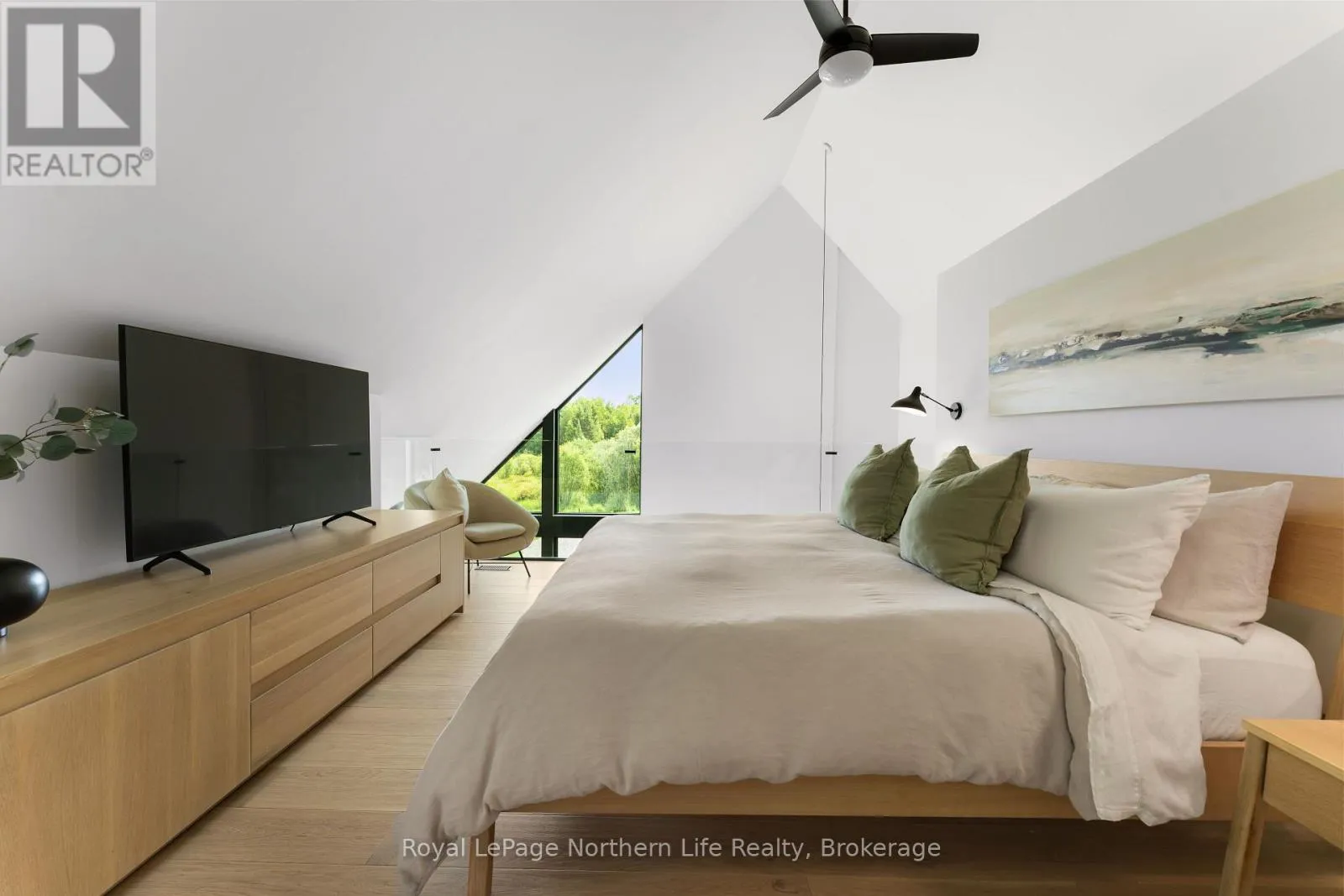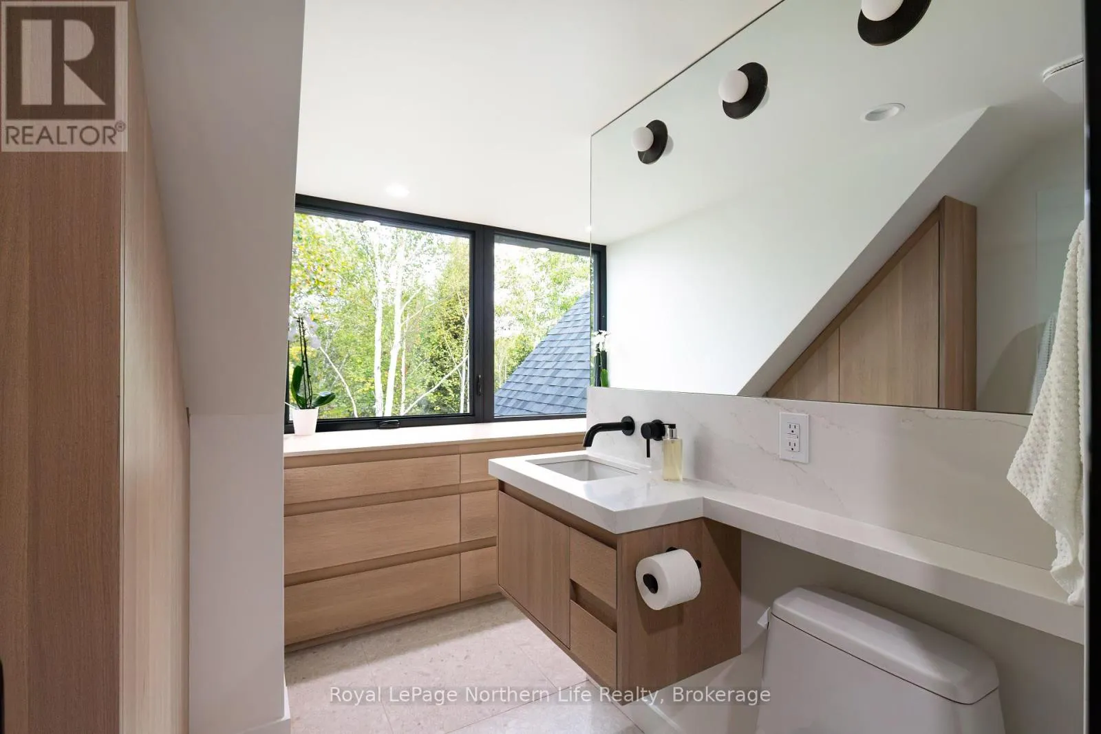 Cross Streets: Quae Quae Rd. ** Directions: Corbeil Rd to Quae Quae Rd to Ouellette Rd. Welcome to 466 Ouellette Road, East Ferris a true architectural masterpiece designed by Larocque Elder Architects, inspired by the elegance of Scandinavian living and constructed with sustainability, comfort, and longevity at its core. Set on 2.47 acres of pristine landscape, this extraordinary property offers the ultimate retreat, blending luxury with nature while being only 15 minutes from North Bay. Flooded with natural light, the interior showcases 1800 sq ft of soaring two-storey cathedral ceilings and expansive triple-pane tinted windows that frame serene woodland views. The exterior's harmonious blend of Maibec wood siding, stonework, and custom metal accents complements the landscape, while inside, a soothing palette of natural materials creates warmth and tranquility. White oak details, custom millwork, engineered hardwood, and quartz surfaces elevate every room with timeless sophistication. Unique architectural features including a cantilevered loft and a dramatic glass-railed catwalk deliver a sense of openness and distinction found in few homes. Modern comfort is ensured with radiant in-floor heating on the main level and baths, forced air propane heating, central air, a Flare propane fireplace, and a whole-home automatic generator. Outdoor maintenance is simplified with a Bluetooth irrigation system. Unwind in the screened-in room overlooking the woods and meadow, or indulge in the Bluetooth-controlled sauna with HUUM heater for a private spa-like experience. A dedicated office with fiber optic internet supports remote work, while its flexible design also suits an in-law or teen suite. Pride of ownership radiates throughout this remarkable 2 bed/3 bath residence, where every detail has been carefully curated to balance luxury and function. 466 Ouellette Road is more than a home, it is an inspired lifestyle, offering peace, privacy, and unparalleled craftsmanship in a breathtaking country setting. (id:27476)