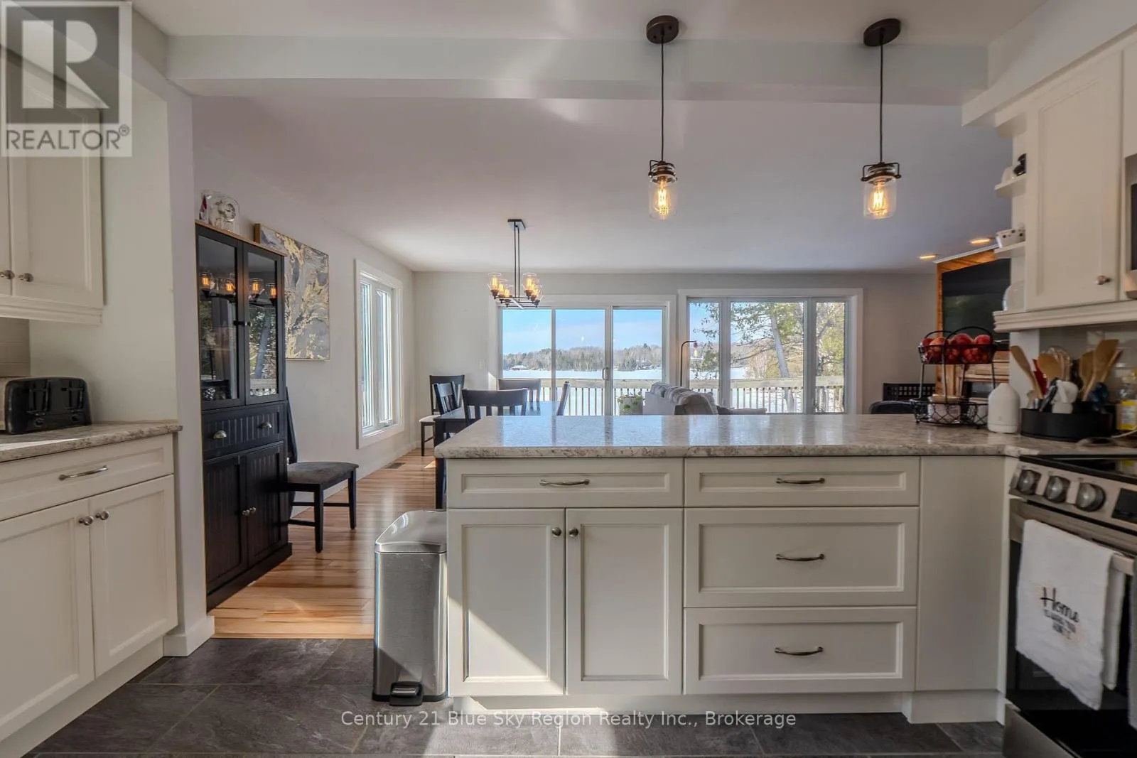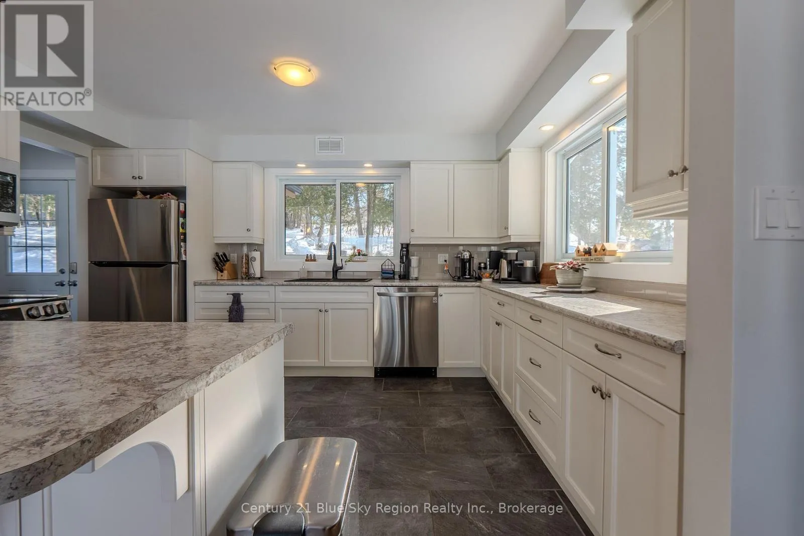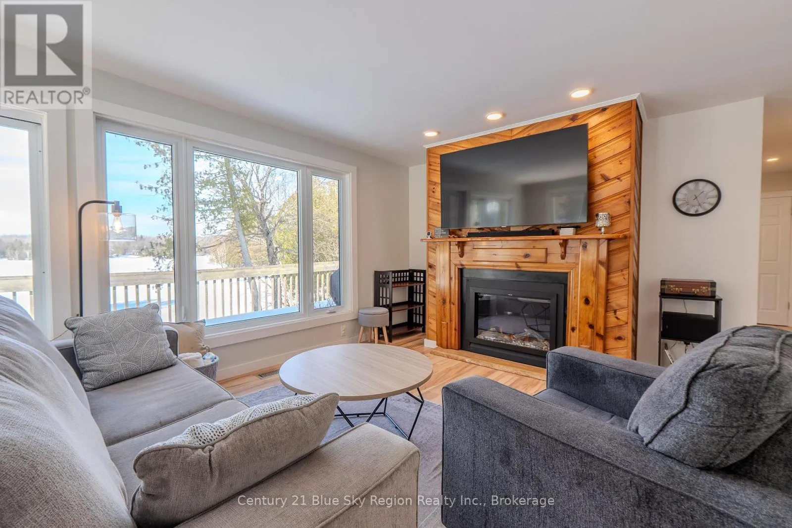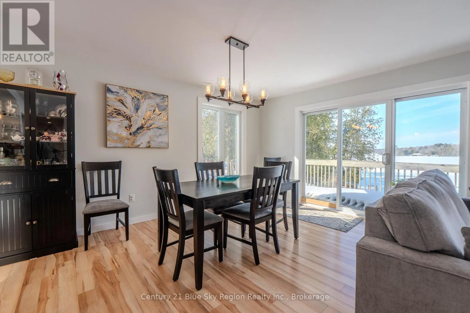 Cross Streets: Guillemette Rd. ** Directions: Guillemette Rd to Cherry Lane, house on right. Welcome to your lakeside retreat! Nestled on the serene shores of Lake Nosbonsing, this delightful 2-bedroom, 1.5-bathroom bungalow offers the perfect blend of comfort and natural beauty. Situated on an expansive 1.45-acre lot with a Northwest exposure, this property promises breathtaking lake views. As you step inside, you'll be greeted by the warmth of hardwood floors that flow through the open-concept living and dining area. This inviting space is bathed in natural light, thanks to an abundance of windows and sliding patio doors that lead to a large deck, ideal for entertaining or simply soaking in the peaceful surroundings. The kitchen is a culinary dream, featuring stainless steel appliances and ample counter space, making meal preparation a joy. Whether you're hosting a dinner party or enjoying a quiet breakfast, you'll appreciate the functionality and style of this well-appointed kitchen. In the living room, a beautiful wood surround with an electric fireplace creates a cozy atmosphere, perfect for relaxing with a good book or gathering with loved ones on cooler evenings. The property's real gem is its direct access to Lake Nosbonsing. A private dock invites you to indulge in boating, fishing, or swimming at your leisure. Imagine the endless water activities and adventures that await! This impressive bungalow is not just a home; it's a lifestyle! Whether you're seeking a year-round residence or a seasonal getaway, this property on Lake Nosbonsing offers the perfect escape. Don't miss the opportunity to make this lakeside dream your reality! (id:27476)
