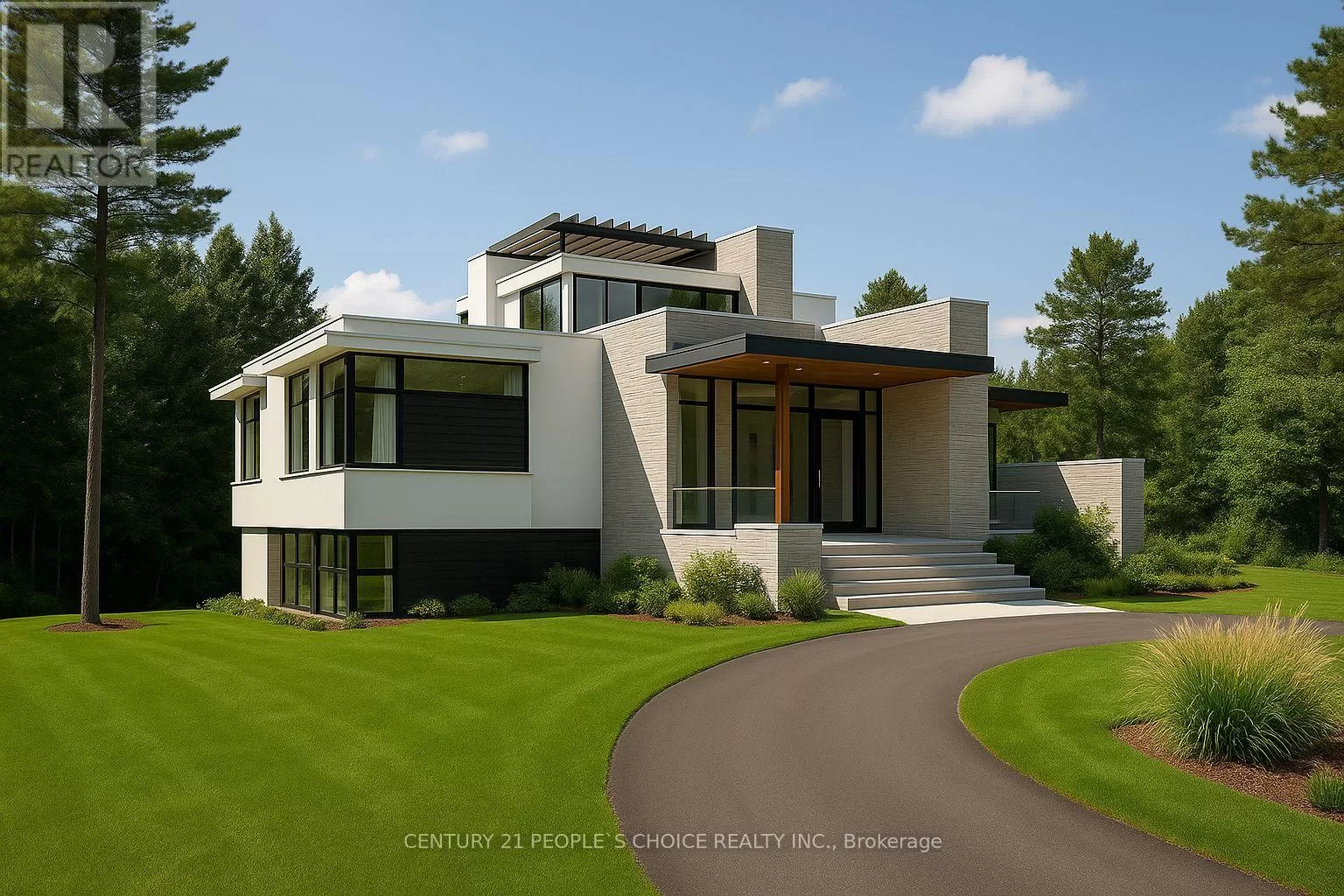 Highway9/17th Line Experience modern country living at its finest in this stunning brand new luxury estate, To be built on a private, natural 100-acre property with a breathtaking 35-acre artesian-fed lake. Thoughtfully designed and masterfully built, this approx. 3,000 sq. ft. bungalow with a fully finished walk-out lower level offers over 5,200 sq. ft. of premium living space, blending elegance, comfort, and nature in perfect harmony. Home Highlights: ---4+2 bedrooms | 5 bathrooms including 3 private ensuites -- Open-concept great room with 14 ceilings, custom fireplace, and wall-to-wall windows overlooking the water ---Chefs kitchen with oversized island, high-end appliances, and walk-in pantry --- Elegant dining room and lounge perfect for entertaining---Main-floor primary suite with spa-like ensuite, glass shower & standalone tub ---Finished lower level includes media room, bar, sauna, and 2 more bedrooms--- Covered porches and expansive decks to enjoy---Oversized 2+ car garage, steel and engineered construction, premium finishes throughout Outdoor & Property Features: ---Situated on a rare 100-acre natural oasis---Private access to a 35-acre lake ideal for paddle boarding, fishing, and swimming ---Surrounded by mature forest and wildlife. (id:27476)