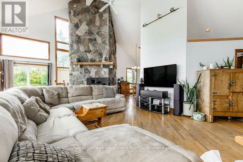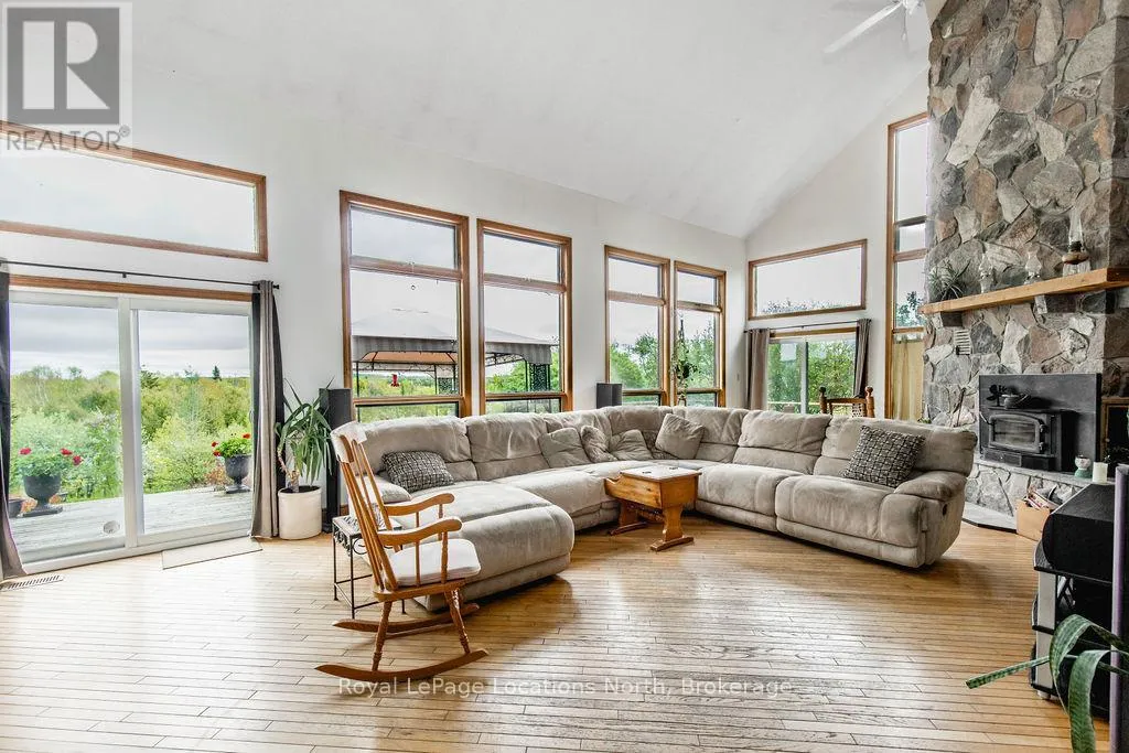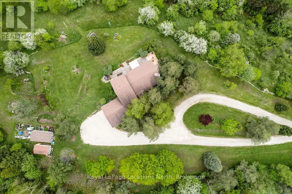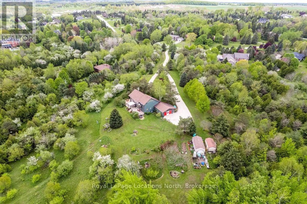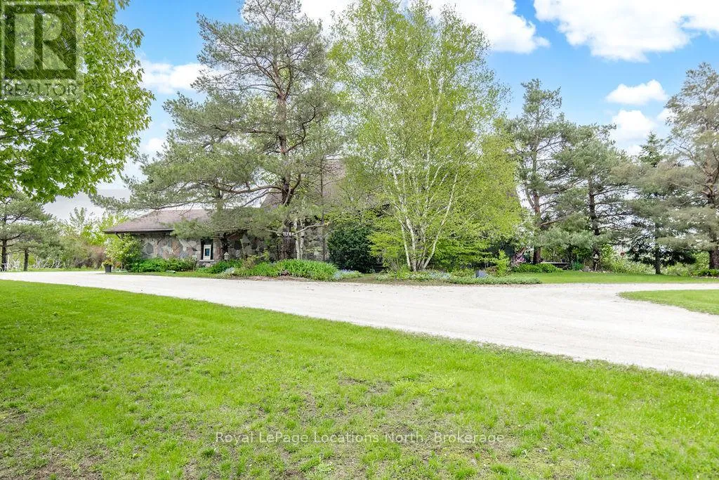 Cross Streets: A Line/ Old Carriage Rd. ** Directions: Orangeville-Fergus Road to A Line to Old Carriage Road. Rare FIND- Prestigious Estate Living on Nearly 10 Acres in Garafraxa Woods. Welcome to your private country retreat in the highly sought-after Garafraxa Woods estate community-just 5 minutes from the heart of Orangeville. Set on an impressive 9.23-acre lot, this custom home is nestled down a long, winding driveway and perched atop a hill, offering breathtaking views of the rolling countryside.Surrounded by mature trees and scenic trails, the property is perfect for four-wheeling, hiking, snowshoeing, and enjoying year-round outdoor adventures. The stone and cedar exterior blends beautifully with the natural surroundings, while the interior is filled with warmth and character.Inside, you'll find 3+1 bedrooms, 4 bathrooms, and an inviting open-concept design featuring cathedral ceilings, floor-to-ceiling windows, and a large 3-sided wood-burning stone fireplace as the heart of the home. Rich wood floors flow throughout, creating a cozy yet upscale feel.The spacious primary suite is located on the private third floor, complete with an ensuite bathroom, while two additional bedrooms and a 4-piece bath are conveniently located on the main level. The finished lower level offers a walk-up, a separate bedroom, bathroom, kitchenette, rec room with pool table and sauna - making it ideal for extended family, guests, or in-law potential. There's also a large pool table room and plenty of storage. An attached 2-car garage provides access to both the basement and the laundry/mudroom. Walkout decks overlook the expansive property, perfect for relaxing or entertaining. The home also benefits from a newly installed gas line.This is more than a home, it's a lifestyle. If you're looking for space, privacy, and a connection to nature without sacrificing proximity to town, this exceptional estate delivers it all. Opportunities like this in Garafraxa Woods are rare - don't miss your chance. (id:27476)