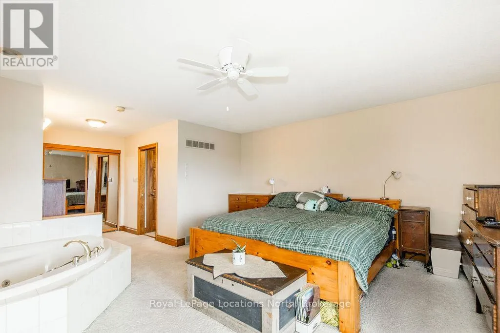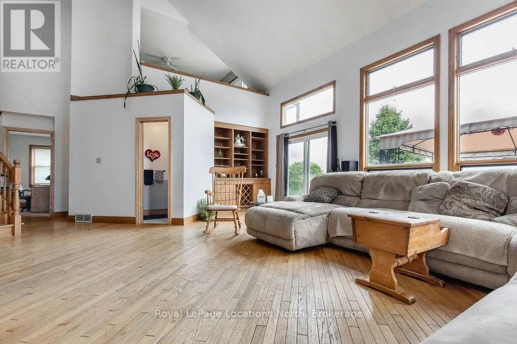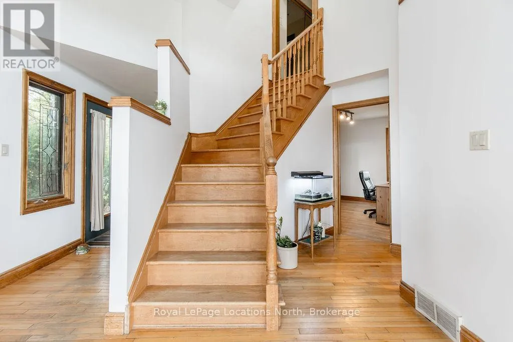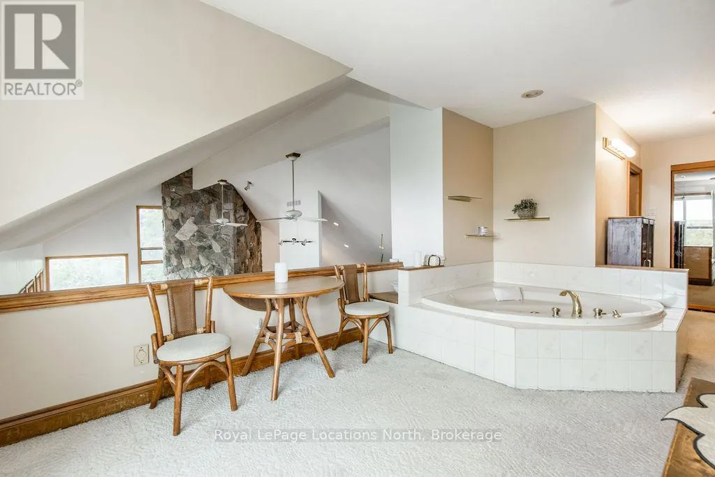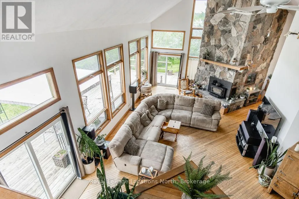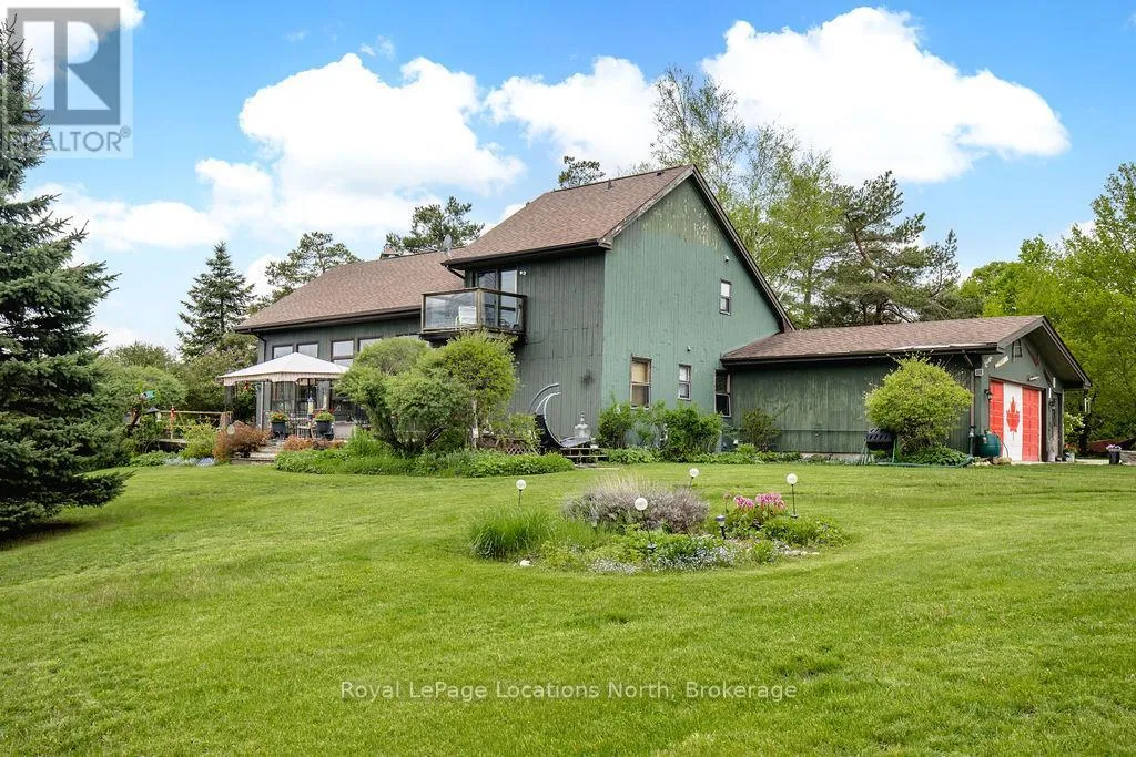 Cross Streets: A Line/ Old Carriage Rd. ** Directions: Orangeville-Fergus Road to A Line to Old Carriage Road. Rare FIND- Prestigious Estate Living on Nearly 10 Acres in Garafraxa Woods. Welcome to your private country retreat in the highly sought-after Garafraxa Woods estate community-just 5 minutes from the heart of Orangeville. Set on an impressive 9.23-acre lot, this custom home is nestled down a long, winding driveway and perched atop a hill, offering breathtaking views of the rolling countryside.Surrounded by mature trees and scenic trails, the property is perfect for four-wheeling, hiking, snowshoeing, and enjoying year-round outdoor adventures. The stone and cedar exterior blends beautifully with the natural surroundings, while the interior is filled with warmth and character.Inside, you'll find 3+1 bedrooms, 4 bathrooms, and an inviting open-concept design featuring cathedral ceilings, floor-to-ceiling windows, and a large 3-sided wood-burning stone fireplace as the heart of the home. Rich wood floors flow throughout, creating a cozy yet upscale feel.The spacious primary suite is located on the private third floor, complete with an ensuite bathroom, while two additional bedrooms and a 4-piece bath are conveniently located on the main level. The finished lower level offers a walk-up, a separate bedroom, bathroom, kitchenette, rec room with pool table and sauna - making it ideal for extended family, guests, or in-law potential. There's also a large pool table room and plenty of storage. An attached 2-car garage provides access to both the basement and the laundry/mudroom. Walkout decks overlook the expansive property, perfect for relaxing or entertaining. The home also benefits from a newly installed gas line.This is more than a home, it's a lifestyle. If you're looking for space, privacy, and a connection to nature without sacrificing proximity to town, this exceptional estate delivers it all. Opportunities like this in Garafraxa Woods are rare - don't miss your chance. (id:27476)