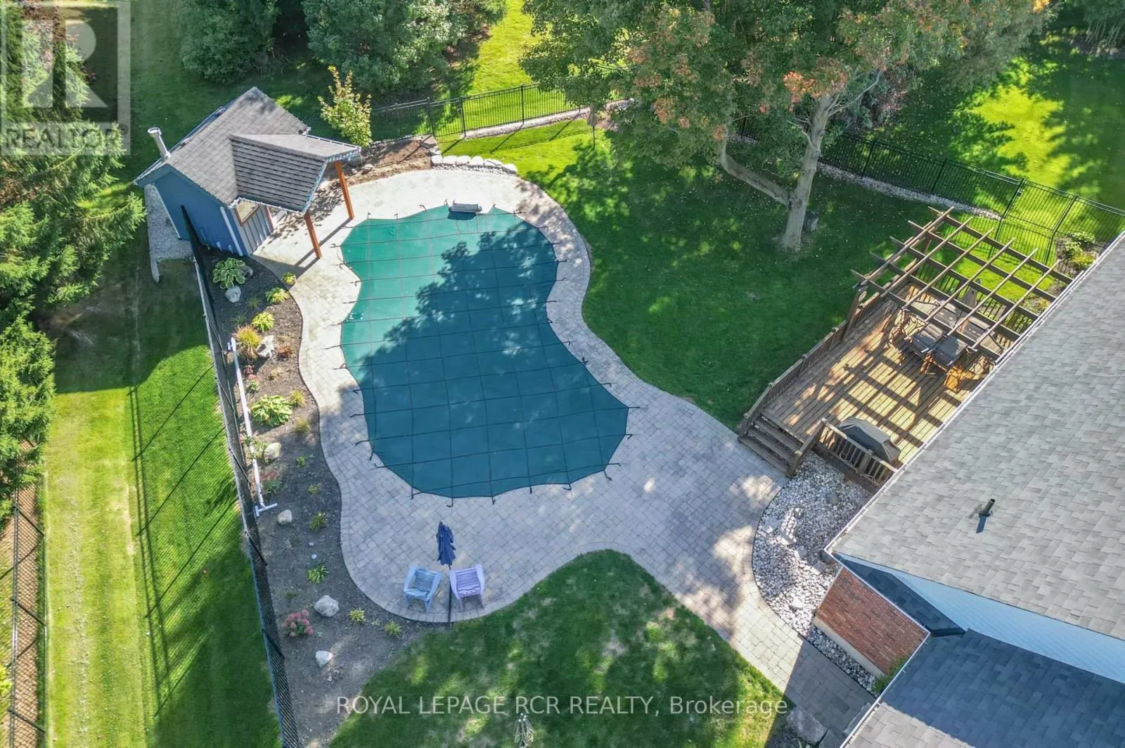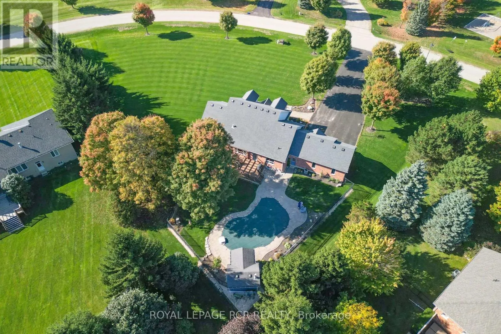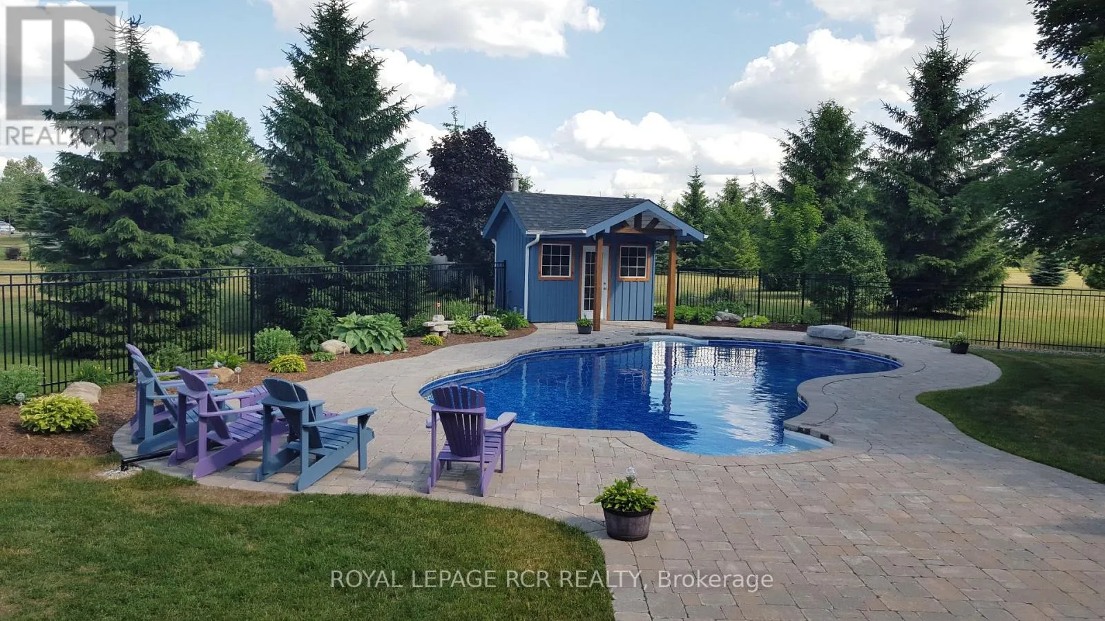 Caledon/East Garafraxa Townline & A Line Pride of ownership, meticulously maintained, loads of updates & an entertainers dream are just some words to describe this fantastic bungalow in peaceful Rayburn Meadows. Outside, situated on 1.2 acres, you'll find a lawn like a golf course, manicured perennial gardens, stone walkway, covered front porch, tree lined driveway with parking for 10+ vehicles plus insulated 3 car garage & huge side yard for outdoor activities. It gets even better in the back yard oasis, with a gorgeous 18X36 inground saltwater pool (steps in shallow & deep end), lg back deck for outdoor dining, stone patio areas for relaxing, more gardens, pool house & towering mature trees. Upon entering the large foyer w/slate flooring, you'll notice the bright & airy main floor boasting 9 ceilings, newer honed oak hardwood flooring throughout, new oak/wrought iron railing, & updated lighting. The flow of the upper level is amazing! A formal dining rm leads to a main floor office/den. For entertaining friends & family-the open concept living room overlooking backyard features fireplace w/stone surround combined w/newer custom Barzotti kitchen that walks out to deck with huge center island with plenty of seating, granite counters, floor to ceiling cabinets w/lighted accents, pot drawers, backsplash, undermount lighting, stainless steel appliances, & more cupboard space you could ask for. 3 spacious bdrms, all with double closets, 4 pc main bath & primary 4-piece ensuite both with new vanities/granite counters. Large mudrm/laundry rm w/shelving, b/i cabinets access to the 3-car garage. The fully finished lower level has another large bedroom, exercise room (or guest bedroom), 4 pc bath, pot lights, AG windows for loads of natural light, & for even more entertaining space or a teenager retreat, a massive games rm & cozy theatre rm w/sound system & yet another gas fireplace w/stone surround. 44 Rayburn is a perfect home for any large family with plenty of updated usable space for everyone - inside and out! (id:27476)