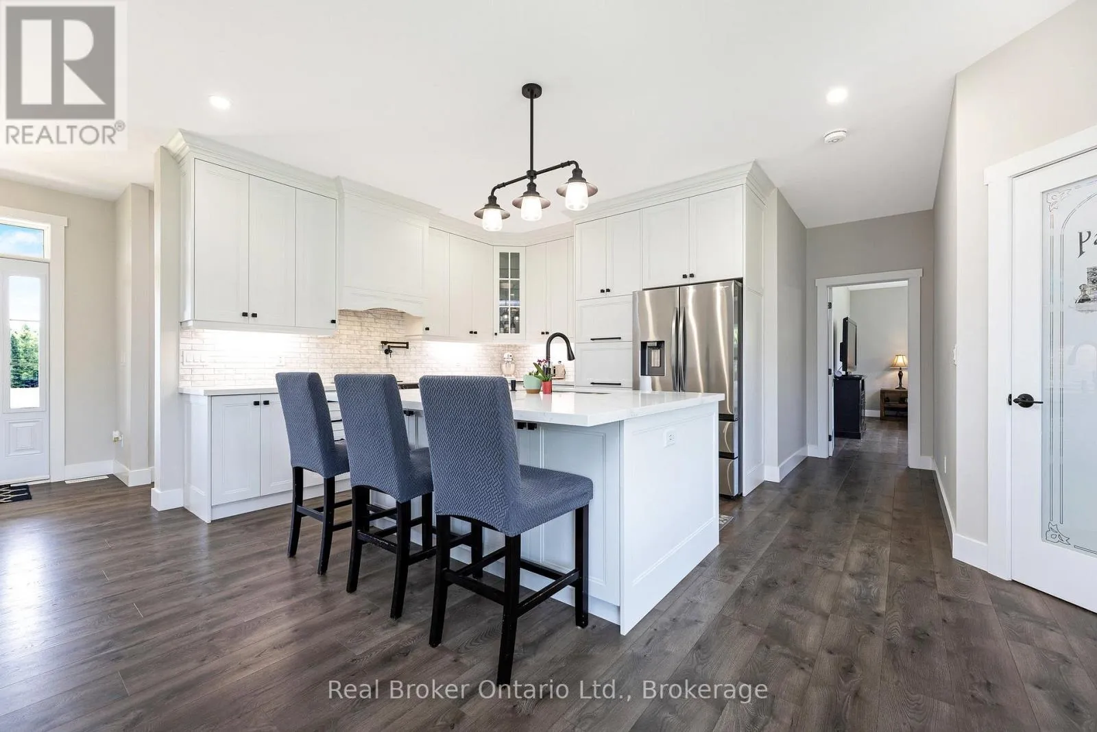 Cross Streets: 13th Line & Sideroad 15. ** Directions: Dufferin Road 5 to 15th Sideroad. This stunning custom-built bungalow is nestled on a peaceful 1.25-acre lot, offering modern living in a tranquil country setting. Just under two years old, the home boasts an open-concept floor plan featuring a bright kitchen with custom backsplash, stainless steel appliances, pot filler & large island, seamlessly overlooking the living and dining areas. Expansive windows flood the main living space with natural light and offer beautiful views of the surrounding landscape. The thoughtfully designed layout offers privacy with the spacious primary bedroom located on one side of the home, complete with a luxurious ensuite with heated floor and walk-in closet. Two additional bedrooms are situated on the opposite side, perfect for family or guests. Enjoy convenient access from the oversized 3-car garage into a private mudroom, complete with a laundry room and powder room. The garage features 11'6" ceilings, drywall finish, one extended-depth bay, and three garage door openers with remotes. The basement has been thoughtfully laid out for a potential in-law suite, featuring two bedrooms (one currently used as a gym), a large roughed-in bathroom, and a spacious open area with plumbing and electrical ready for a kitchen or wet bar. A separate entrance from the garage and large windows provide natural light and functionality. Mature trees line two sides of the lot, with additional maple trees recently planted along 15th Sideroad for enhanced privacy and picturesque views. Only a short drive to Orangeville! (id:27476)