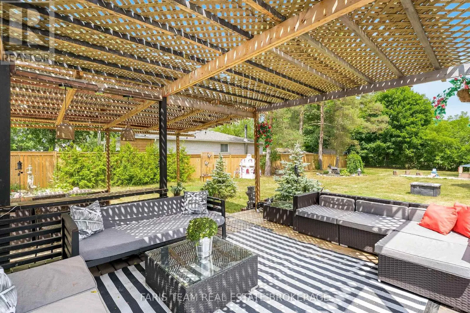 Oriole Dr/Park Ave Top 5 Reasons You Will Love This Home: 1) This updated bungalow features a separate entrance to the partially finished basement, adding even more flexibility and presenting the ideal opportunity to create an in-law suite, rental space, or personalized extension of your living area 2) Set on a generous lot, this delightful bungalow combines charm and versatility, offering a peaceful retreat surrounded by mature trees, perfect for those who value both privacy and proximity to amenities 3) Take comfort in knowing that various upgrades have already been completed, including a new furnace and heat pump (2024) for improved efficiency and lower utility costs, central A/C (2024), updated windows (2021), and a brand-new roof (2024), ensuring lasting peace of mind 4) Designed with everyday living in mind, the refreshed kitchen flows effortlessly into the dining and living spaces, creating an inviting, open layout ideal for gatherings, where modern touches include a white tile backsplash, peninsula seating, recessed lighting, and newer vinyl flooring throughout 5) Step into the outdoors and discover a spacious backyard oasis featuring a large deck and pergola, perfect for hosting summer get-togethers, sipping your morning coffee, or simply relaxing in total privacy. 1,044 above grade sq.ft. plus a partially finished basement. (id:27476)