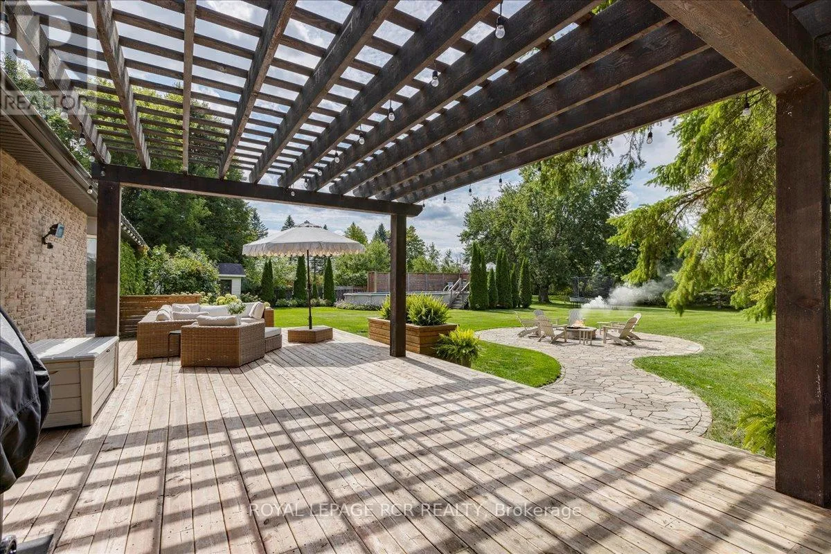 Mount Albert Road and Ninth Line Welcome to your private retreat nestled on a quiet street backing onto a serene ravine, with nearby walking trails. Sitting on a picturesque 1 acre lot, this beautifully updated home offers the perfect blend of nature, privacy, and modern comfort. The entire upper level has been thoughtfully renovated, showcasing an open concept with a double sided gas fireplace with contemporary finishes and an inviting layout perfect for family living and entertaining, including main floor laundry with access to heated 2-car garage. Total living space of almost 4,000 sqft which includes the finished basement providing incredible flexibility with nanny suite potential with 2 additional bedrooms and a 4 piece bath and ample space for extended family or guests. Step outside to your backyard oasis - a massive, fully private outdoor space featuring a sparkling pool, a spacious 56ft x 16ft deck with custom built pergola with a walking path to a new fire pit area, and a functional work shed for hobbies or storage. Whether you're relaxing poolside, entertaining under the stars, or exploring the surrounding nature trails, this property offers a rare lifestyle opportunity. The home is on Town water and natural gas and is only 14 minutes from the 404 hwy. Don't miss your chance to own this incredible home in an unbeatable setting. Gas furnace owned (2019), backyard deck and fire pit (2020), front composite deck (2020), shingles (2016), eaves and downspouts (2020). (id:27476)