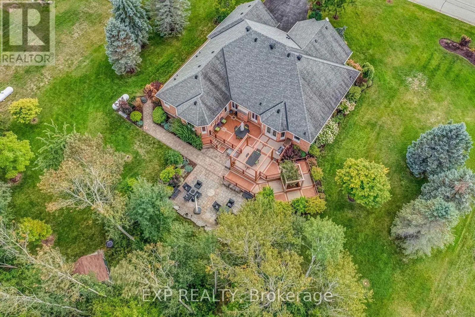 McCowan Road + Manor Ridge Trail Situated on a professionally landscaped and exceptionally private 1.75 acre lot backing onto a serene woodland setting, this remarkable residence offers a rare combination of sophistication, comfort, and natural beauty. Mature trees and lush greenery create a peaceful backdrop, providing both privacy and a true sense of retreat.The main floor is bathed in natural light, with oversized windows and French doors that enhance the home's bright, airy atmosphere. A thoughtfully designed floor plan offers multiple, well proportioned living spaces, perfectly suited for elegant entertaining, family gatherings, or relaxed everyday living. The seamless connection between indoor and outdoor spaces allows the surrounding landscape to become an extension of the home itself. Step outside to a custom Trex deck featuring refined slate inlays and multiple seating areas, ideal for hosting, dining, or simply enjoying the tranquil views of the wooded setting. The outdoor space is designed for both beauty and functionality, offering privacy without sacrificing openness. Inside, the home showcases sun filled interiors, soaring ceiling heights, and a refined flow that emphasizes space and comfort throughout. Additional premium features include a triple car garage, an expansive double driveway accommodating up to eight vehicles, a Generac backup power system for peace of mind, an inground lawn sprinkler system, and a selection of highend finishes and systems typically reserved for the finest estate homes. This property delivers an exceptional lifestyle defined by quality, privacy, and timeless appeal. (id:27476)