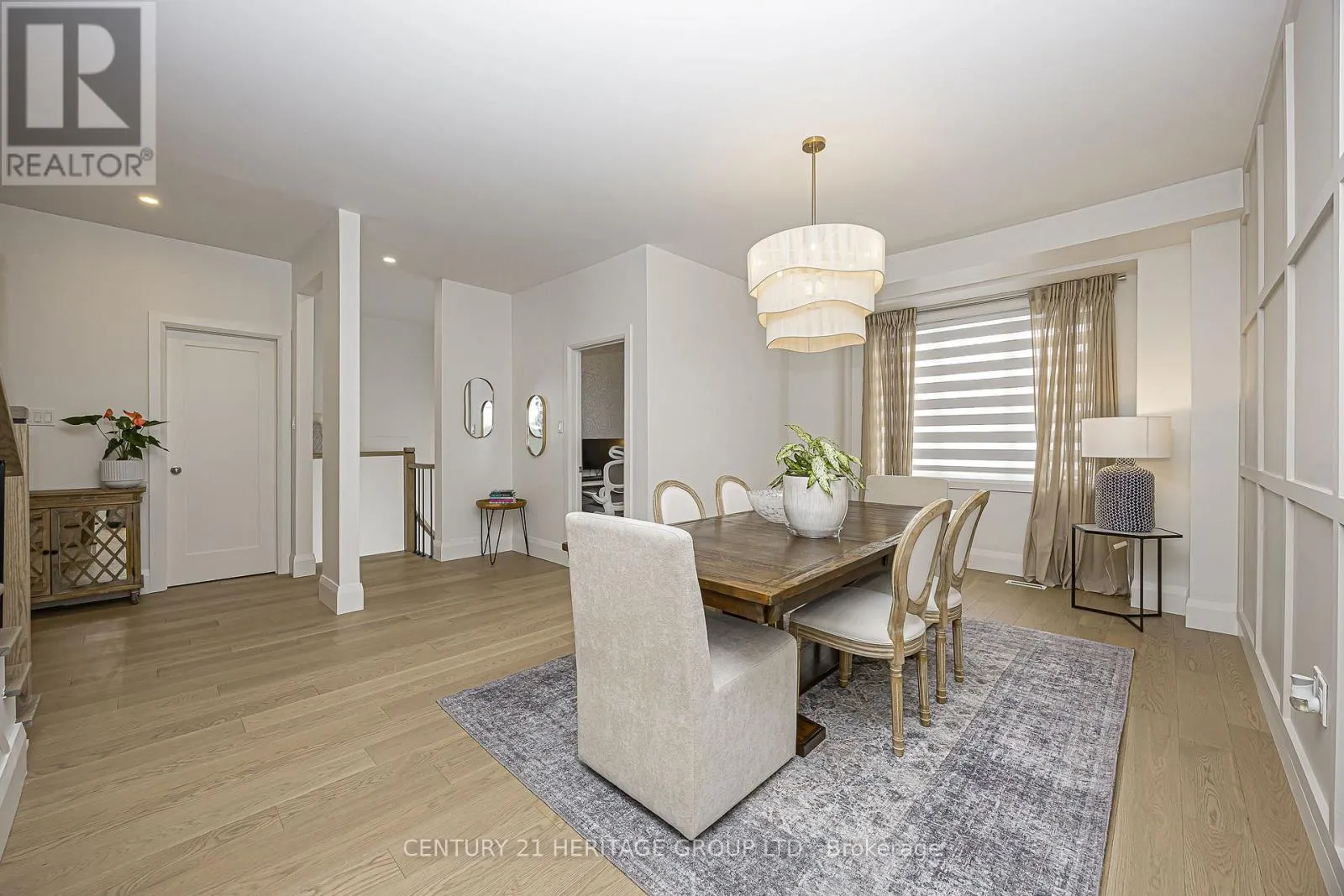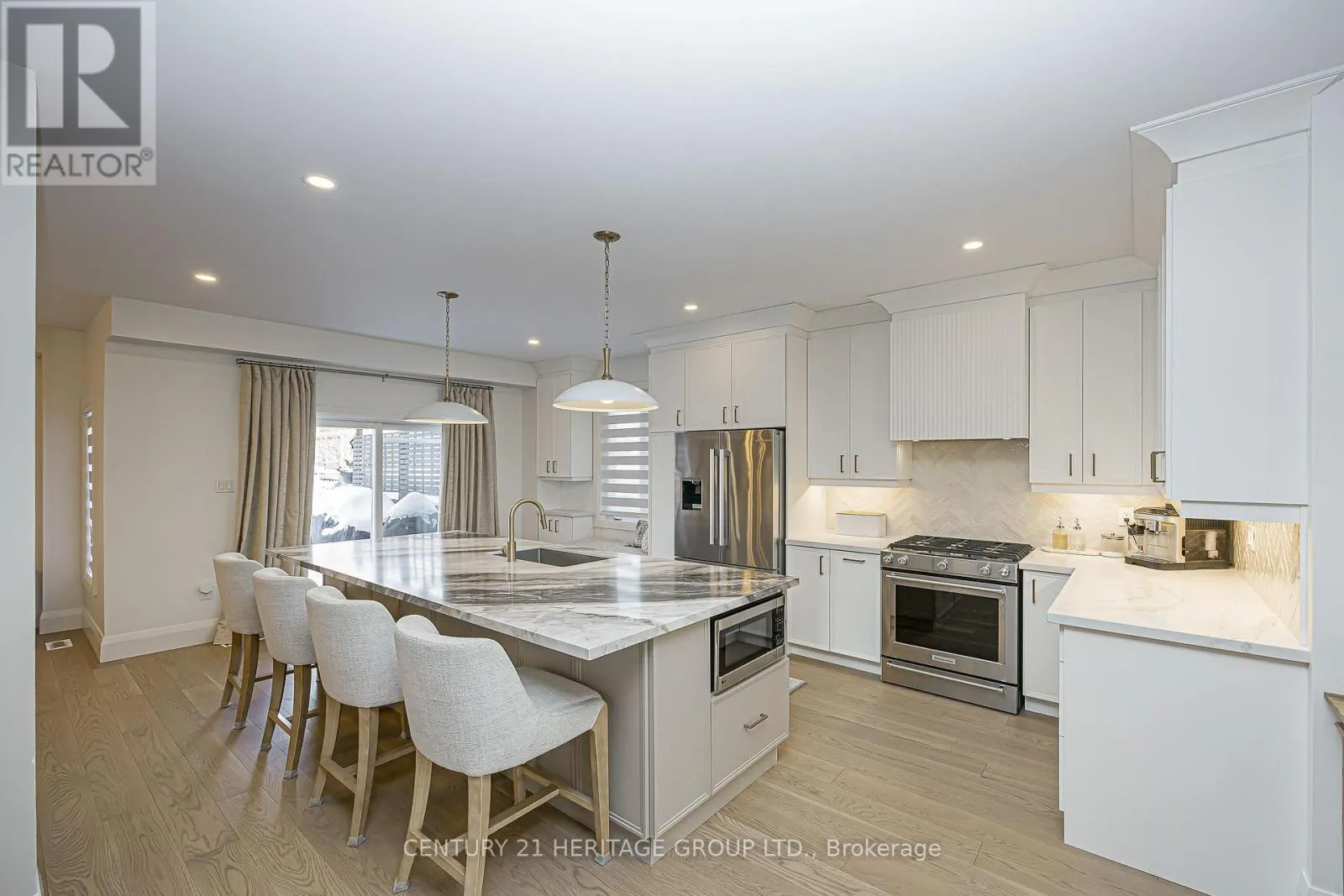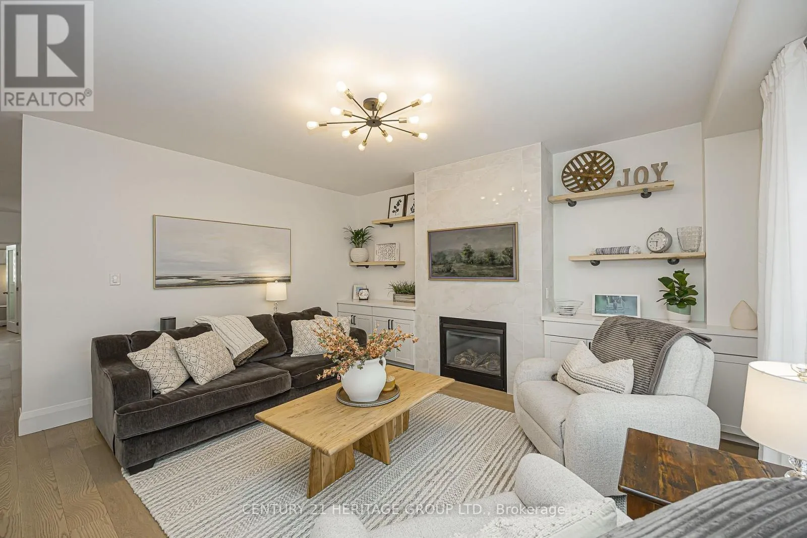 Cross Streets: Ninth Line- Vivian Creek Rd. ** Directions: Ninth Line- Vivian Creek Rd -Ridge Gate Cres. This beautifully updated 4 bedroom home offers thoughtfully designed living spaces & exceptional functionality. A charming covered front porch welcomes you inside to a bright, airy foyer with soaring ceilings. At the heart of the home is the stunning modern kitchen, showcasing custom cabinetry, a stylish backsplash, under-cabinet lighting, stainless steel appliances, quartz countertops & an impressive oversized center island with breakfast bar & pendant lighting. A walkout from the kitchen provides seamless access to the backyard, perfect for indoor-outdoor dining. The dining room offers an inviting space for family meals & special gatherings. The living room features a cozy gas fireplace flanked by custom built-ins & a large window overlooking the backyard. A convenient main-floor office is ideal for working from home, while a 2 piece powder room completes this level. The upper level boasts a spacious primary suite with a large walk-in closet & a spa-inspired ensuite featuring a double-sink vanity & a glass-enclosed shower with dual rain showerheads & handheld sprayers. Three additional generously sized bedrooms-one with a built-in bunk bed-offer ample closet space & large windows & share a well-appointed 4 piece bath. Just a few steps down from the main floor, the laundry room is thoughtfully equipped with cabinetry, a folding table, laundry sink & storage closet. The fully finished basement includes a comfortable recreation room with durable vinyl plank flooring, a 2 piece bathroom, & plenty of storage space. A practical mudroom on the lower level features tile flooring, a double closet & walkout access to the garage. The fully fenced backyard offers a deck & gardens, creating an ideal setting for relaxing or entertaining during warmer months. Extensively renovated & truly move-in ready, this home combines modern comfort with family-friendly living in a sought-after location. See attached list of updates. (id:27476)
