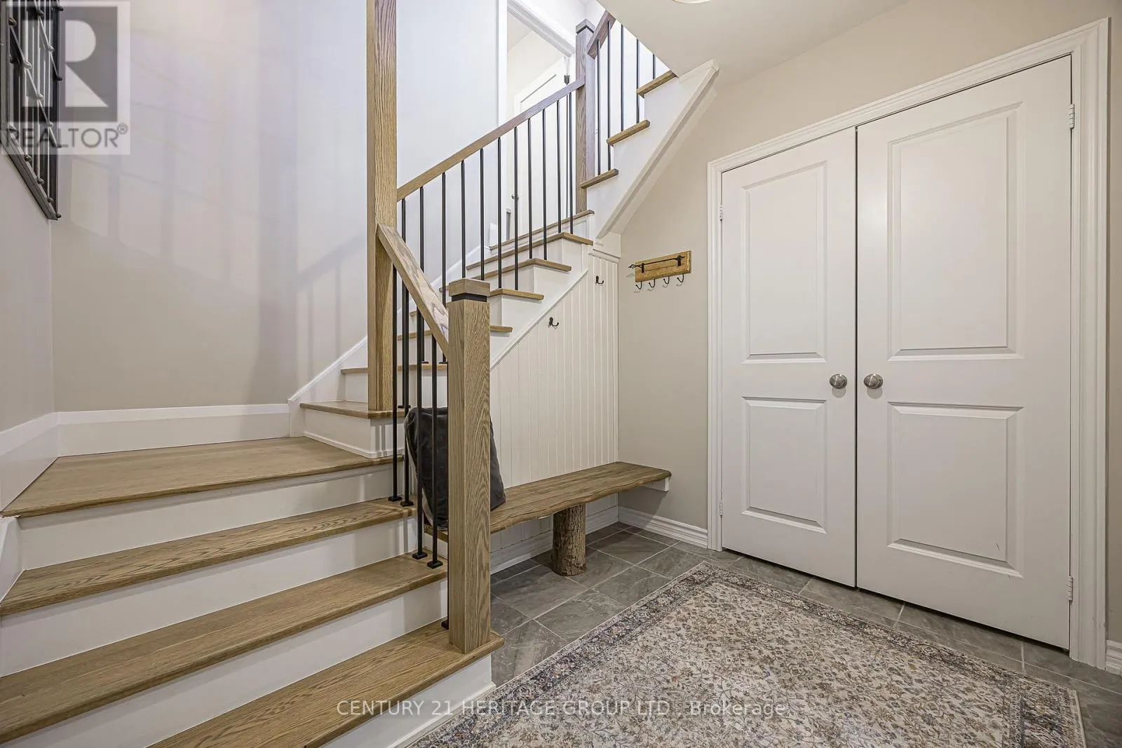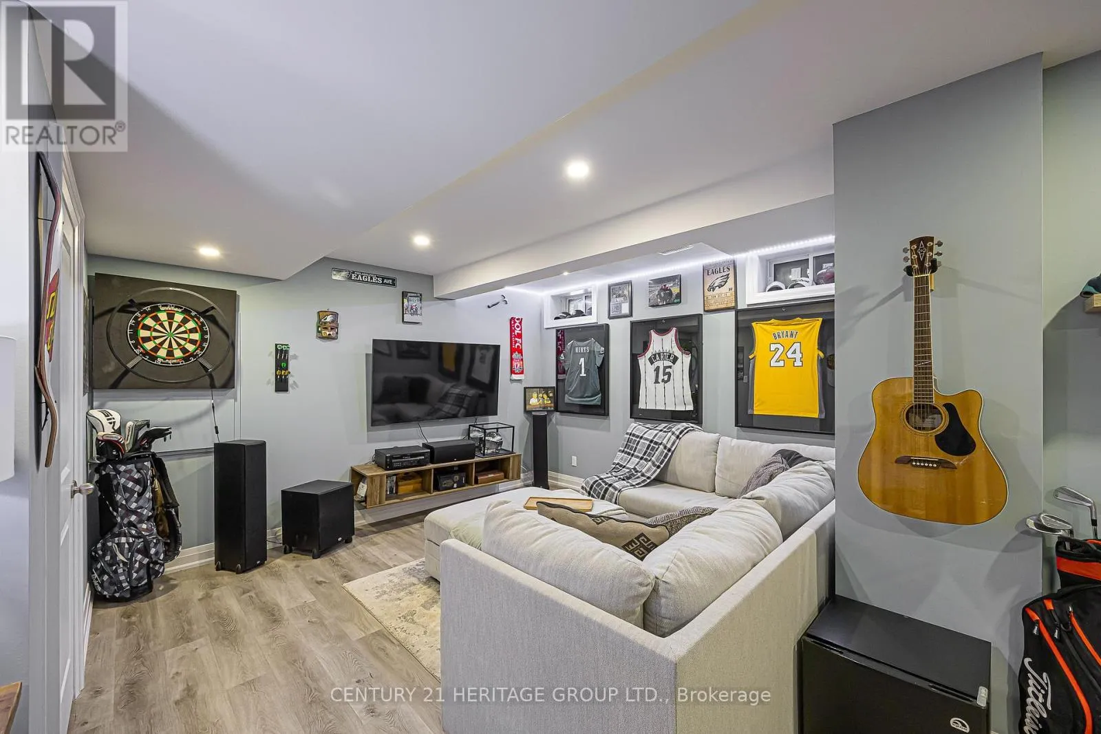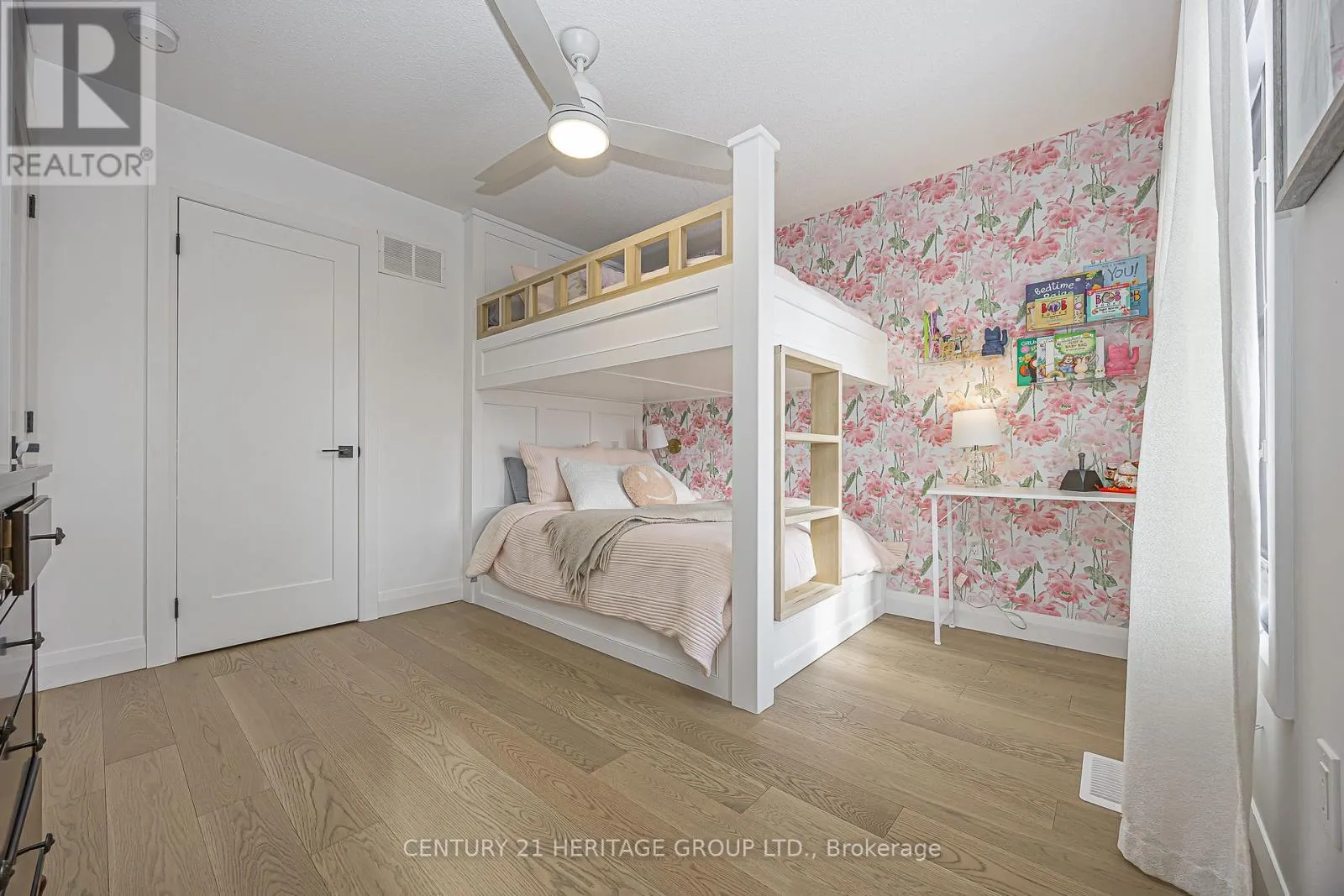 Cross Streets: Ninth Line- Vivian Creek Rd. ** Directions: Ninth Line- Vivian Creek Rd -Ridge Gate Cres. This beautifully updated 4 bedroom home offers thoughtfully designed living spaces & exceptional functionality. A charming covered front porch welcomes you inside to a bright, airy foyer with soaring ceilings. At the heart of the home is the stunning modern kitchen, showcasing custom cabinetry, a stylish backsplash, under-cabinet lighting, stainless steel appliances, quartz countertops & an impressive oversized center island with breakfast bar & pendant lighting. A walkout from the kitchen provides seamless access to the backyard, perfect for indoor-outdoor dining. The dining room offers an inviting space for family meals & special gatherings. The living room features a cozy gas fireplace flanked by custom built-ins & a large window overlooking the backyard. A convenient main-floor office is ideal for working from home, while a 2 piece powder room completes this level. The upper level boasts a spacious primary suite with a large walk-in closet & a spa-inspired ensuite featuring a double-sink vanity & a glass-enclosed shower with dual rain showerheads & handheld sprayers. Three additional generously sized bedrooms-one with a built-in bunk bed-offer ample closet space & large windows & share a well-appointed 4 piece bath. Just a few steps down from the main floor, the laundry room is thoughtfully equipped with cabinetry, a folding table, laundry sink & storage closet. The fully finished basement includes a comfortable recreation room with durable vinyl plank flooring, a 2 piece bathroom, & plenty of storage space. A practical mudroom on the lower level features tile flooring, a double closet & walkout access to the garage. The fully fenced backyard offers a deck & gardens, creating an ideal setting for relaxing or entertaining during warmer months. Extensively renovated & truly move-in ready, this home combines modern comfort with family-friendly living in a sought-after location. See attached list of updates. (id:27476)