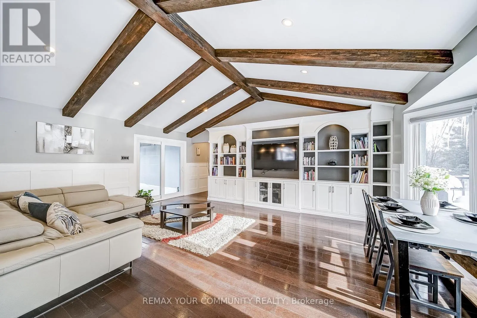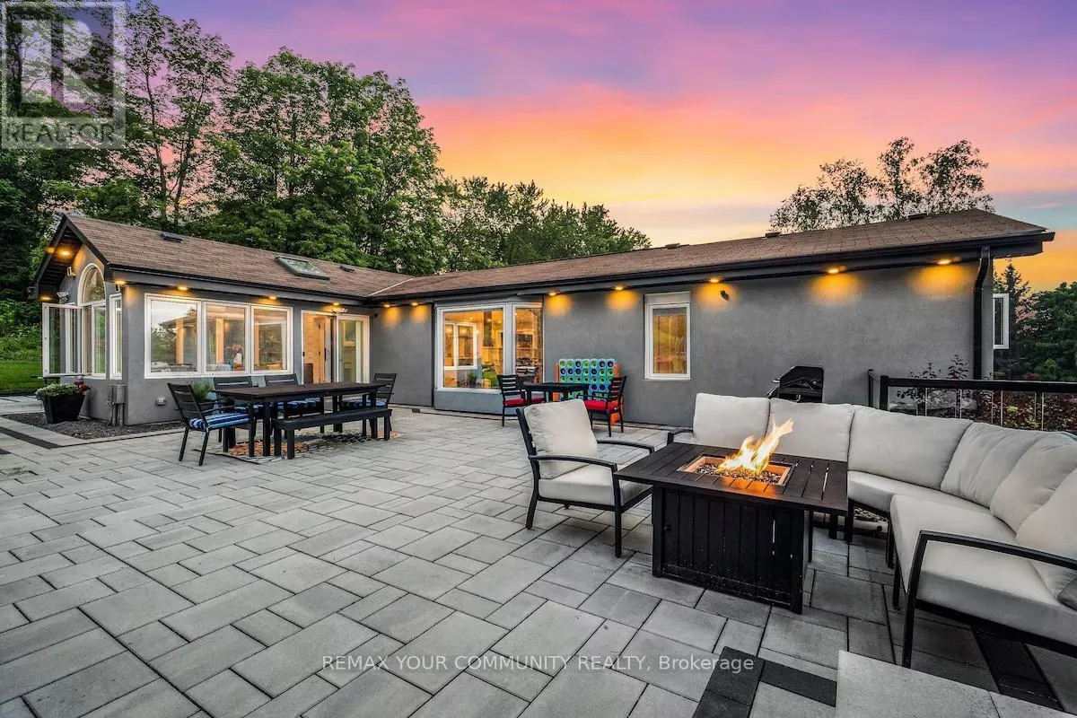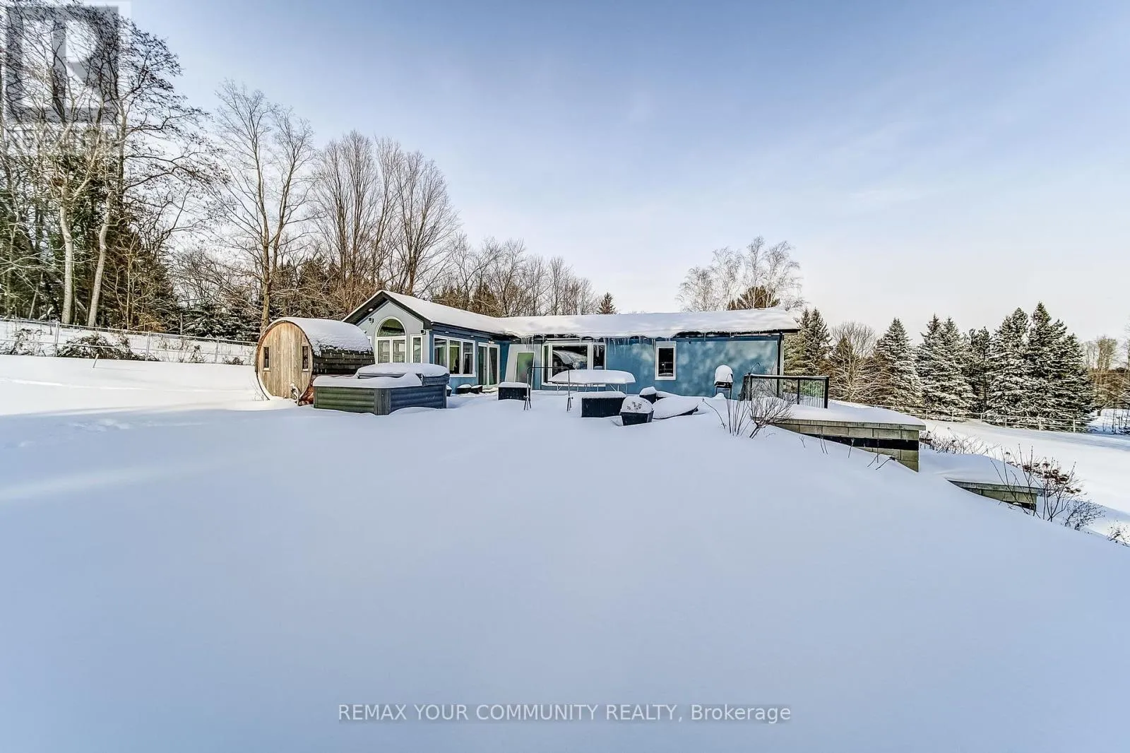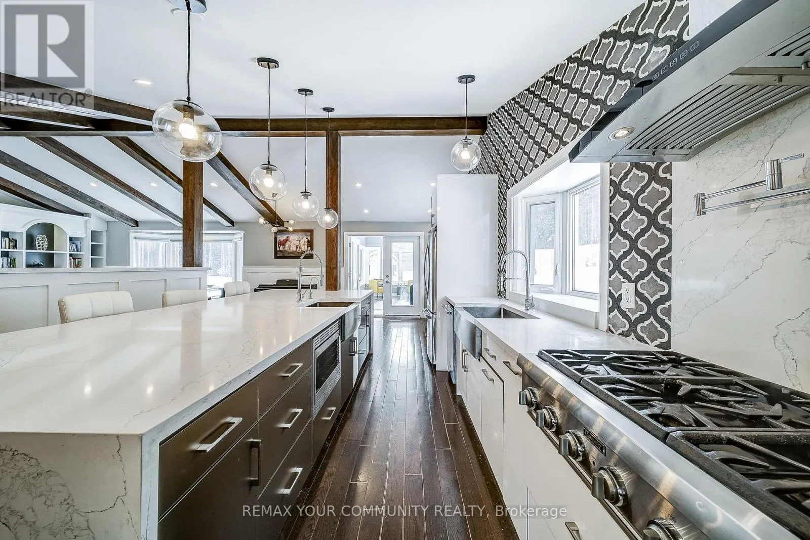 Cross Streets: Kennedy and Mount Albert and Warden. ** Directions: Woodbine to Mount Albert. Discover serene, resort-style living just minutes from city conveniences. Set on a private 10-acre wooded estate, this renovated open-concept bungalow offers exceptional seclusion, tranquility, and space to unwind. The expansive outdoor setting is designed for relaxation and recreation, featuring an oversized patio for alfresco dining, hot tub, outdoor sauna, tranquil reading area, and a separate artist's studio. Meandering trails wind through your own private forest, creating a true nature retreat. Inside, the home showcases approximately 2,400 sq. ft. of beautifully updated living space, plus an unfinished walkout basement with endless potential. The modern chef's kitchen is the heart of the home, highlighted by a large quartz island ideal for entertaining, meal prep, or casual dining. Premium appliances include a Thermador double wall oven, gas cooktop with pot filler, LG smudge-resistant refrigerator with ThinQ technology, and dual stainless steel apron sinks. Luxurious finishes continue throughout with heated floors, custom blinds, built-in cabinetry in the family room, wainscoting on the main floor, and spa-inspired bathrooms. Recent upgrades include a new kitchen and bathrooms, heated floors in the entrance and bathroom, and extensive landscaping. Ideally located minutes to Sharon, Newmarket, and Highway 404, this exceptional property offers privacy, comfort, and refined country living with city access. (id:27476)
