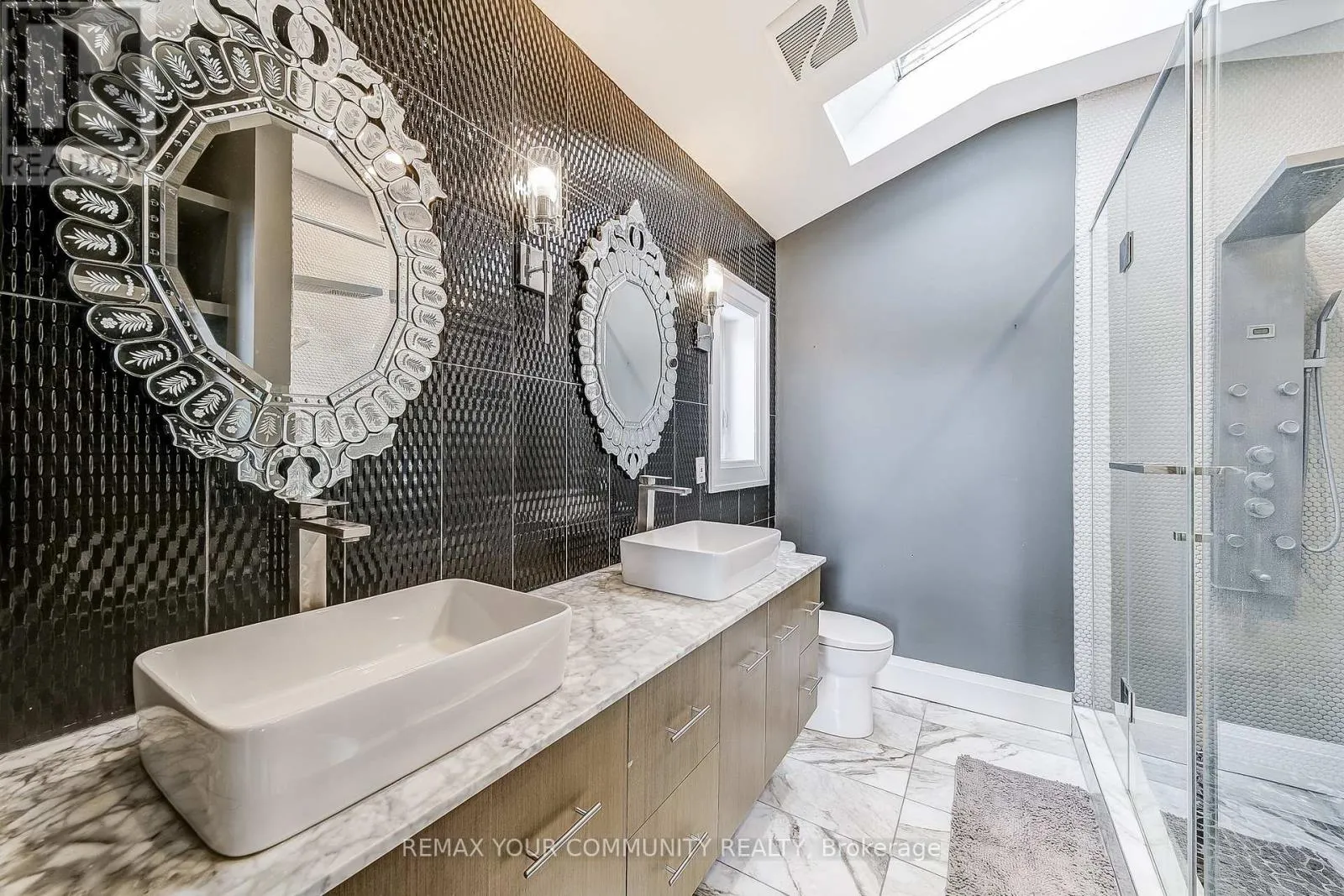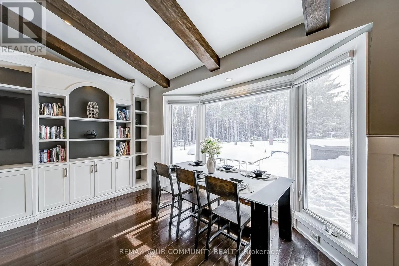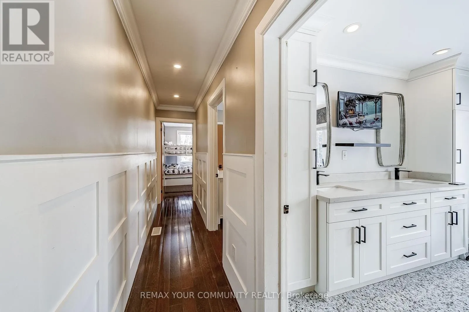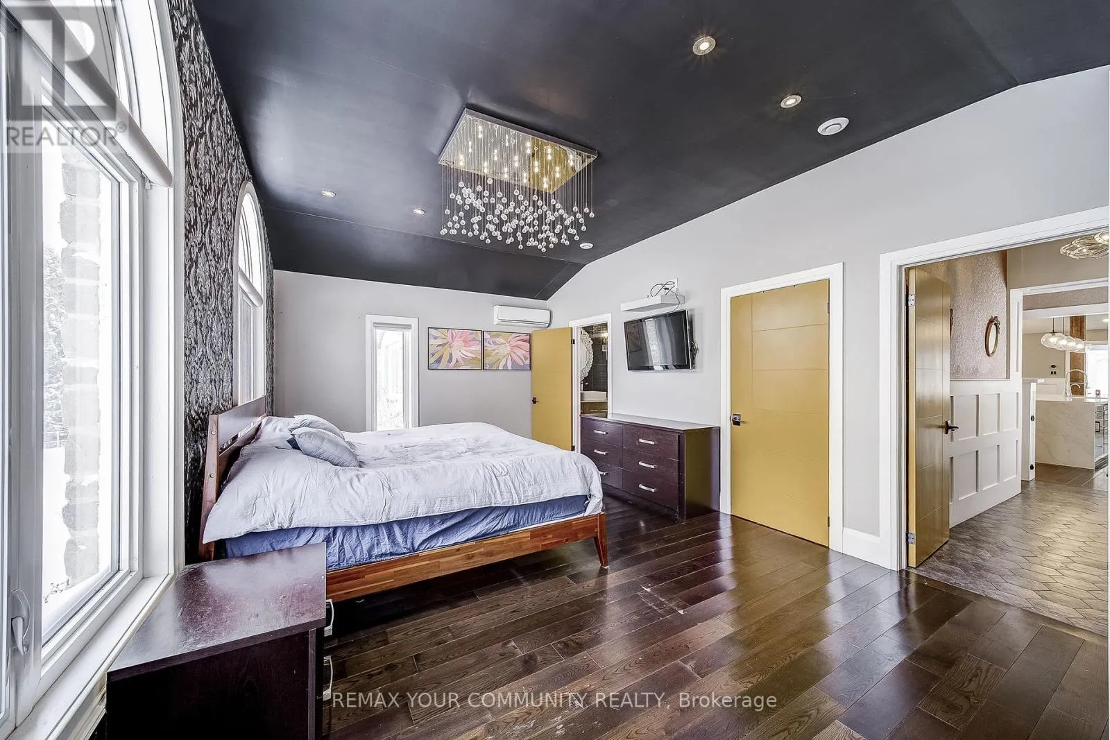 Cross Streets: Kennedy and Mount Albert and Warden. ** Directions: Woodbine to Mount Albert. Discover serene, resort-style living just minutes from city conveniences. Set on a private 10-acre wooded estate, this renovated open-concept bungalow offers exceptional seclusion, tranquility, and space to unwind. The expansive outdoor setting is designed for relaxation and recreation, featuring an oversized patio for alfresco dining, hot tub, outdoor sauna, tranquil reading area, and a separate artist's studio. Meandering trails wind through your own private forest, creating a true nature retreat. Inside, the home showcases approximately 2,400 sq. ft. of beautifully updated living space, plus an unfinished walkout basement with endless potential. The modern chef's kitchen is the heart of the home, highlighted by a large quartz island ideal for entertaining, meal prep, or casual dining. Premium appliances include a Thermador double wall oven, gas cooktop with pot filler, LG smudge-resistant refrigerator with ThinQ technology, and dual stainless steel apron sinks. Luxurious finishes continue throughout with heated floors, custom blinds, built-in cabinetry in the family room, wainscoting on the main floor, and spa-inspired bathrooms. Recent upgrades include a new kitchen and bathrooms, heated floors in the entrance and bathroom, and extensive landscaping. Ideally located minutes to Sharon, Newmarket, and Highway 404, this exceptional property offers privacy, comfort, and refined country living with city access. (id:27476)