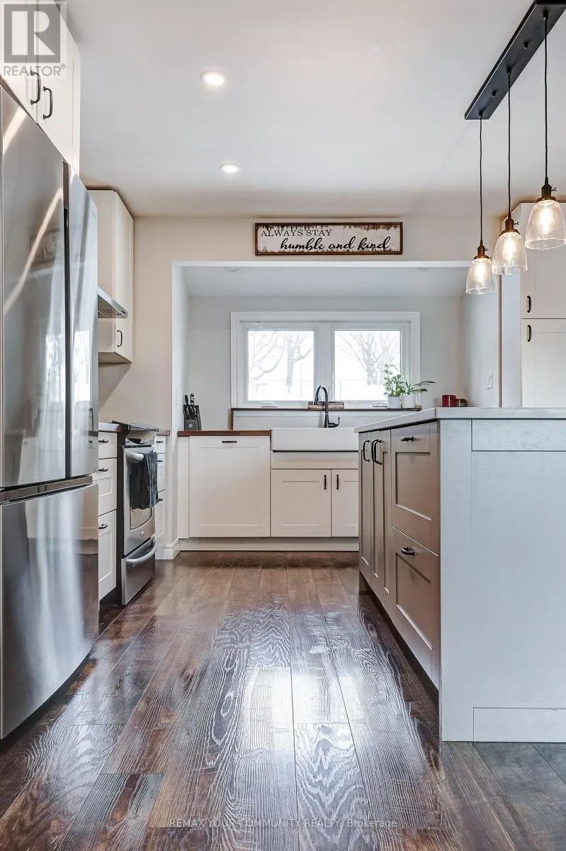 Holland River Blvd / Thomas Shepperd Nestled on a quiet cul-de-sac with direct access to the beautiful Nokidaa Trail, this fully refinished and updated home sits on a private fenced 140' lot and offers flexible living for families of all sizes. The bright main level features an open-concept kitchen, dining, and living area designed for comfortable everyday living and effortless entertaining. The renovated kitchen showcases stainless steel appliances, quartz and butcher block counters, and a large centre island with breakfast bar. An oversized picture window fills the space with natural light, while built-in bookshelves and a cozy gas fireplace add warmth and character. The dining area opens through garden doors to a newly constructed deck, perfect for morning coffee or summer evenings overlooking the spacious backyard. Three bedrooms are located on the main level, including a primary suite with wall-to-wall closets and private access to the deck. The fully above-grade entry level adds exceptional versatility with two additional bedrooms, a 4-piece bath, and a spacious great room with kitchen facilities, ideal for extended family, guests, or potential in-law accommodation. Move-in ready and conveniently located close to schools, shopping, transportation, and highway access. Enjoy the perfect balance of privacy, nature, and everyday convenience. View the virtual tour for photos and floor plans. (id:27476)