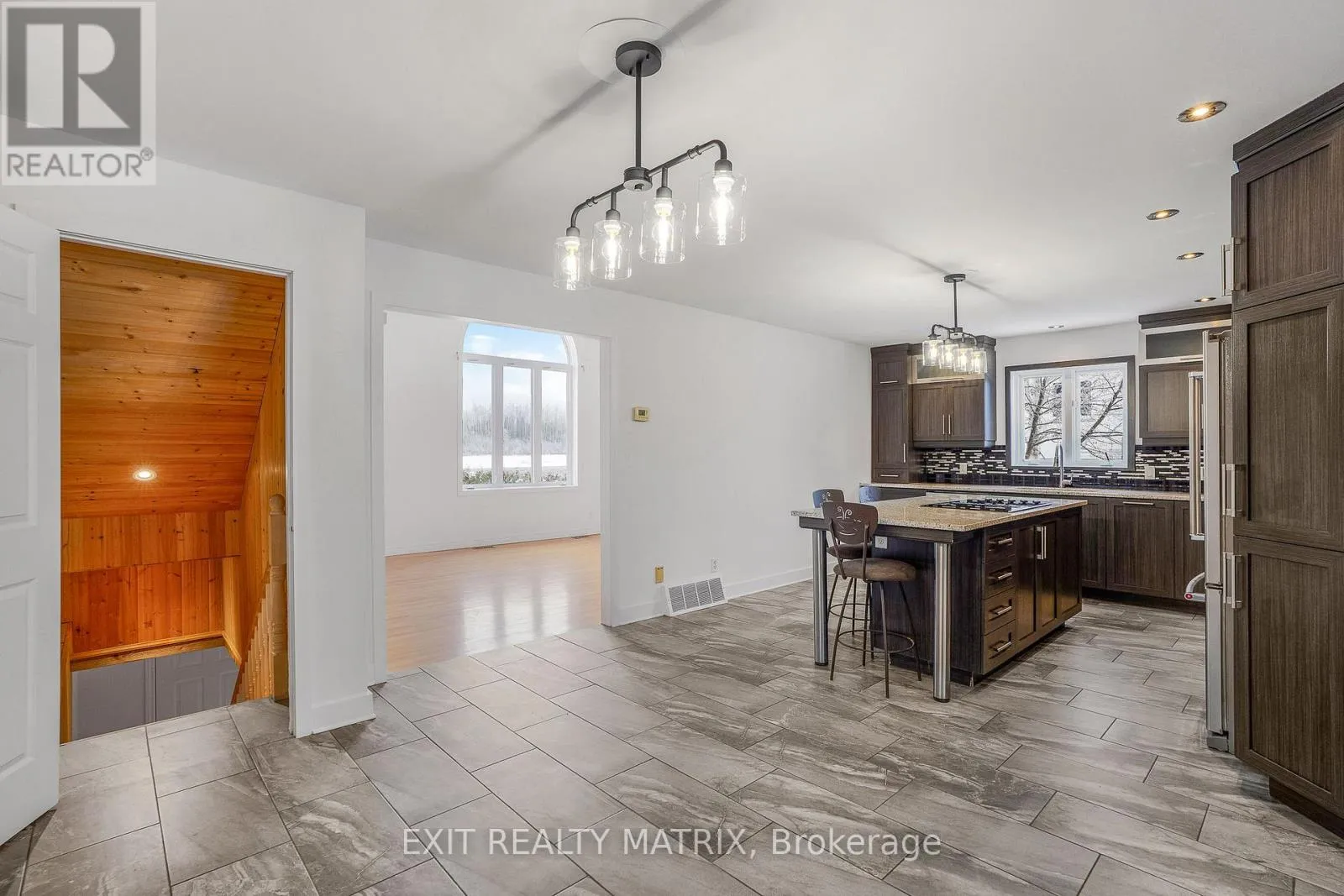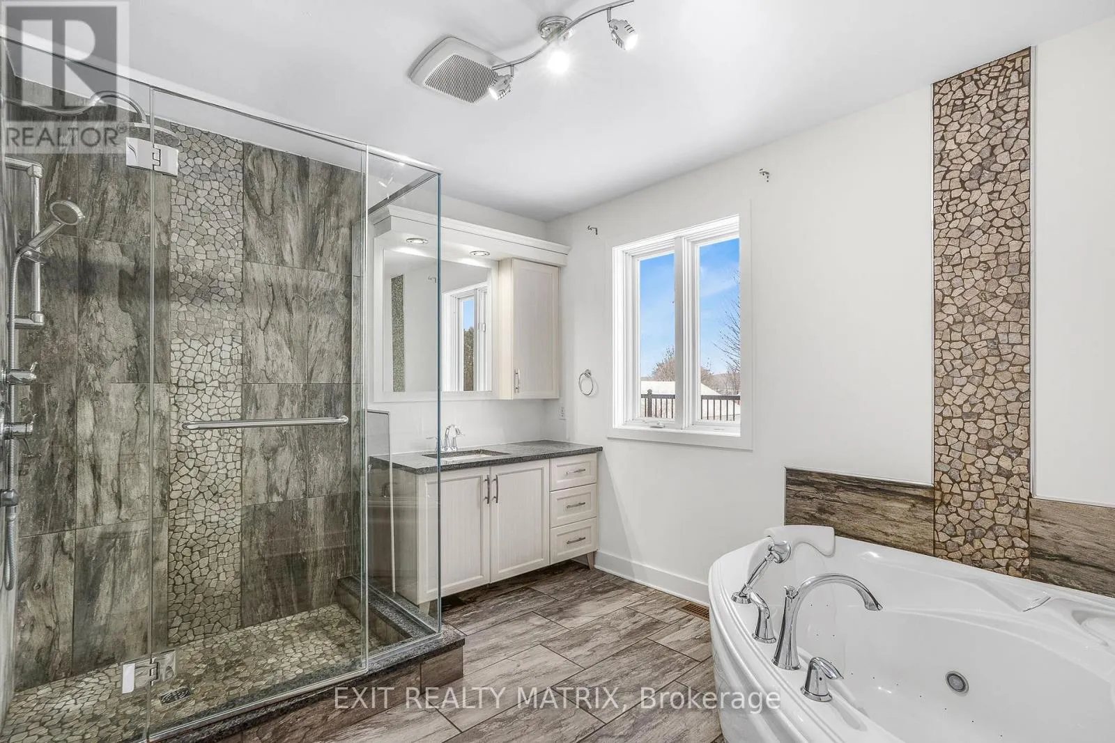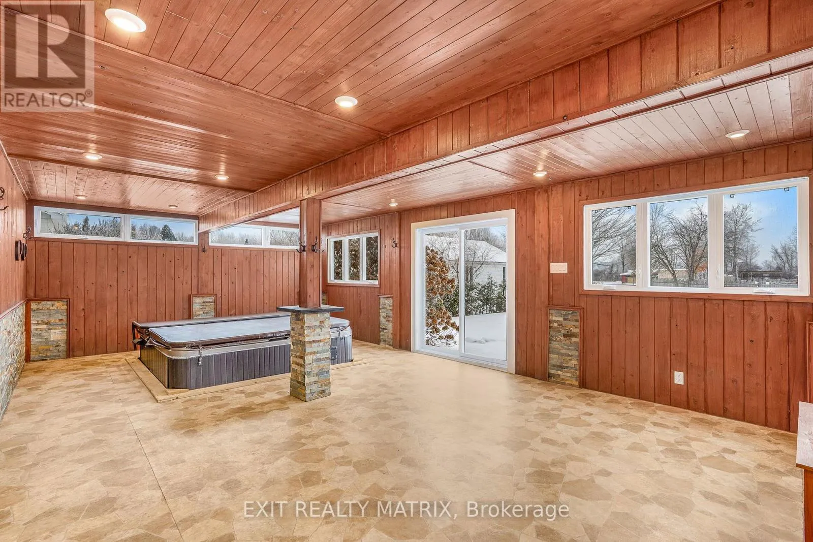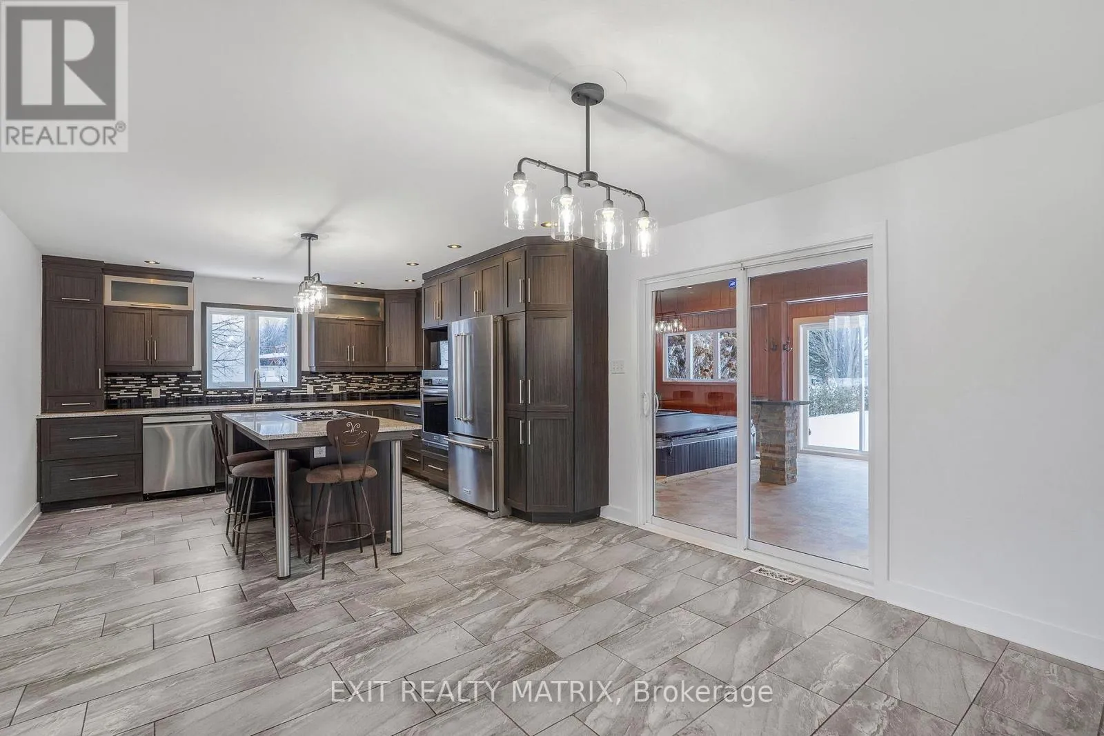 Cross Streets: County Rd 17. ** Directions: 1650 Gourley Rd, Hawkesbury. **** OPEN HOUSE SATURDAY APRIL 18 10AM-12PM. Escape to the country on quiet Gourley road in the township East Hawkesbury, just a short drive to Highway 417 with an easy connection to the Montréal area. This unique home offers a functional main level featuring a modern kitchen with included appliances, a large centre island, and an inviting family room with vaulted ceilings and a cozy wood fireplace. You'll also enjoy the large mudroom and laundry room. The upper level boasts a mezzanine-style family room with access to a large patio, three generous bedrooms including a primary suite with a huge walk-in closet with built-ins and its own fireplace. Impressive bathroom with a state of the art ceramic shower and soaker tub. The fully finished basement provides even more versatile living space. Enjoy the four-season sunroom with a sunken hot tub overlooking the large backyard, perfect for relaxing or entertaining. Car lovers and hobbyists will appreciate the incredible garage setup: four garages in total - one single, one double, plus another single with front and rear doors for easy drive-through access to the yard. The propane furnace, central a/c, two fireplaces and a heatpump will keep this home cozy all year round! Generlink generator connector installed. (id:27476)