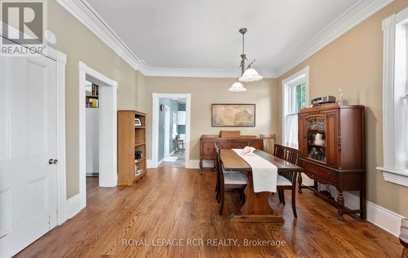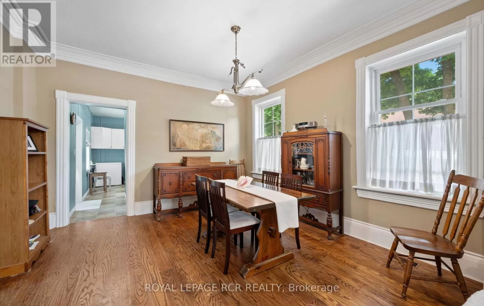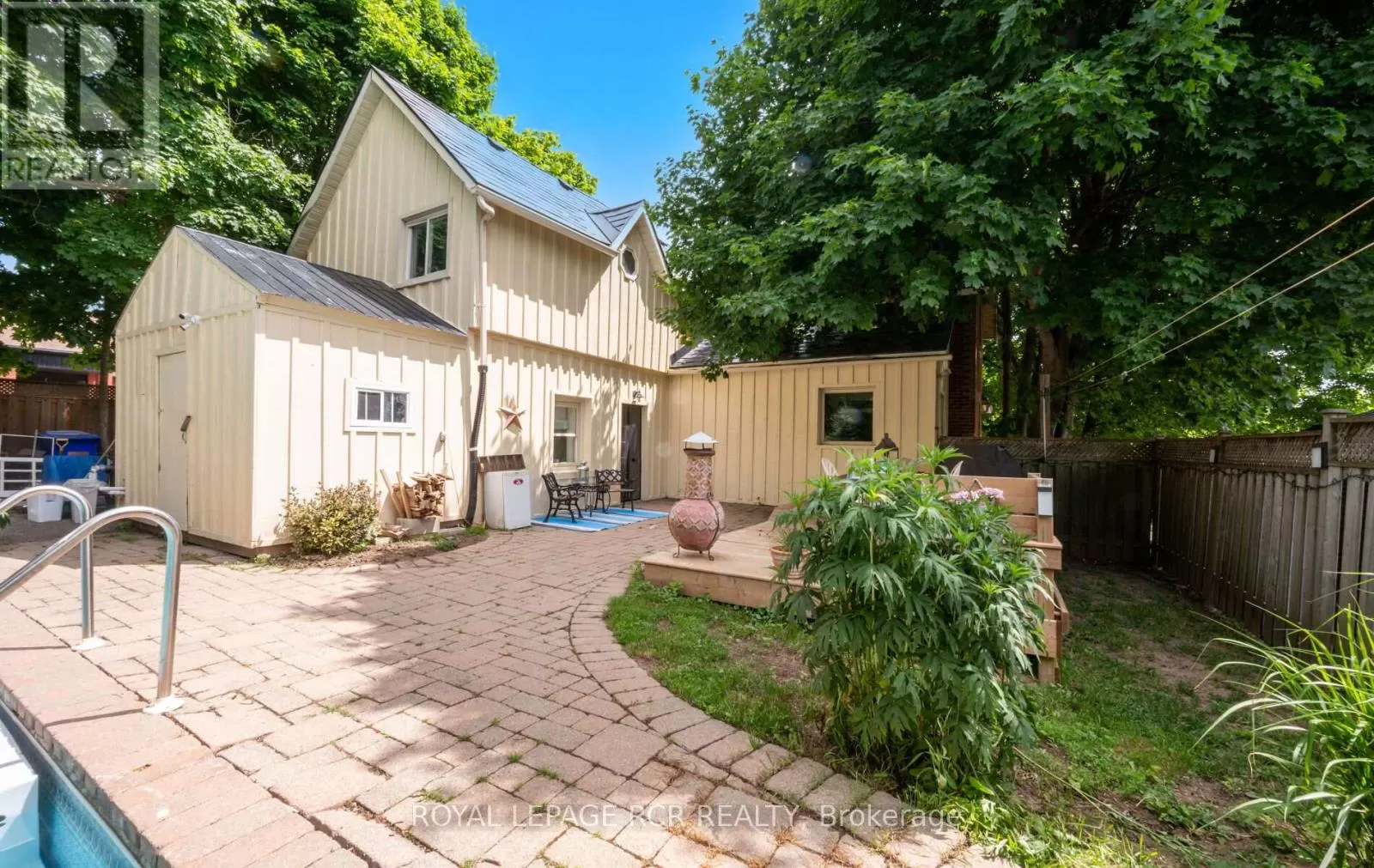 Cross Streets: Main Street/ Amaranth Street. ** Directions: County Rd 109 - Highway 25 (becomes Main Street within Grand Valley limits). Welcome to 20 Main Street North in Grand Valley and feel the warmth and charm of this century home. A quaint enclosed front porch leads you to the main floor with classic hardwood floors, high ceilings, beautiful crown moulding & wide trim details. Updated galley kitchen features gas range and tile backsplash and a view of the pool & patio area. Enjoy hosting family and friends in the spacious dining room, adjacent to the living room with closed antique fireplace (not functional). The main floor laundry/mudroom offers a great rear entry from the driveway and walkout to the rear patio. The second floor offers a huge primary bedroom with lots of room for your king-sized bed, and has large PAX wardrobe and storage. The spacious main bathroom allows for downtime to soak in the antique tub and includes beautiful freestanding linen cabinet. Enjoy neutral decor and carpet-free throughout. Step outside to the private rear patio and heated, inground pool area, completely fenced for safety and pets. Whether you are a sun worshiper or needing shade - you are covered here with beautiful mature trees. The 20' x 40' inground pool has a deep end, gas pool heater about 4 years old & pool shed. Plus you can utilize the large garden shed and secondary driveshed for storage or hobbies. Quality metal roofing, upgraded attic insulation 2011, spacious parking/driveway with room for trailer or RV and wide gate to access yard. (id:27476)