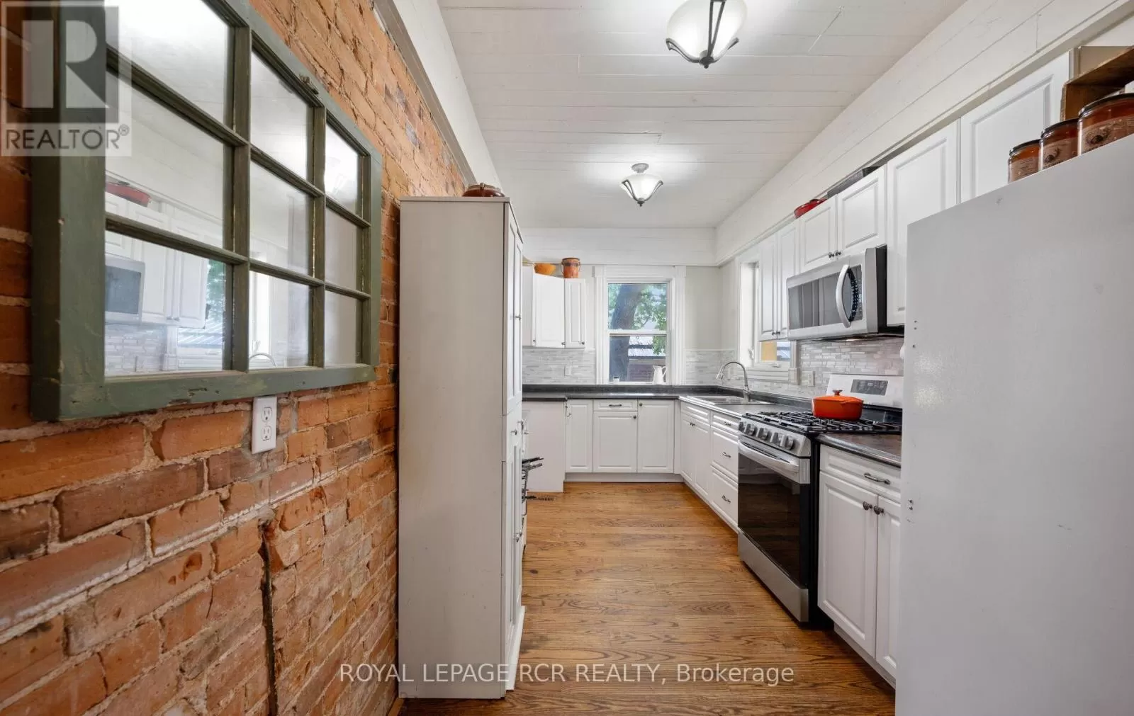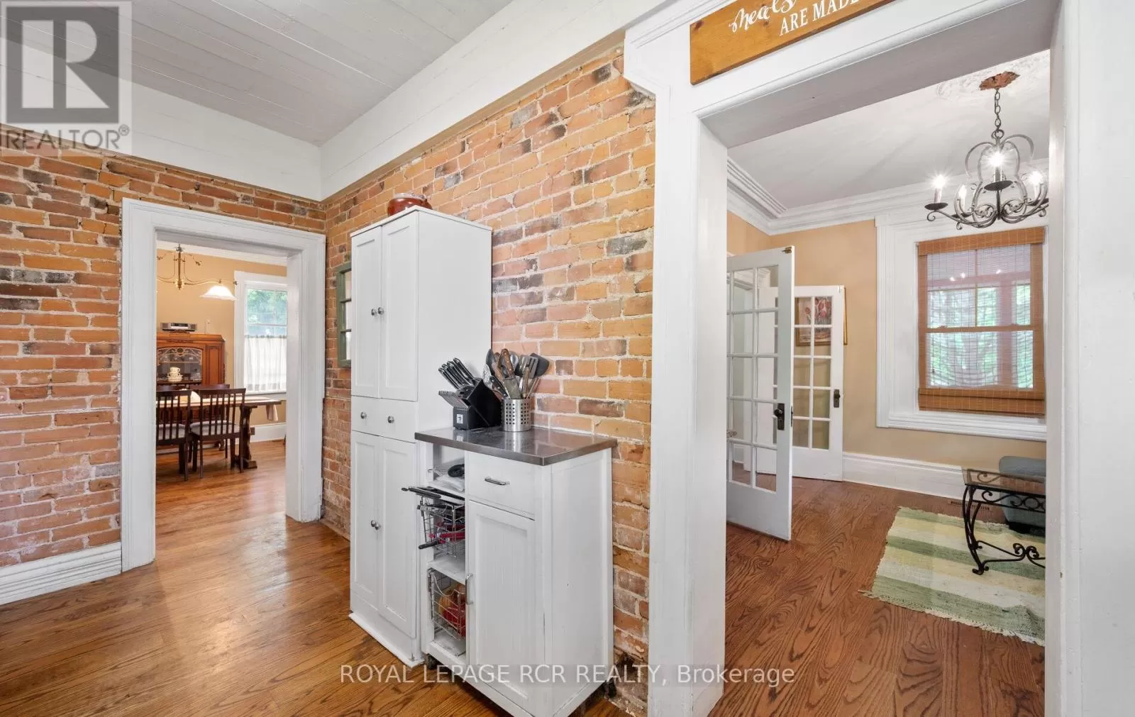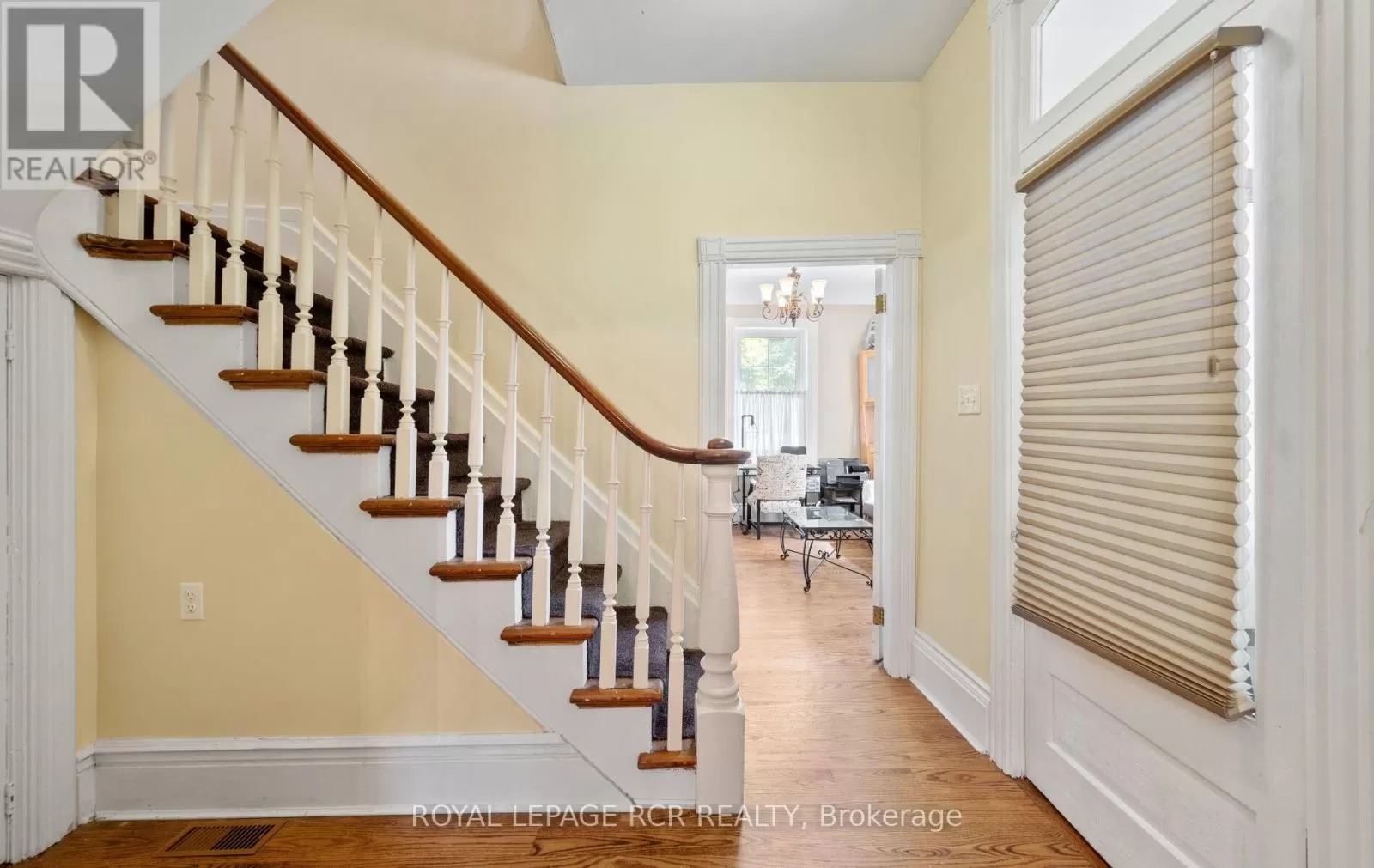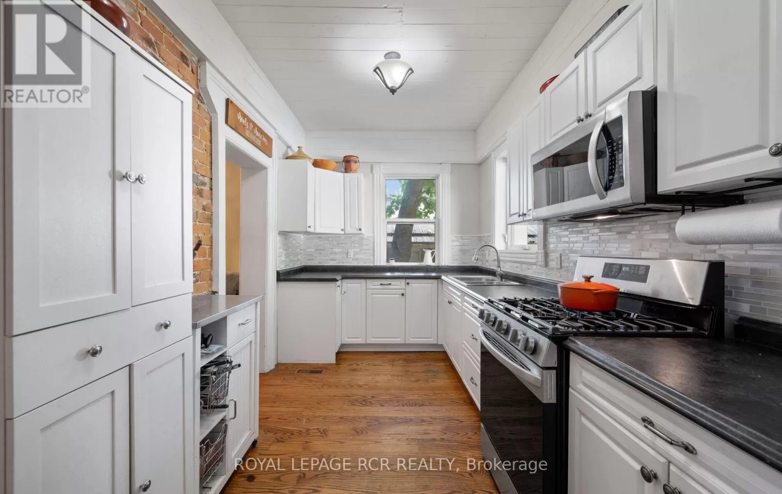 Cross Streets: Main Street/ Amaranth Street. ** Directions: County Rd 109 - Highway 25 (becomes Main Street within Grand Valley limits). Welcome to 20 Main Street North in Grand Valley and feel the warmth and charm of this century home. A quaint enclosed front porch leads you to the main floor with classic hardwood floors, high ceilings, beautiful crown moulding & wide trim details. Updated galley kitchen features gas range and tile backsplash and a view of the pool & patio area. Enjoy hosting family and friends in the spacious dining room, adjacent to the living room with closed antique fireplace (not functional). The main floor laundry/mudroom offers a great rear entry from the driveway and walkout to the rear patio. The second floor offers a huge primary bedroom with lots of room for your king-sized bed, and has large PAX wardrobe and storage. The spacious main bathroom allows for downtime to soak in the antique tub and includes beautiful freestanding linen cabinet. Enjoy neutral decor and carpet-free throughout. Step outside to the private rear patio and heated, inground pool area, completely fenced for safety and pets. Whether you are a sun worshiper or needing shade - you are covered here with beautiful mature trees. The 20' x 40' inground pool has a deep end, gas pool heater about 4 years old & pool shed. Plus you can utilize the large garden shed and secondary driveshed for storage or hobbies. Quality metal roofing, upgraded attic insulation 2011, spacious parking/driveway with room for trailer or RV and wide gate to access yard. (id:27476)